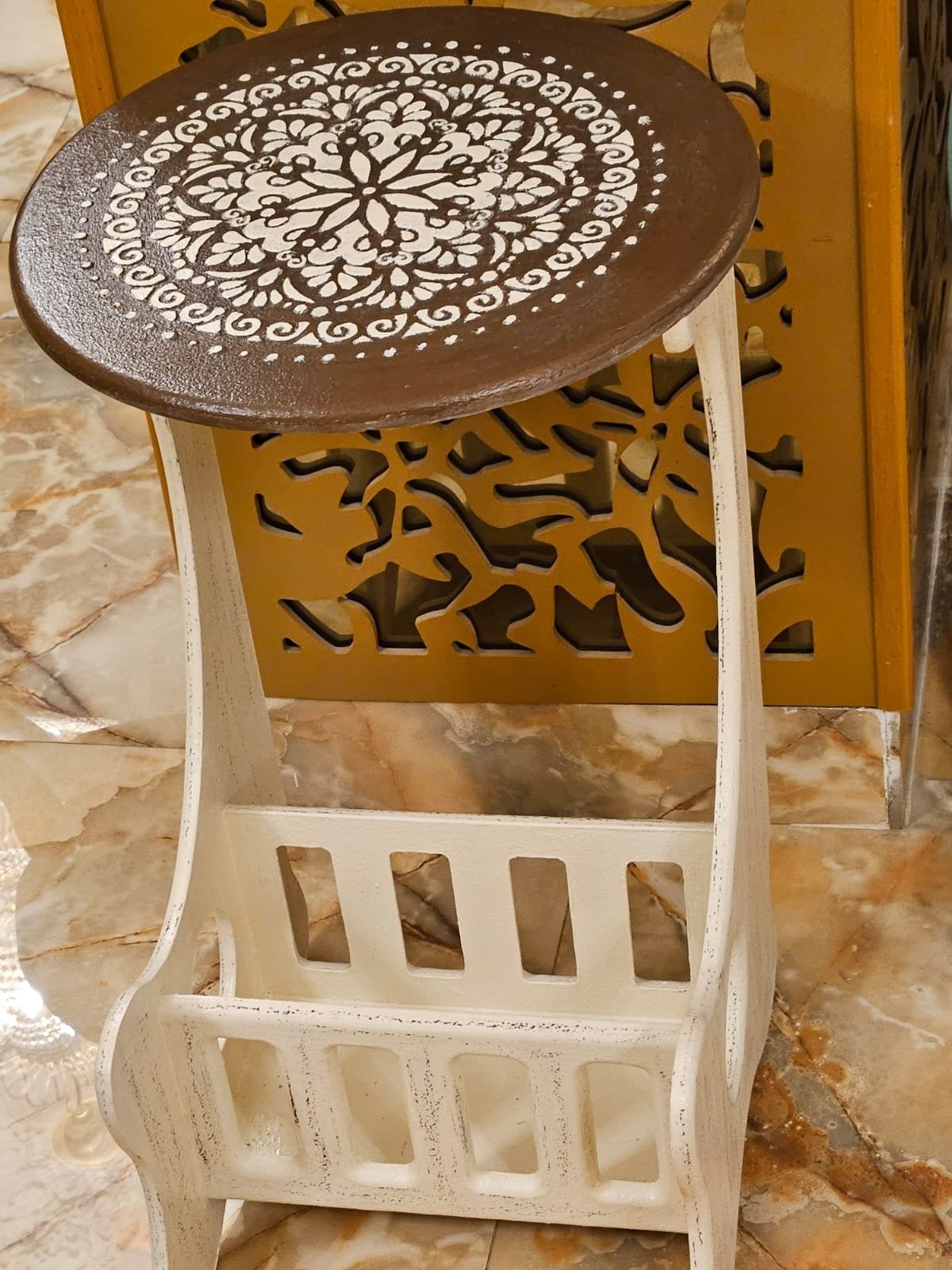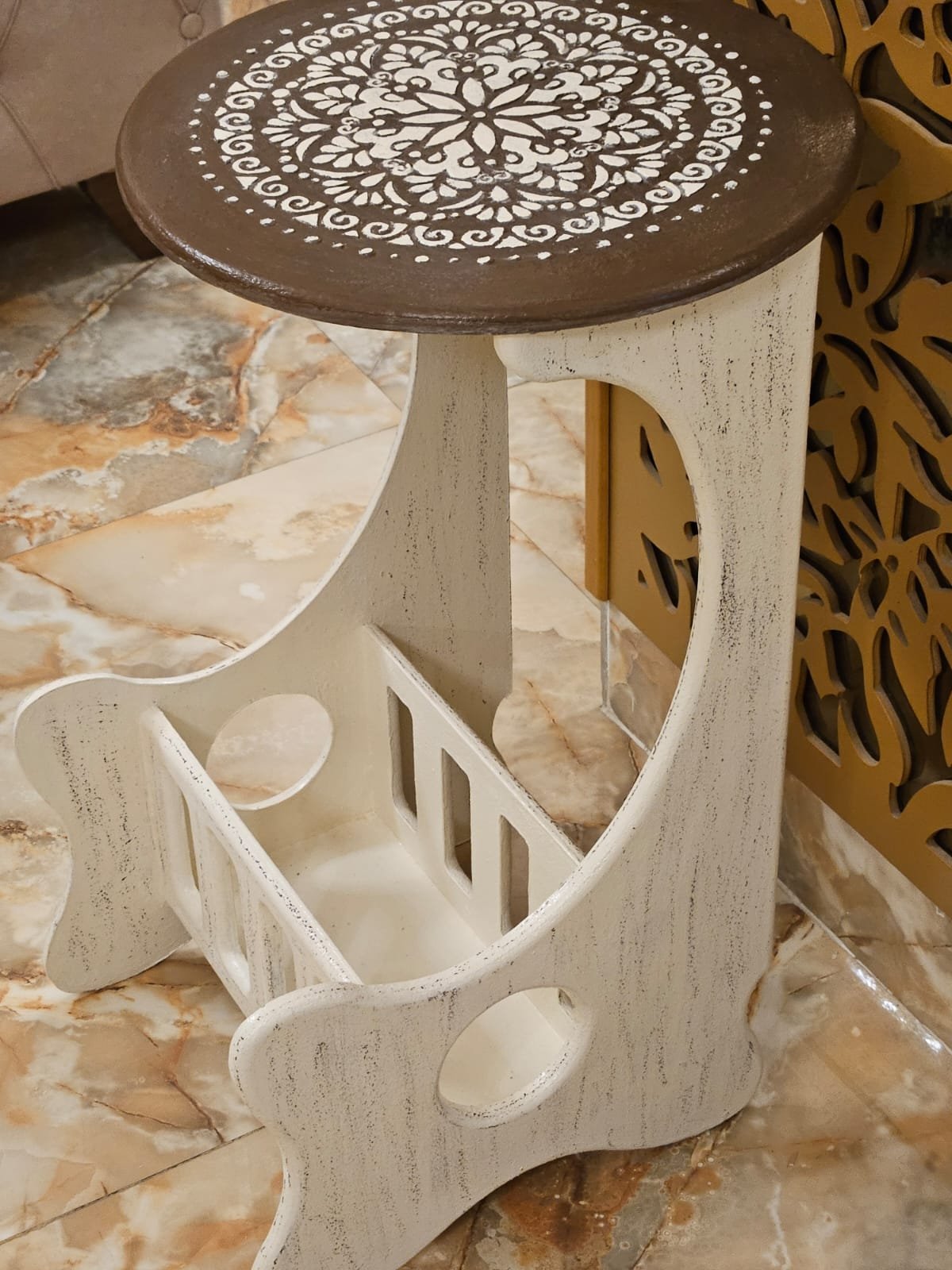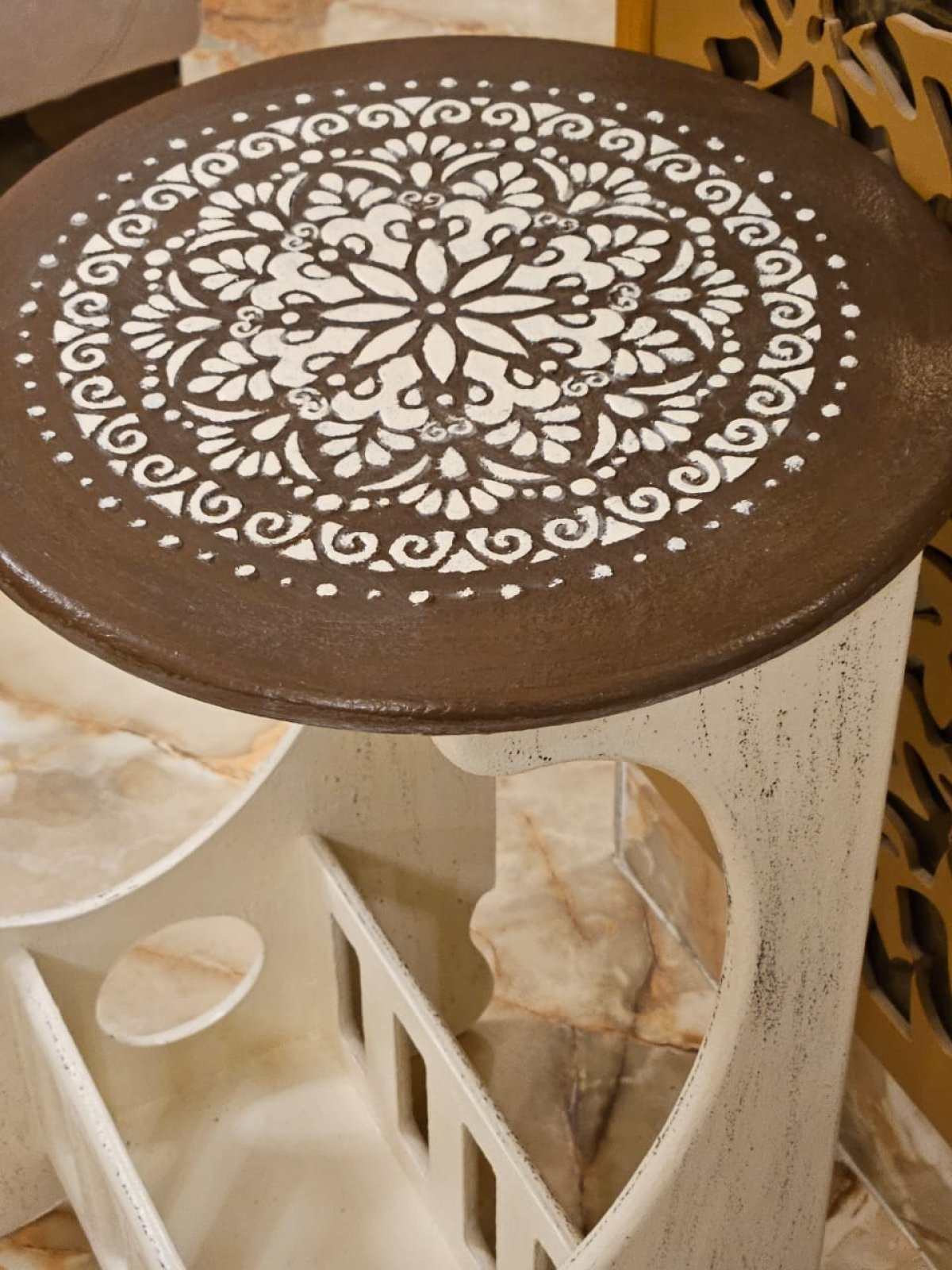 ترابيزه خشب ام دى اف بدرج مفتوح بشغل بارز اوف وايت والقرصه بنى عرض ٣٥ وارتفاع ٦٠ وعرض الدرج ١٥