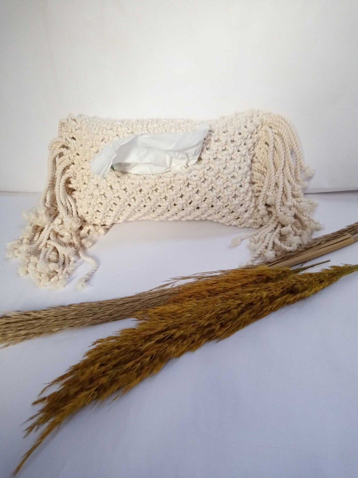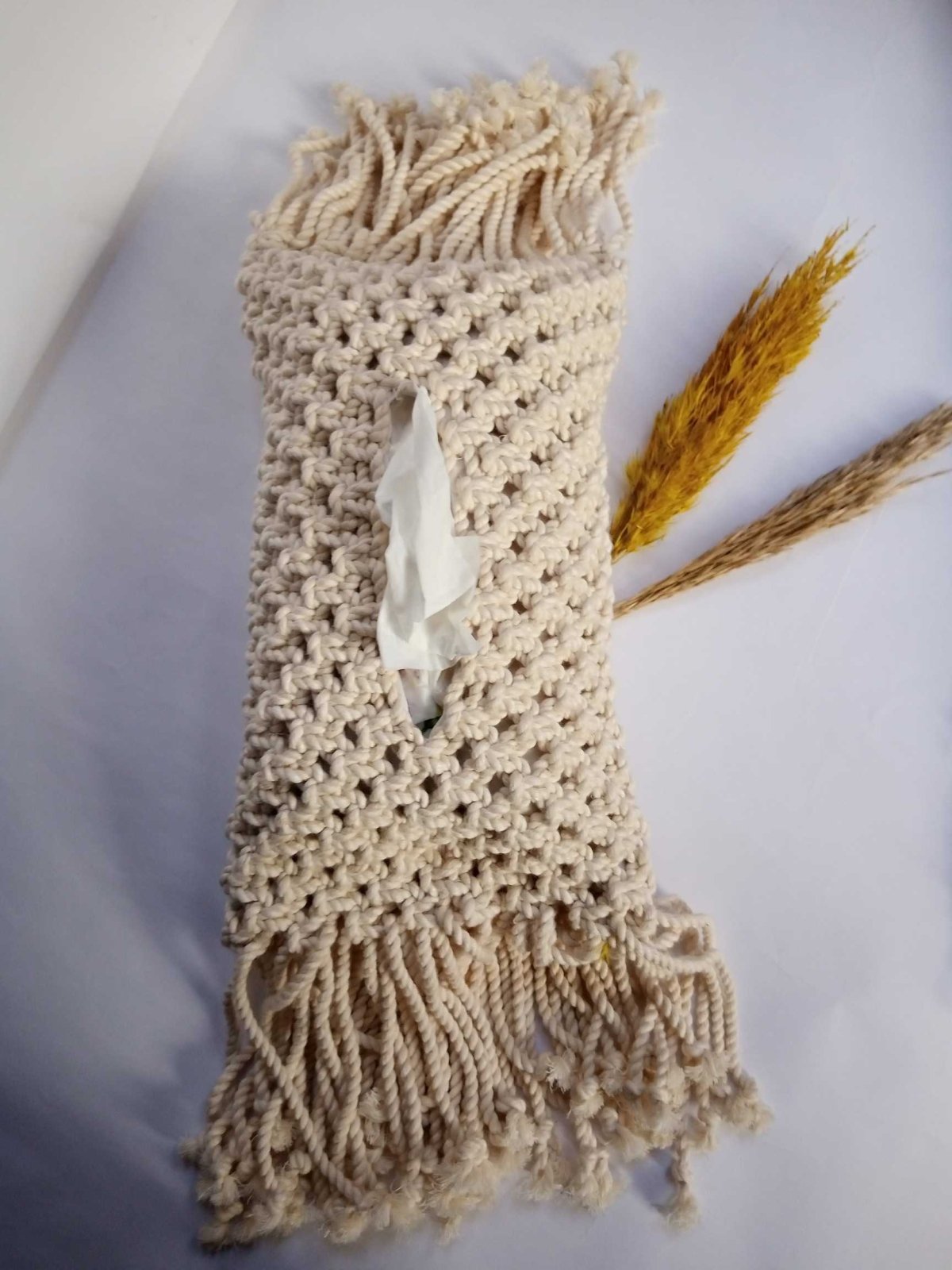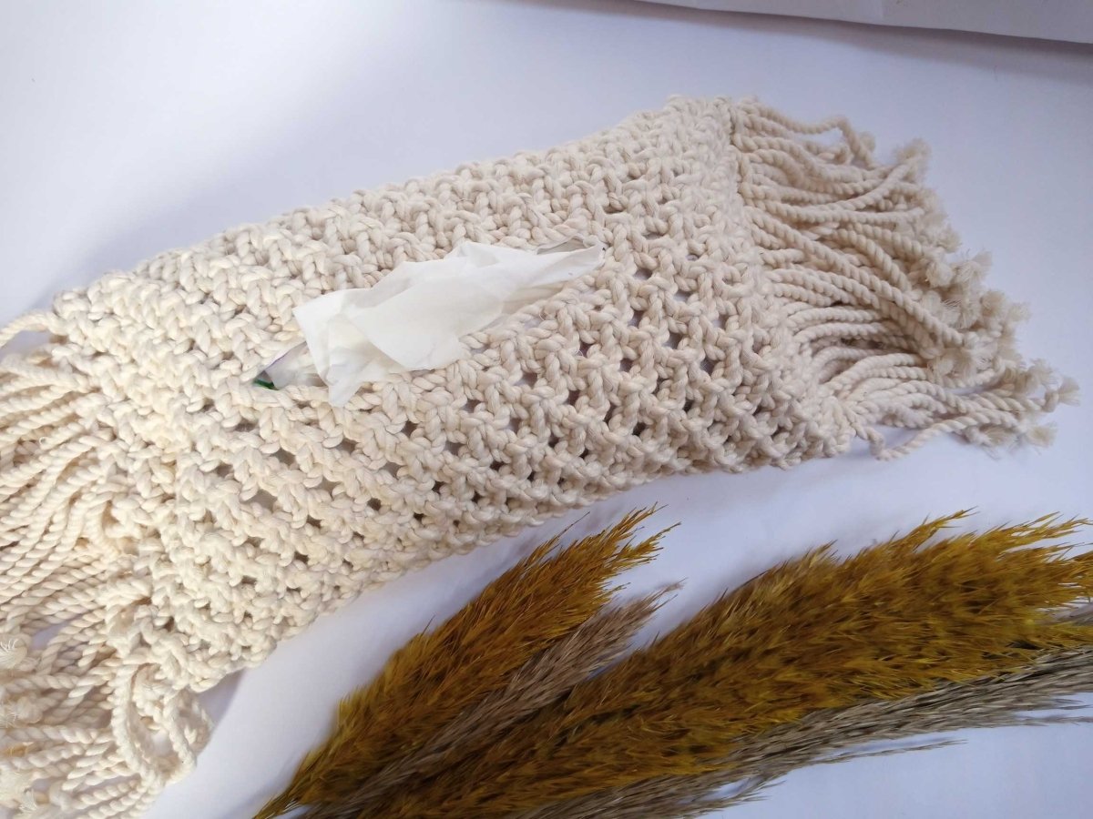 حافظة للمناديل مصنوعه بخيوط قطن عرض 15سم في طول 25سم