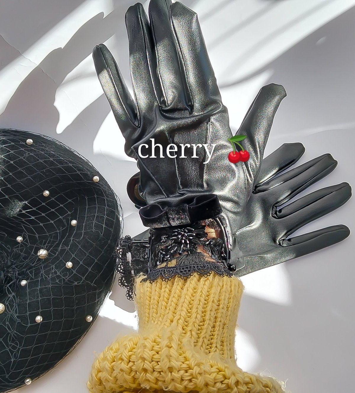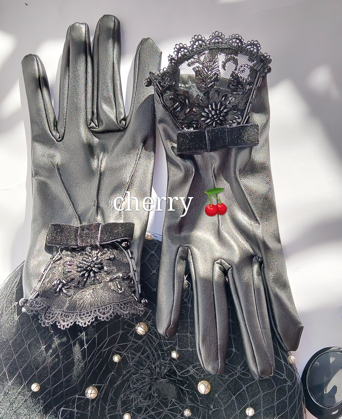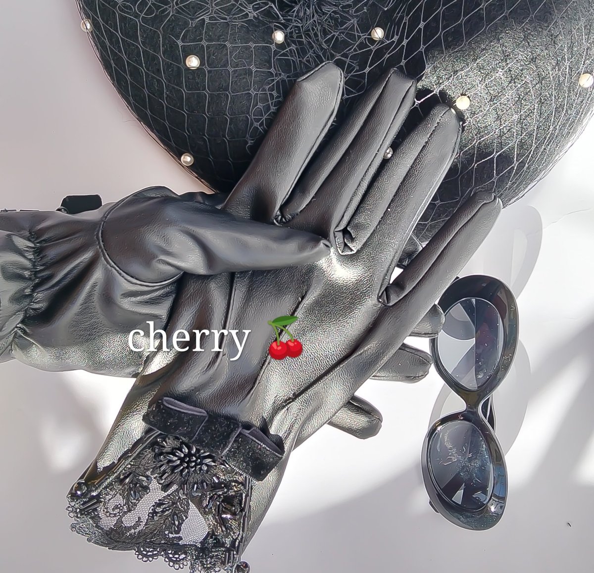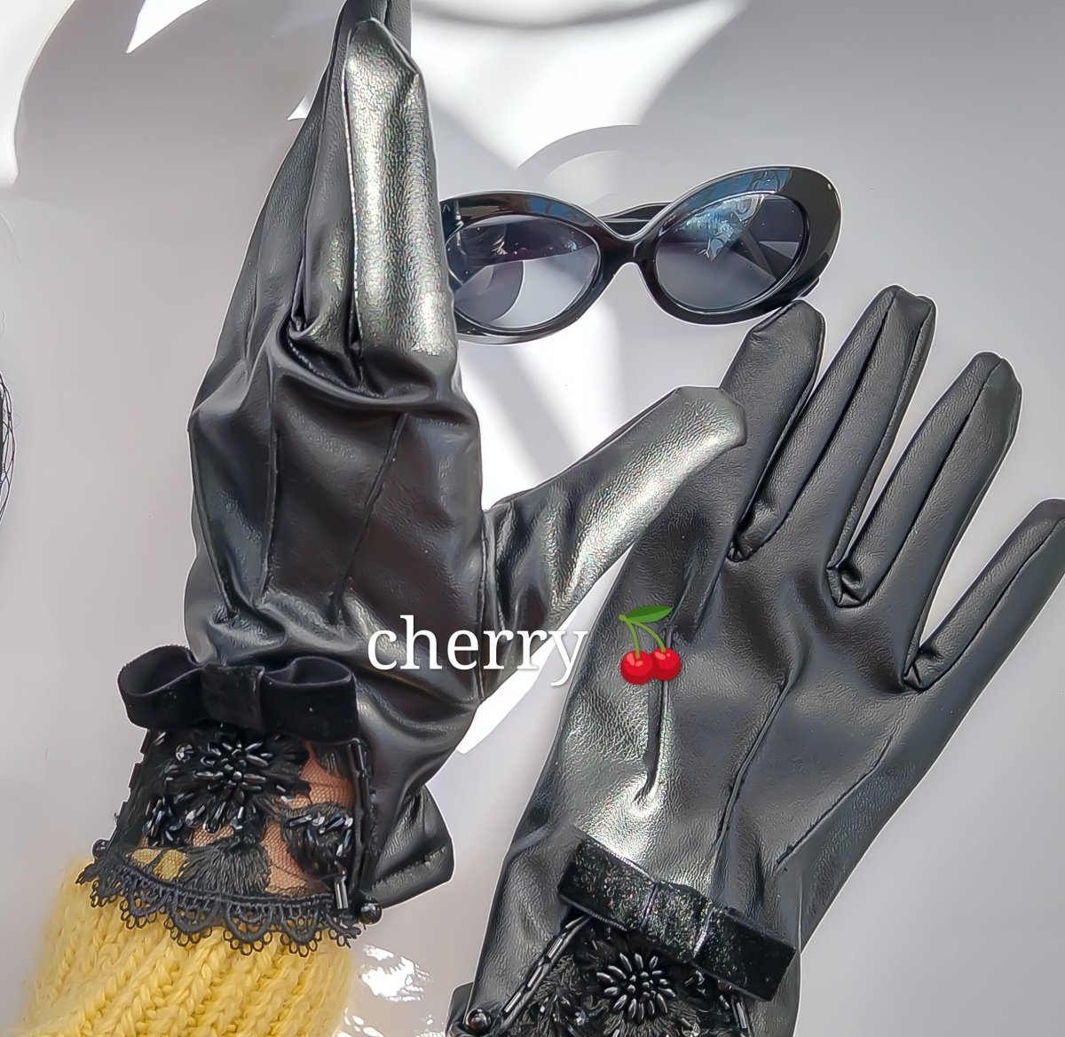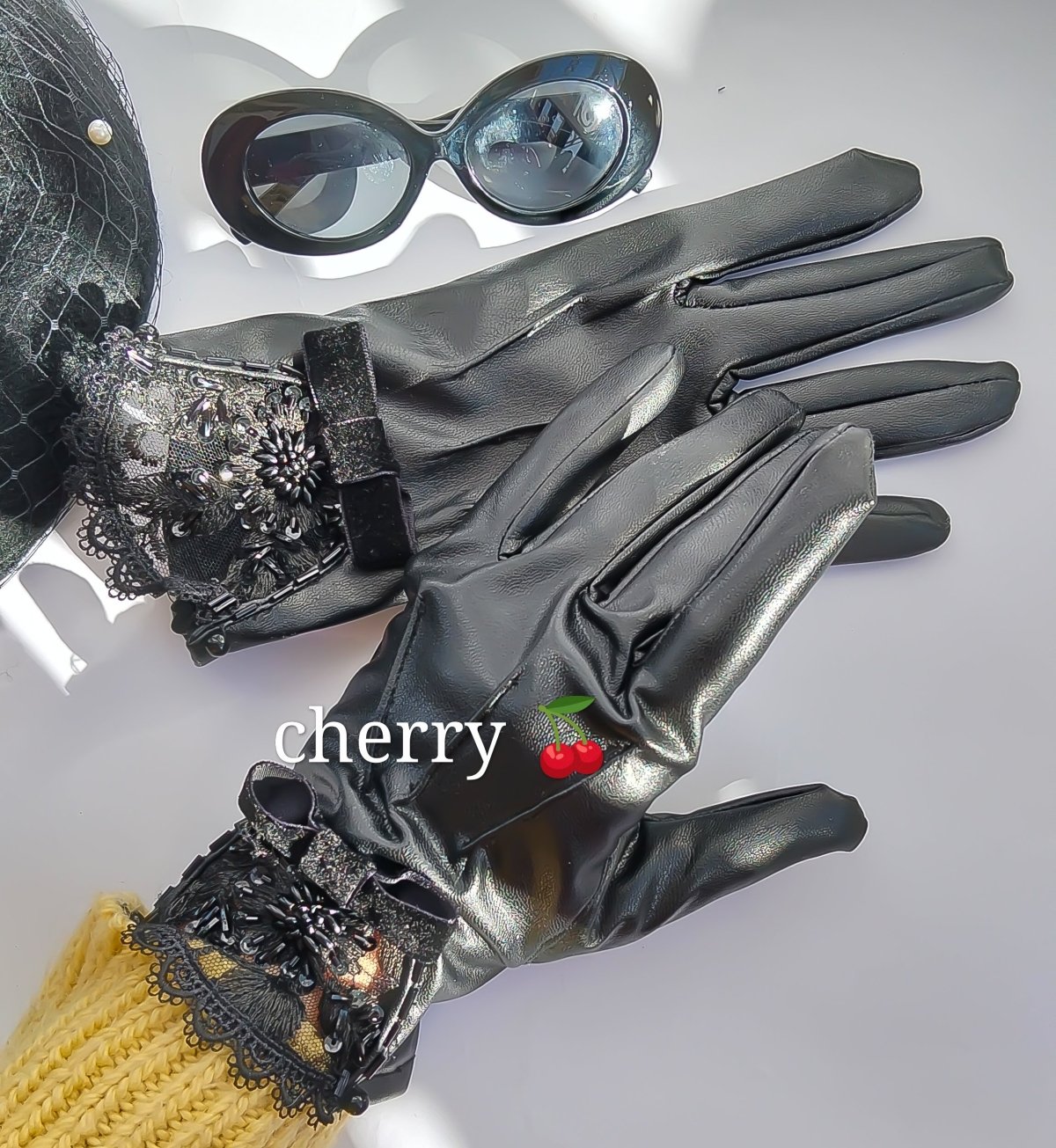 قفازات من الجلد المبطن قطيفه من الداخل مزين بالجوبير لشتاء دافئ وراقى