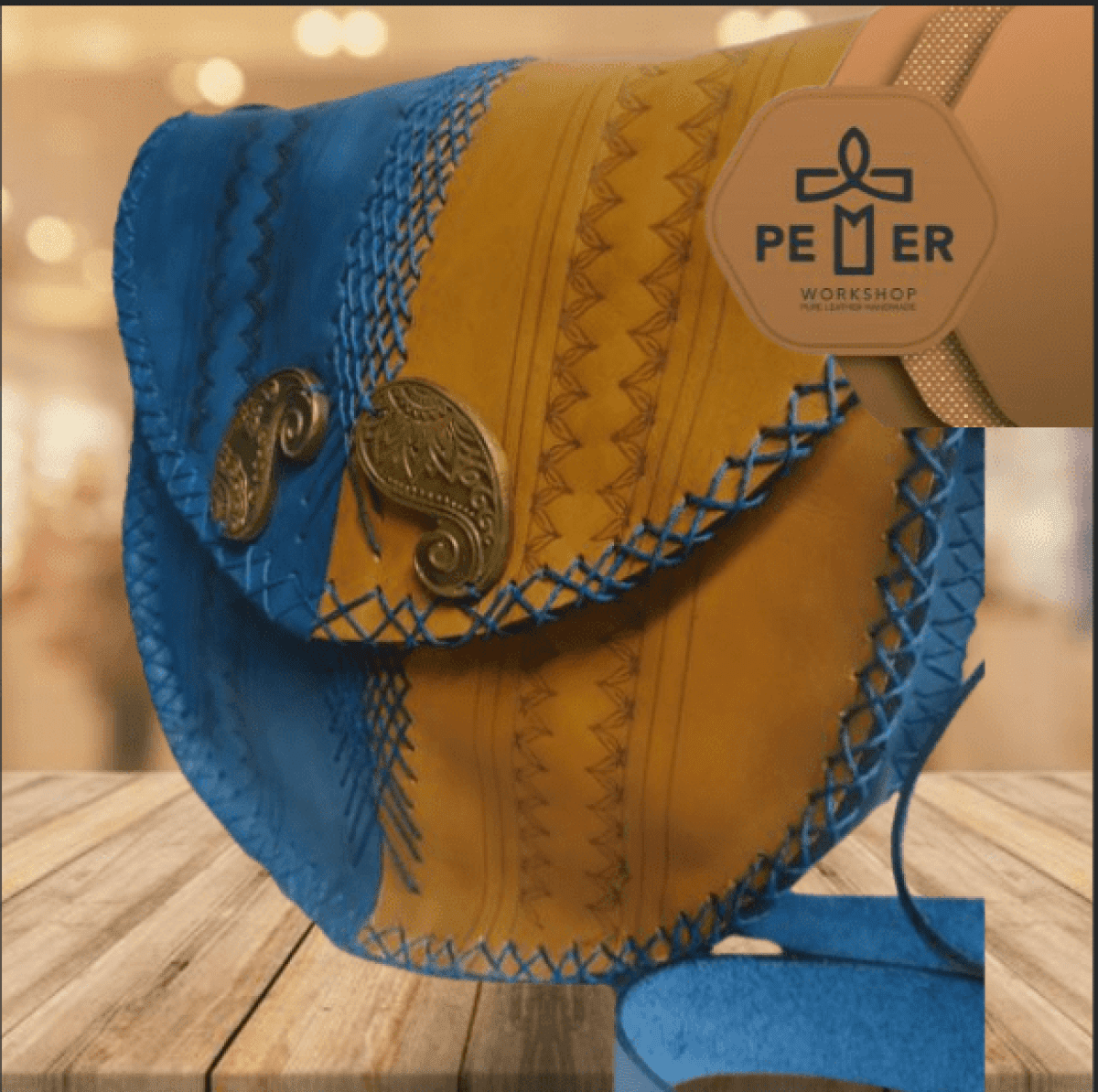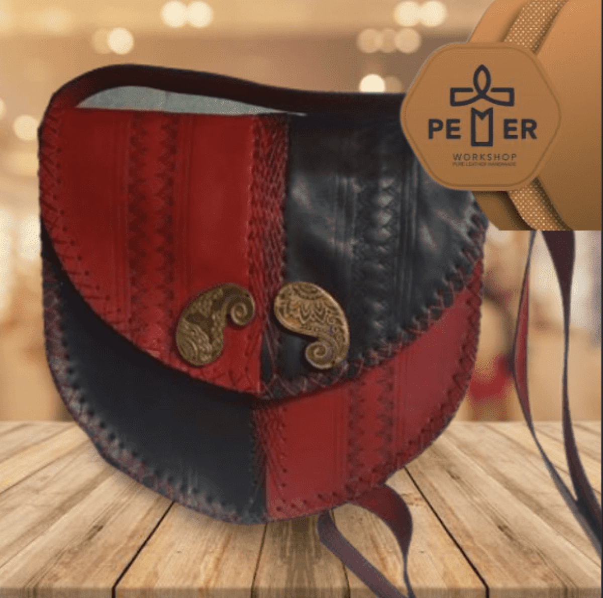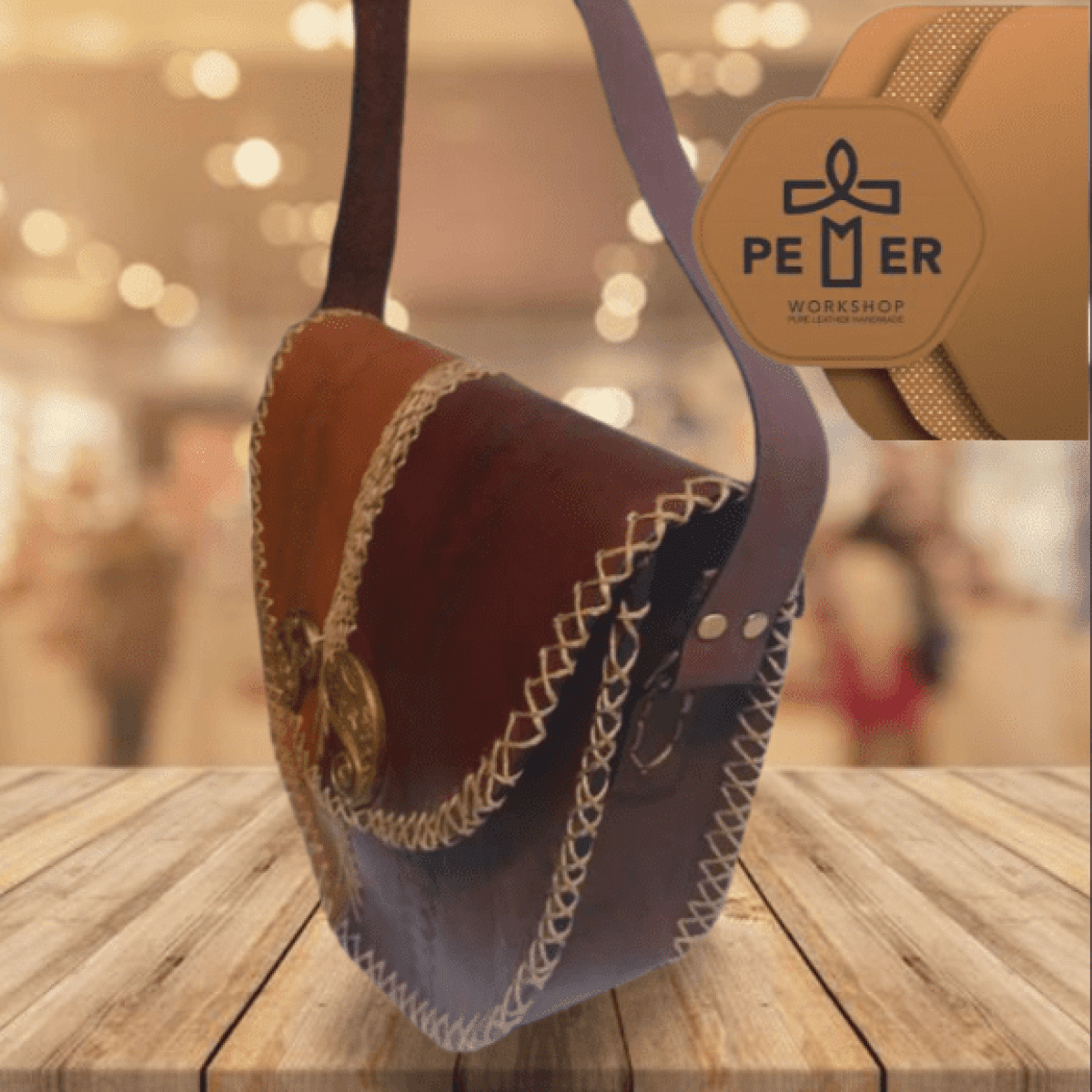شنطه 2 لون كروس صغير ابعاد الشنطه 28.5*28.5*8 سم طول الذراع 170 سم حرق على الجلد على شكل خطوط وروقه شجر صغير فى المتصف بين الخطوط مطعمه بقطعتين نحاس مختلفين الشكل الخياط على شكل شبكه متداخله مع بعضها البعض