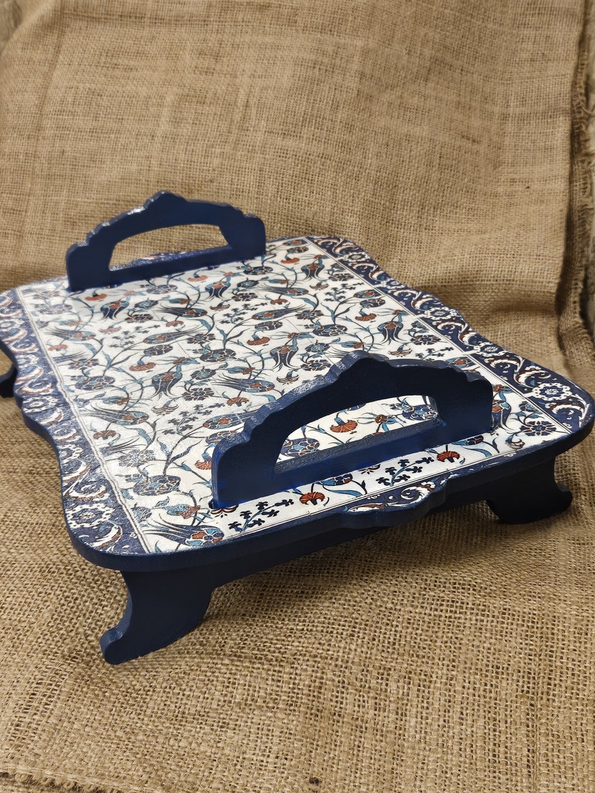 صنيه خشب هاند ميد استيل مغربى ٣٨ سم ×٣٠ سم وارتفاع ٩ سم ديكوباج