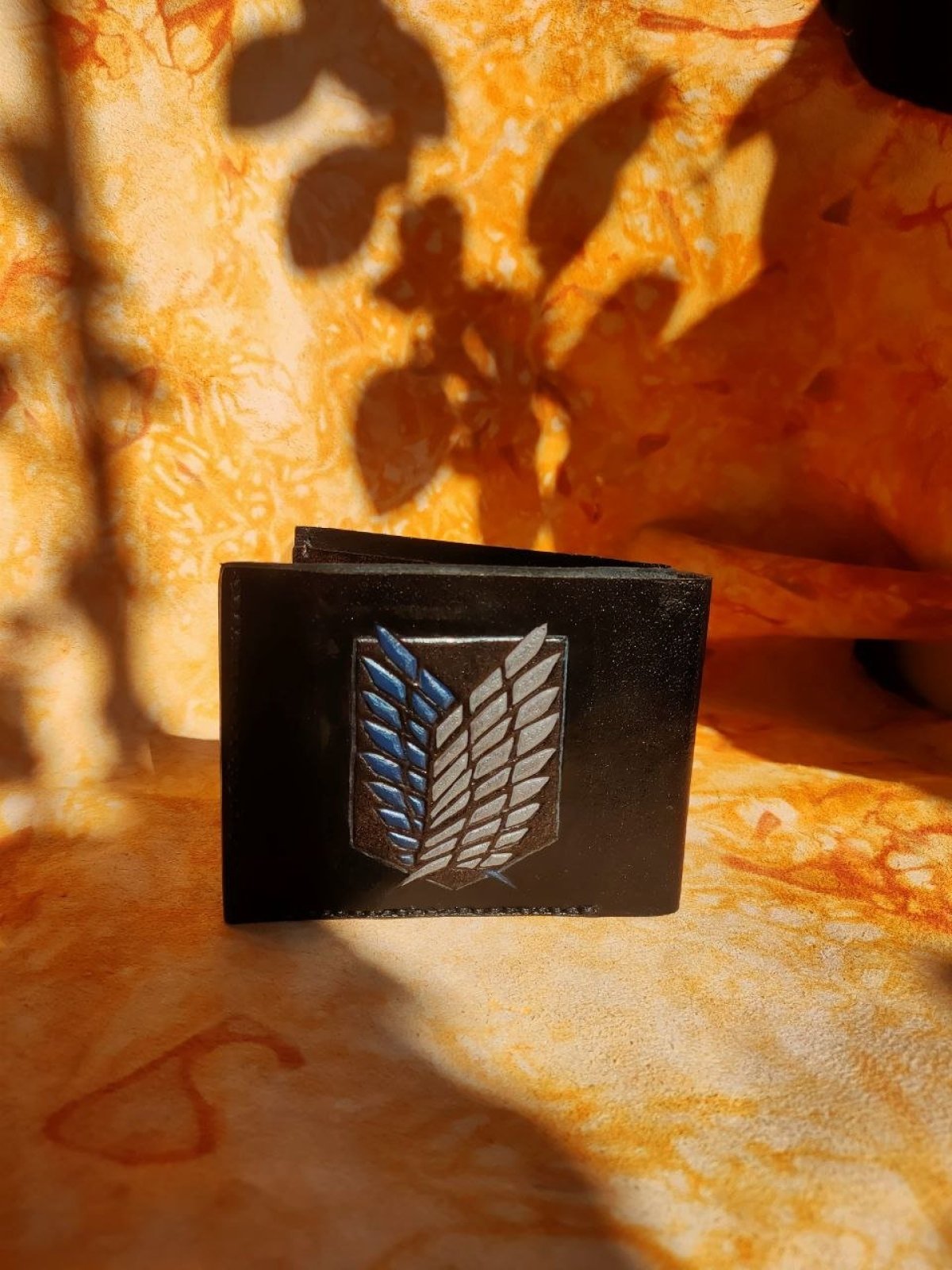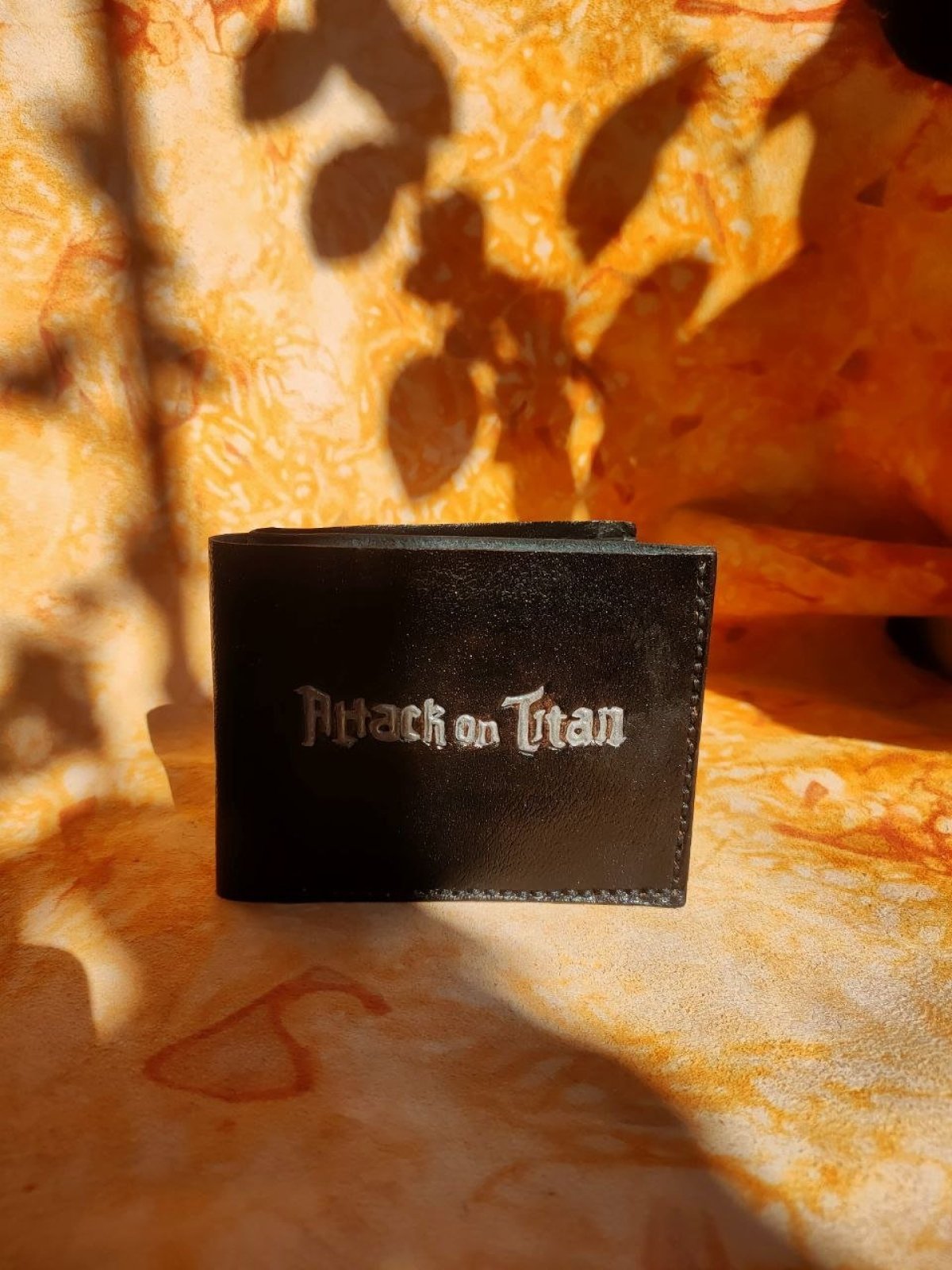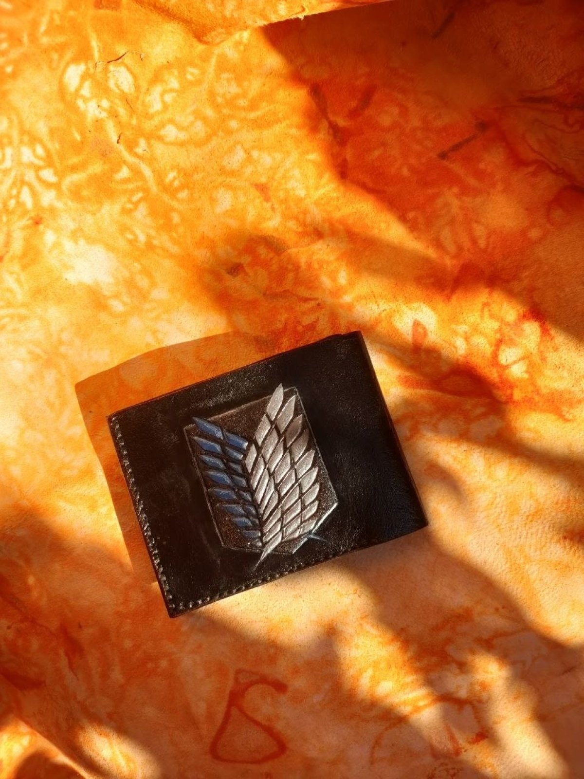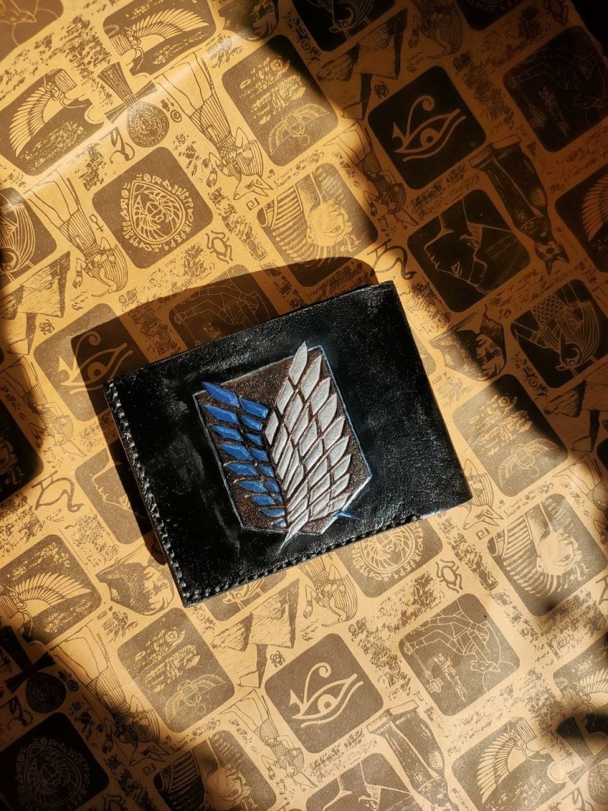 محفظة جلدية طبيعية مستوحاة من هجوم العمالقة مصنوعة يدويًا بالكامل تحتوي على 8 فتحات للبطاقات + جيب كبير للنقود