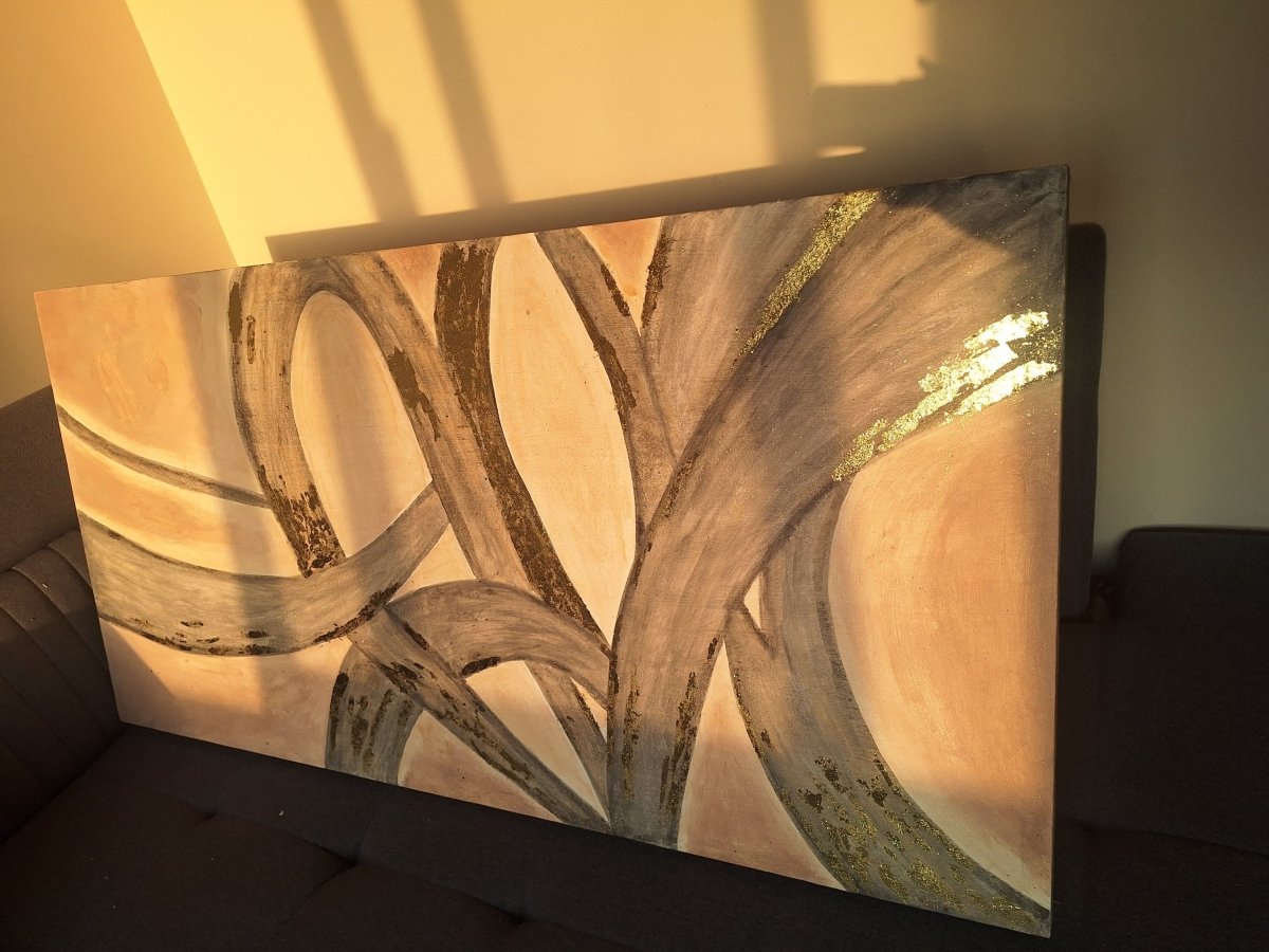 تابلوه هاند ميد خامه: الوان اكريلك مع ورق الذهب الابعاد: ١٢٠ * ٦٠ سم