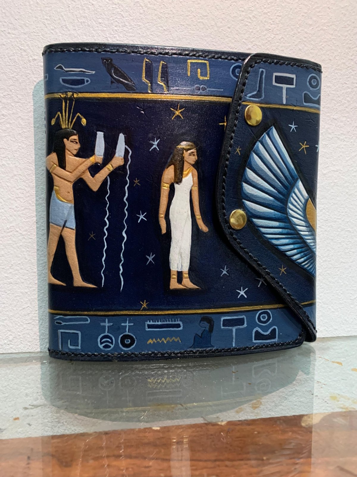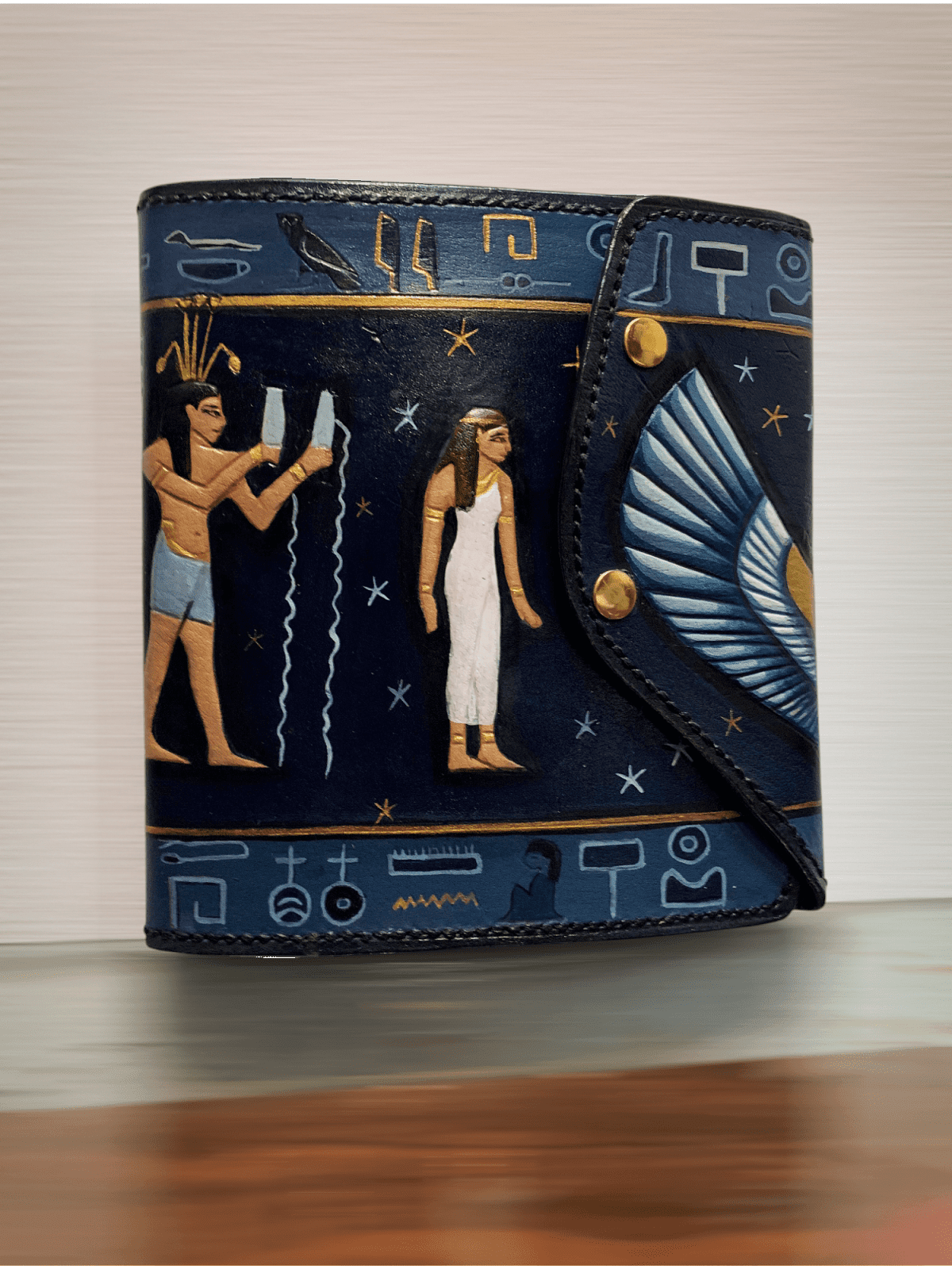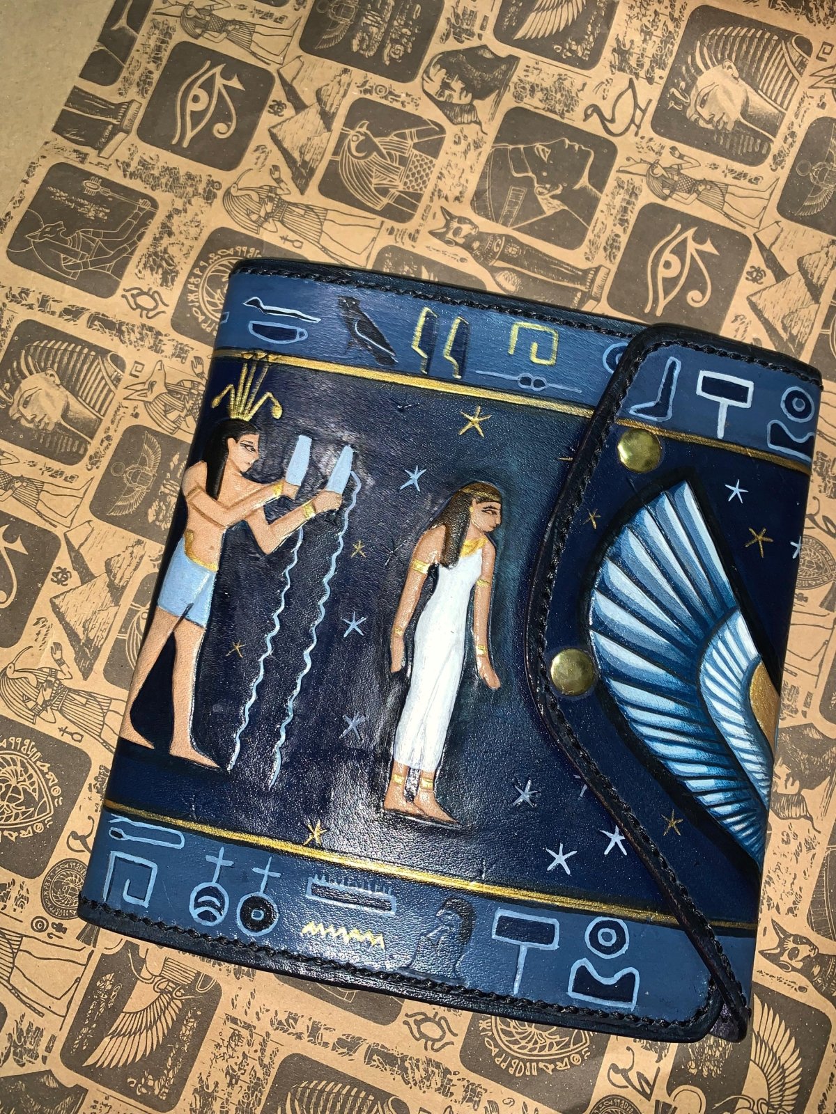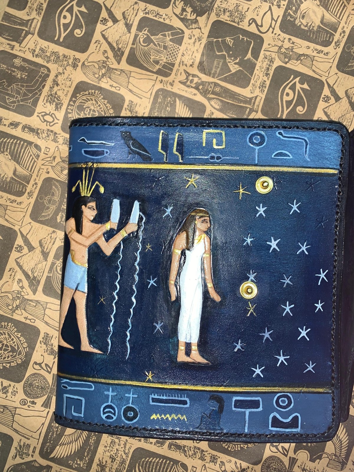 مدونه تقدر تحتفظ بصورك وتكتب تواريخك و شعورك و تقدر ترسم فيها كمان اللي بيعبر عنك عشانها ورق تقيل ورق كانسون ابيض تقيل تقدر تغير لونه للاسود او للكرافت مقاس 20سم المدونه جلد طبيعي تفضل معاك لسنين التصميم مصري قديم من اجزاء من معبد دندره كل جزء فيها هاند ميد💖