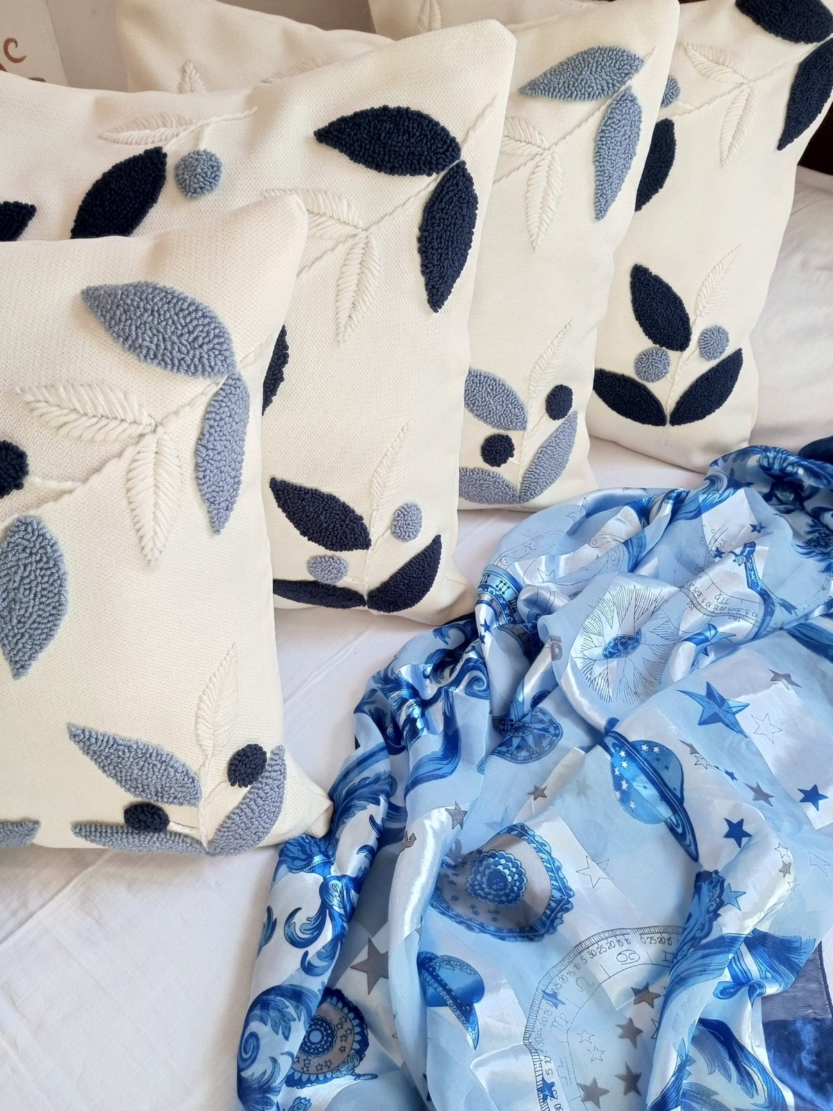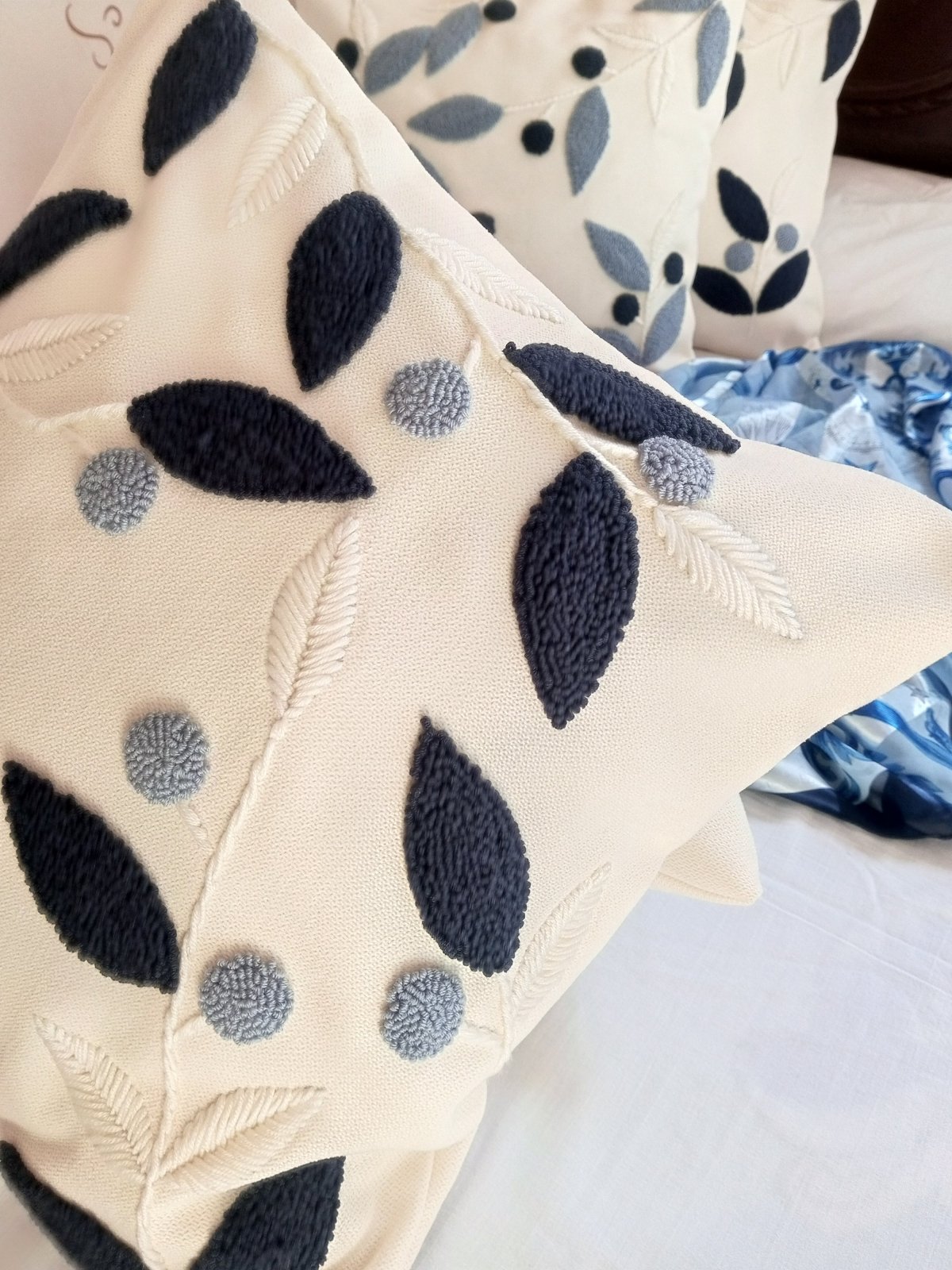 كوشن بالبانش نيدل بقماش كتان دونا وخيوط قطن مقاس 45*45متاح تغيير الالوان والمقاسات