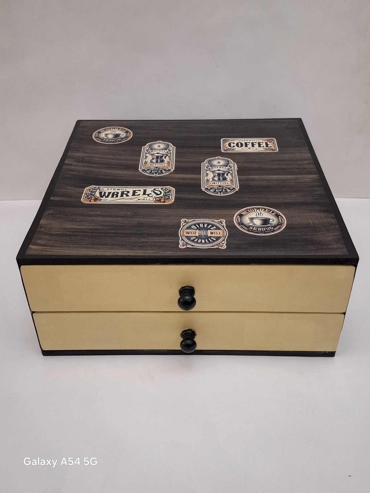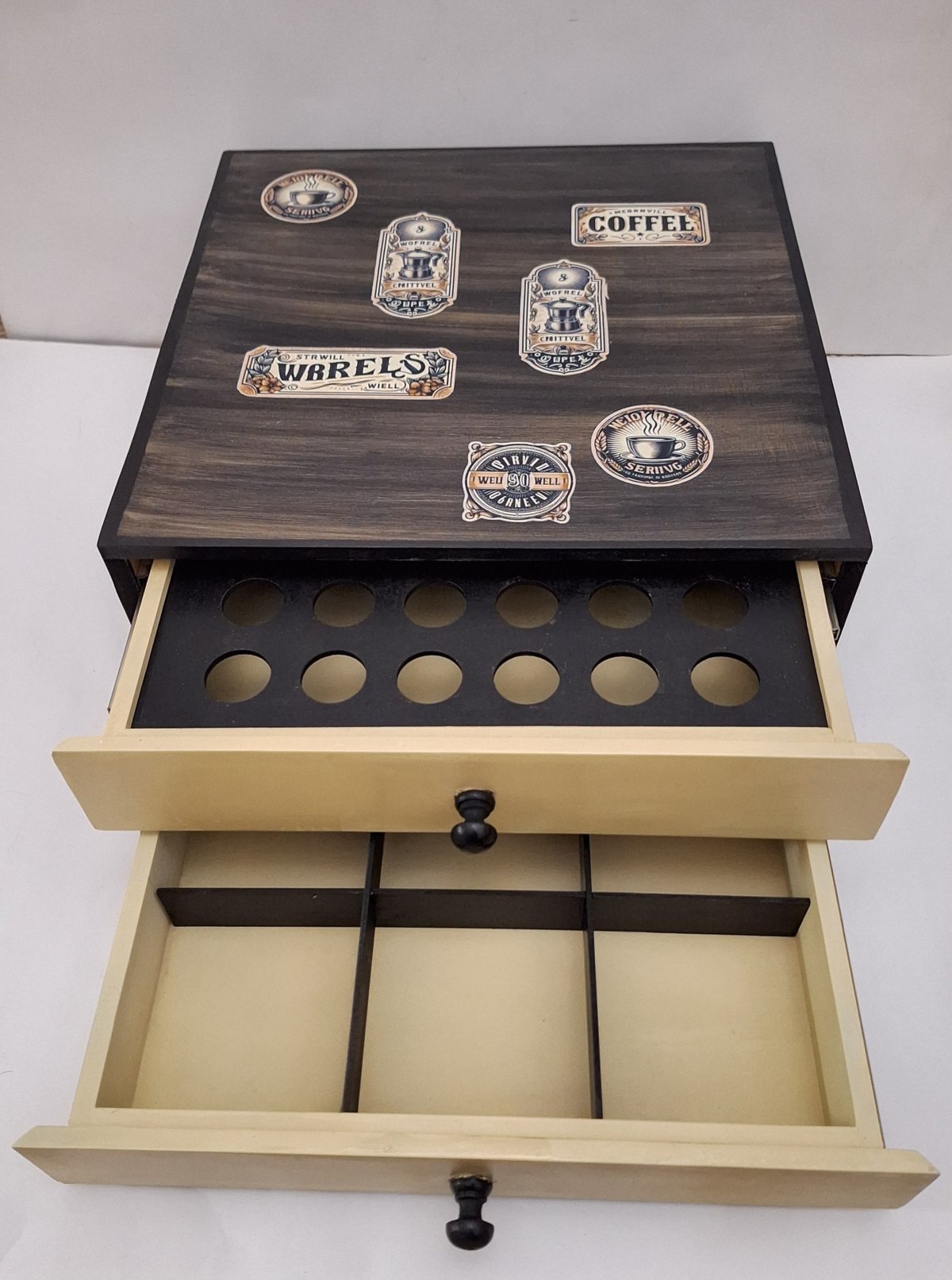 مينى كوفي كورنر ٢ درج الأول لكبسولات الاسبريسو الثانى لاكياس الشاى والنسكافيه التقسيمات متحركة يمكن الاستغناء عنها باللون البيج والأسود مقاس ٤٠ × ٤٠ ارتفاع ١٧ سم