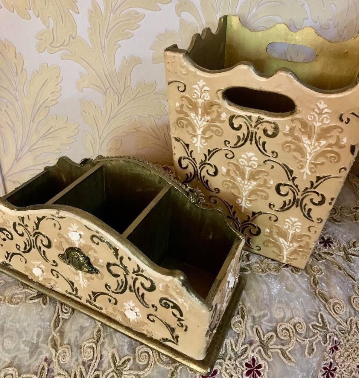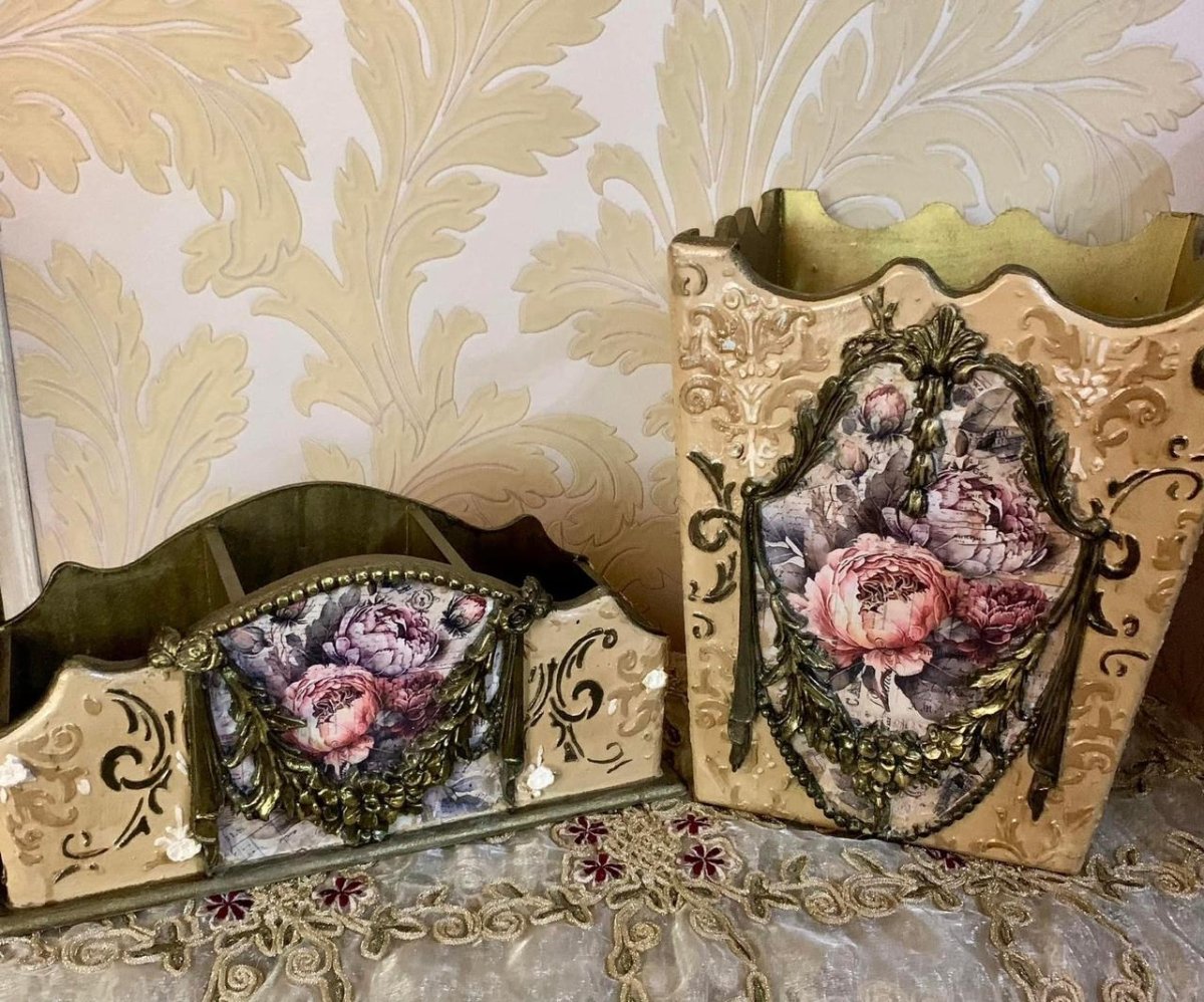 هذه المجموعة الساحرة من الصناديق المزخرفة، بلمساتها النهائية المتعثرة وتفاصيلها المزخرفة، تثير جمال التصميم العتيق. تضفي الزخارف الزهرية واللمسات الذهبية لمسة من الفخامة والرقي.
