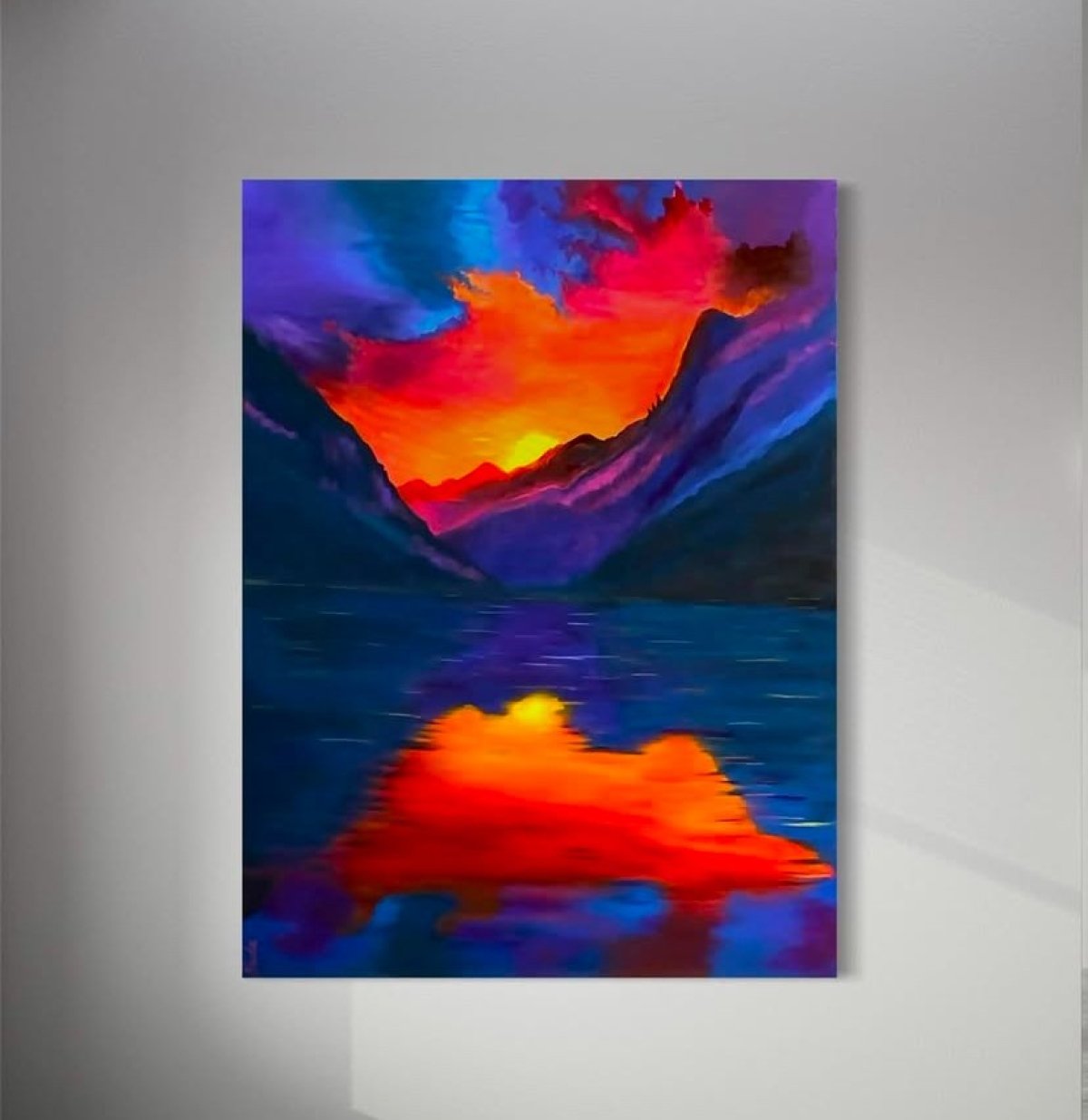 لوحة فنية مصنوعة يدويا من الأكريليك على القماش مقاس 60*80 سم