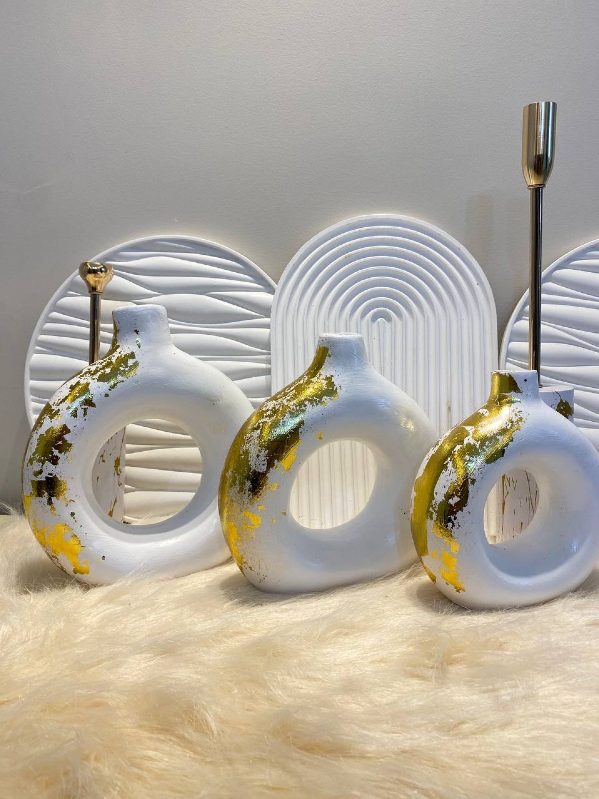 طقم دونتس ٣قطع مصنع يدويا من مادة الكونكريت مقاسات 21×19 19×17 17×14