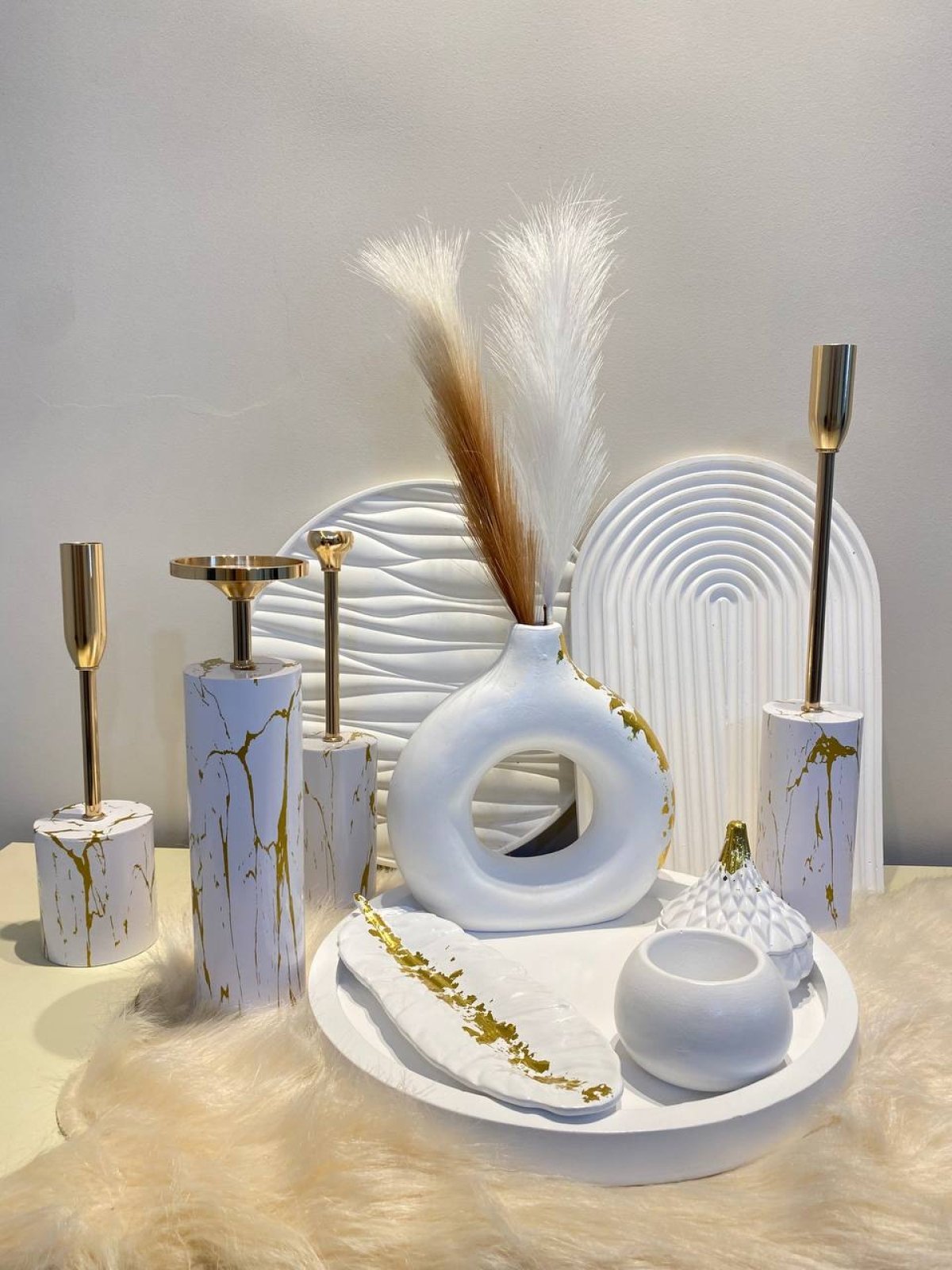 طقم كونكريت 5قطع مصنع يدويا من مادة الكونكريت كوستر 32 دونتس 19×17 ريشة 21×8 بونبونبرة 10×8 مبخرة 8×8