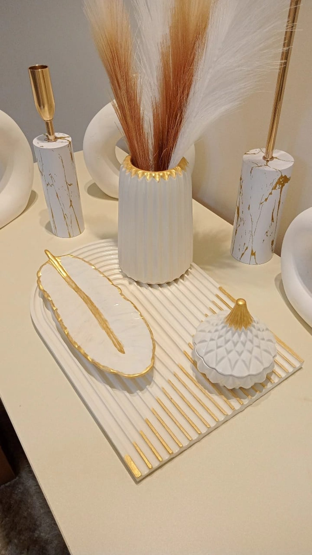 طقم كونكريت اربع قطع مصنع يدويا من مادة الكونكريت كوستر 32×21 ريشة21×8 فازة 15×9 بونبونيرة 10×8