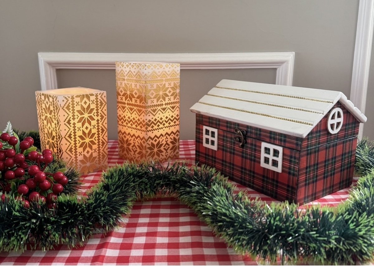بوكس الكريسماس الخشبي حجمه ١٧ في ٢٥ سم وطقم الشمع