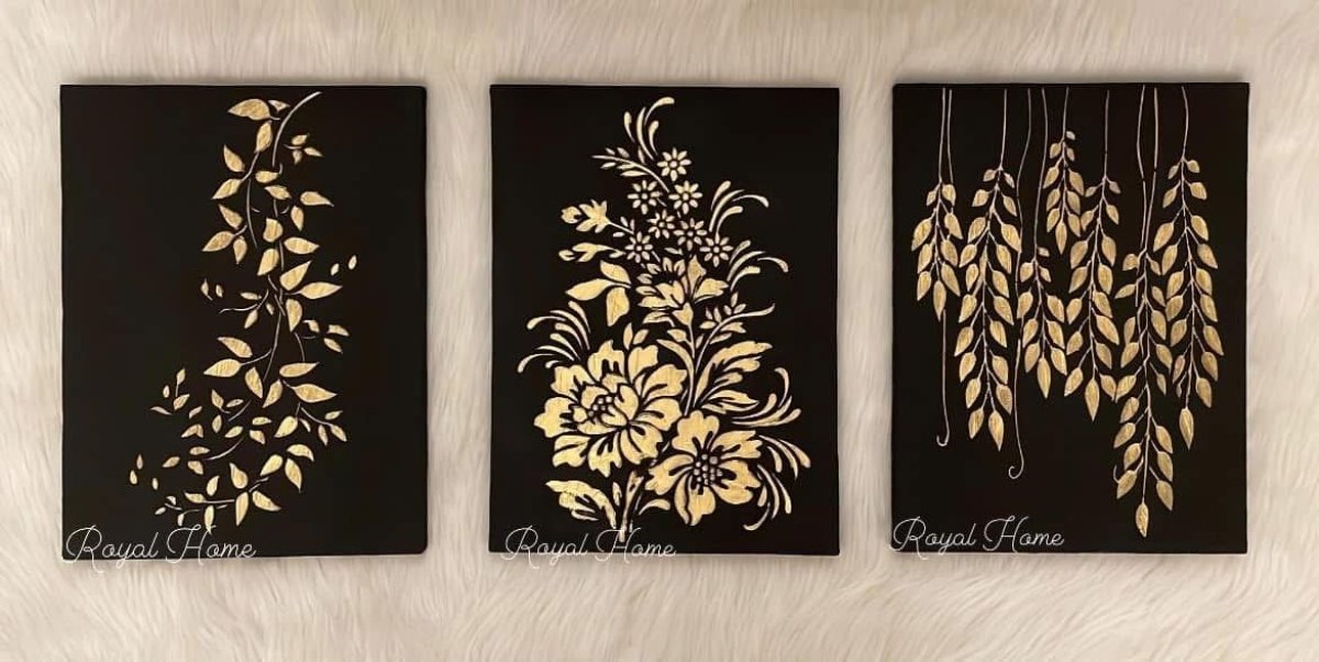 مجموعة تابلوهات رسم بارز اسود في ذهبي