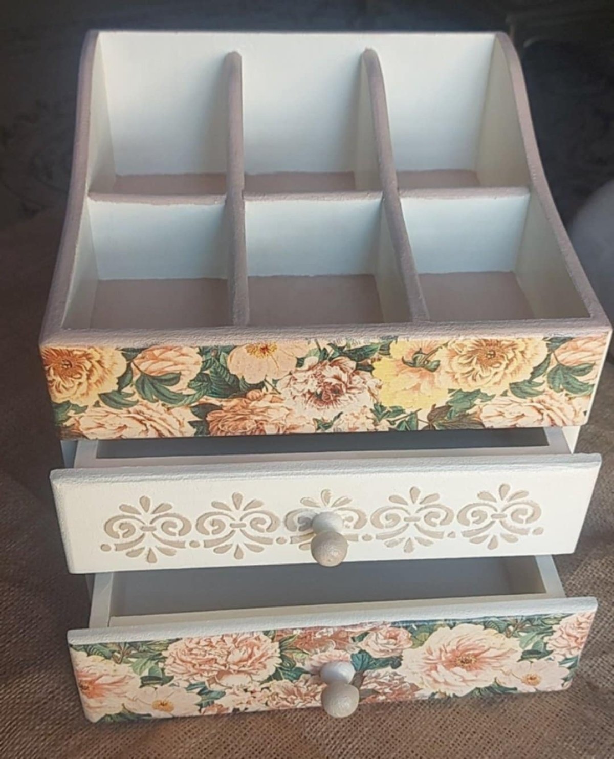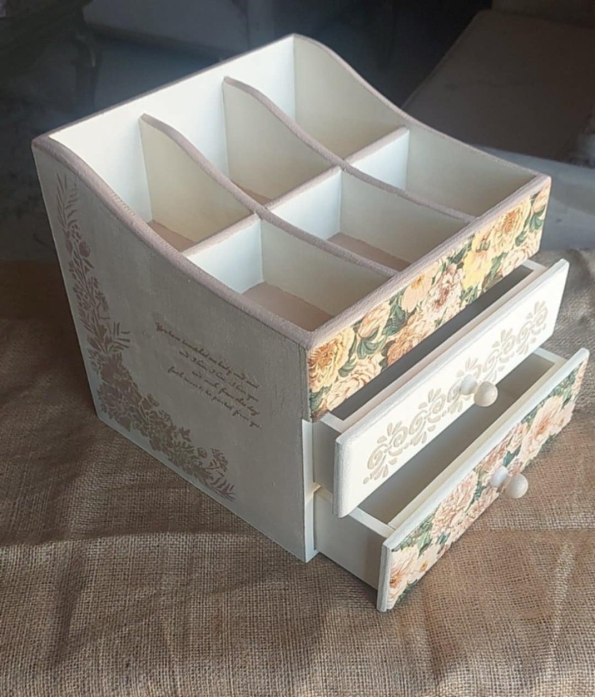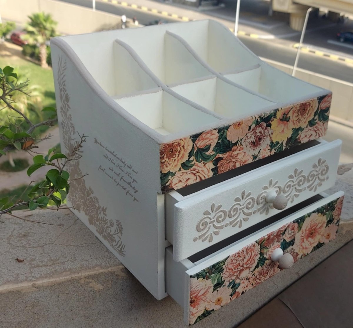منظم للتسريحه خشب هاند ميد بدرجين و٦ عيون طول 27 عرض 28 ارتفاع الدرج 7 سم ا