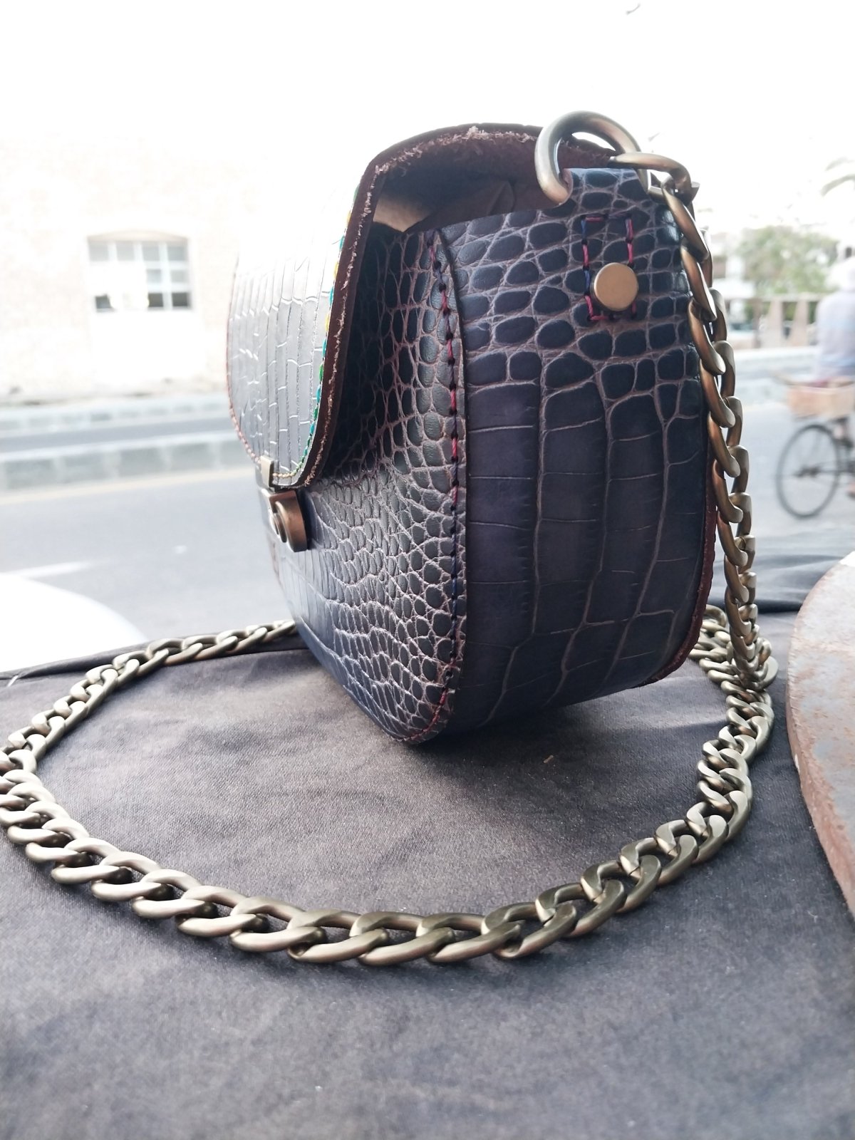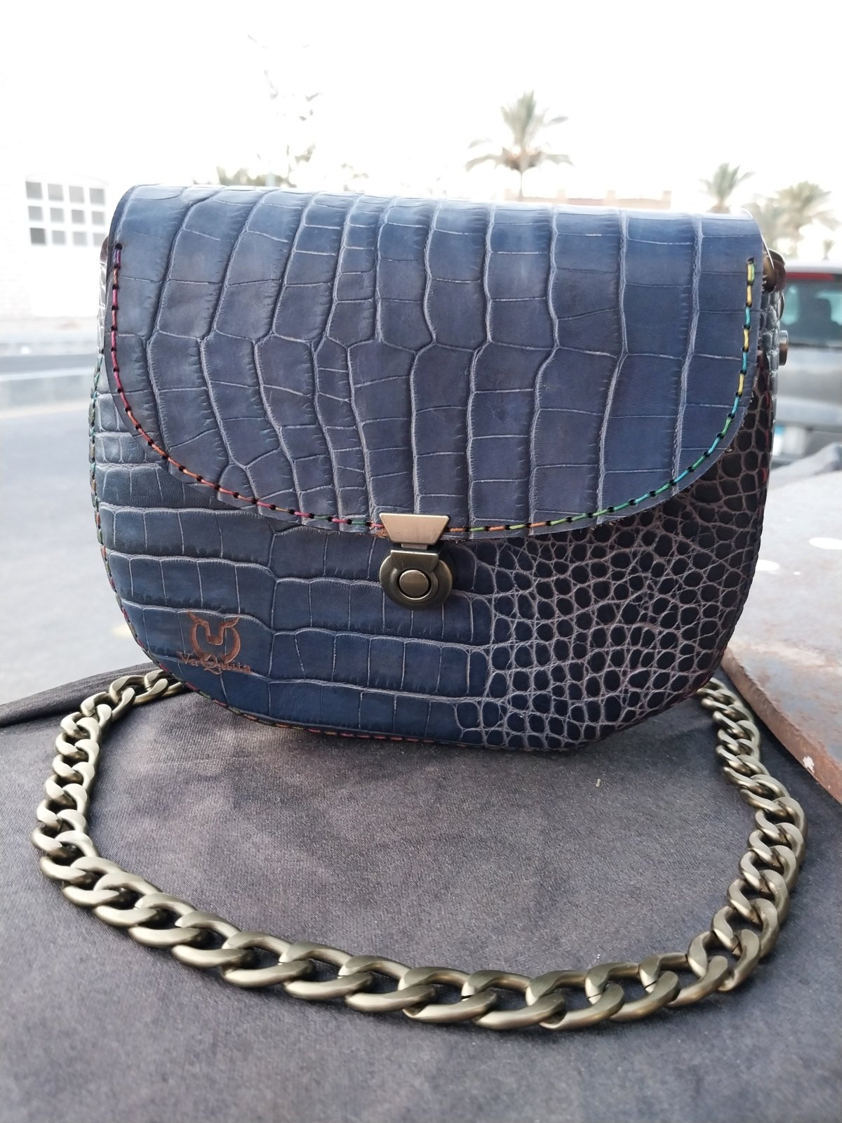 شنطه جلد طبيعي تمساح ..كروس ..اكسسوارات نحاس
