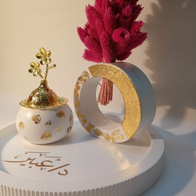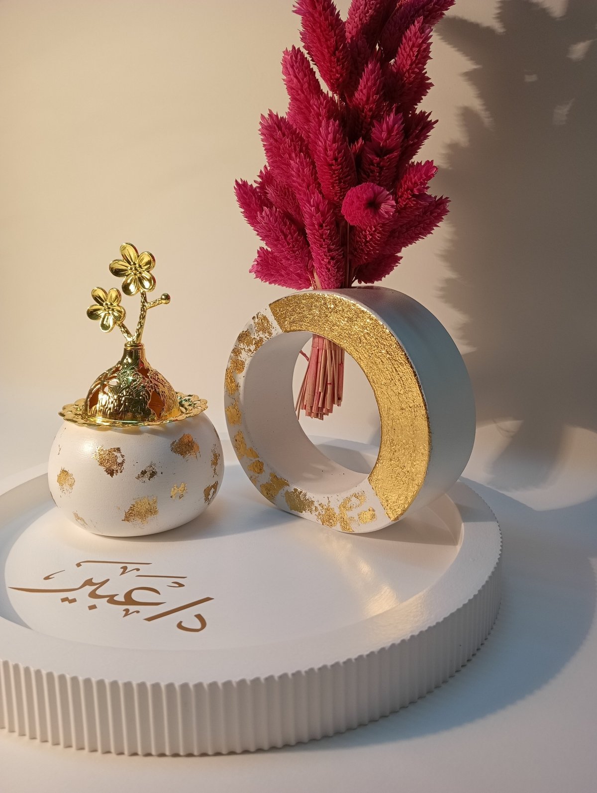 طقم كونكريت بالاسم مكون من صنيه مقاس 25 وفازه مفرغه ومبخره بغطاء أرابيسك معزول بعازل شمعي