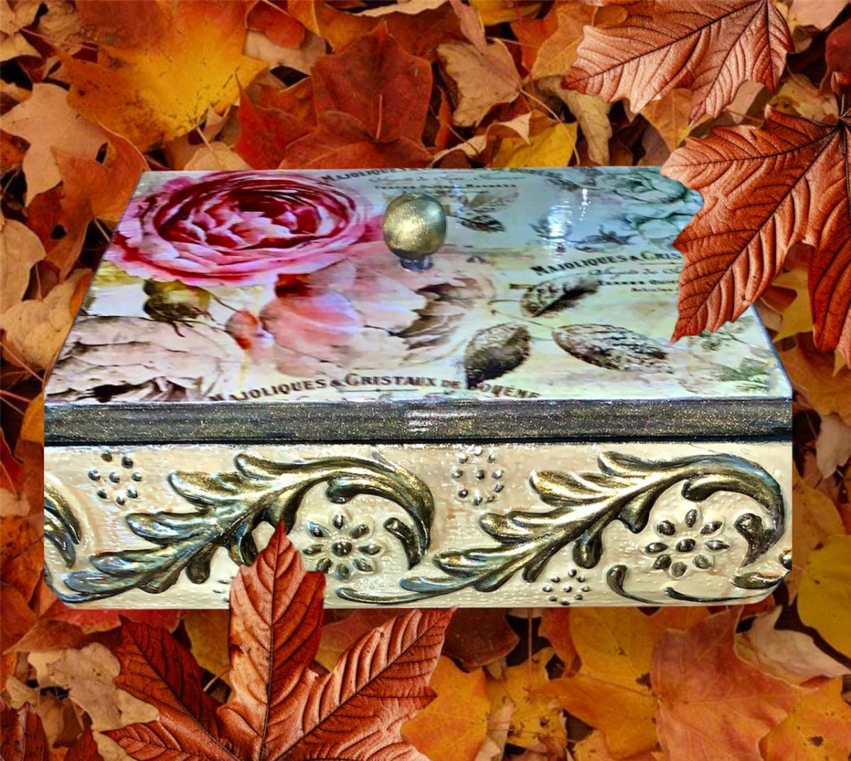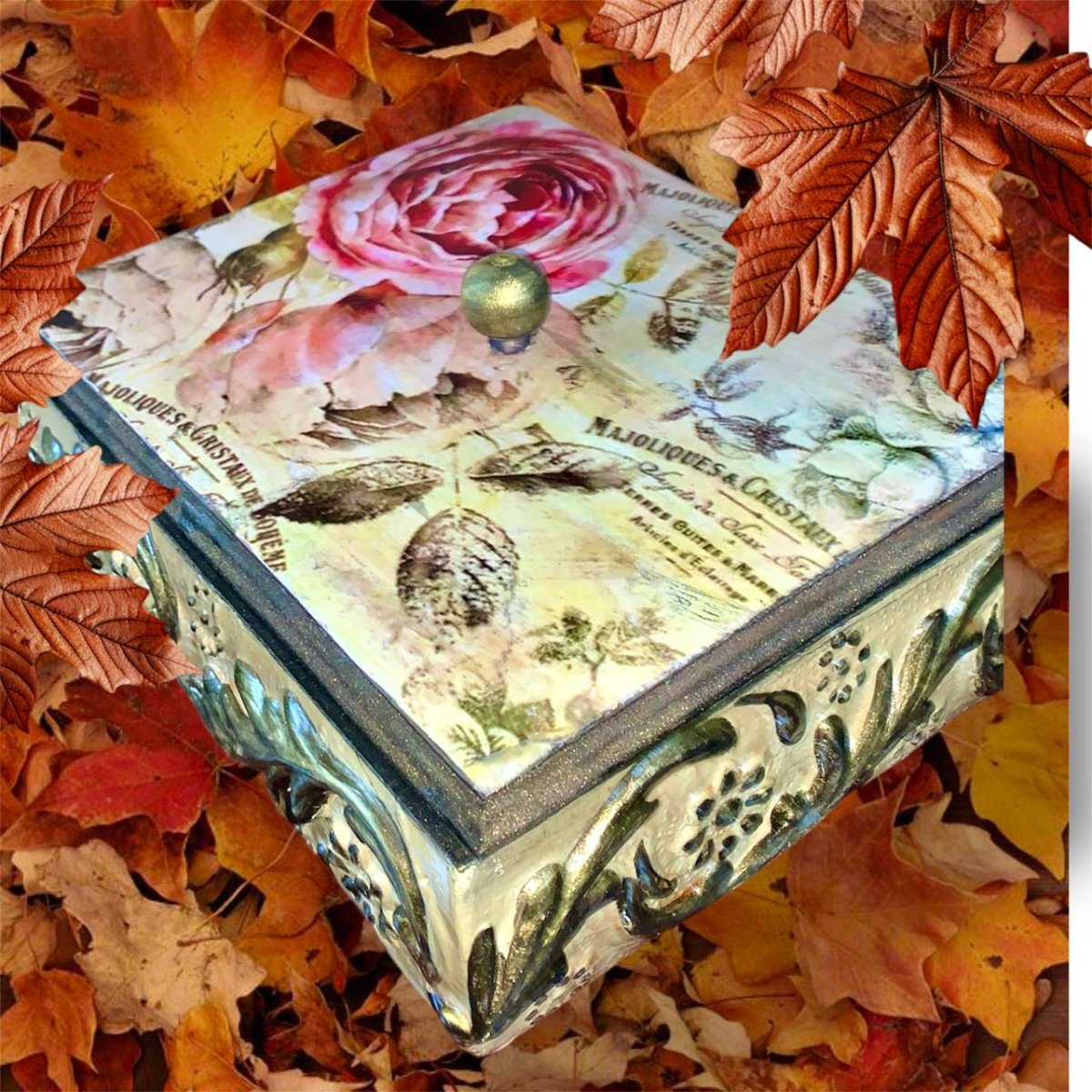 استمتع بالجمال الخالد لهذا الصندوق المزخرف المصنوع يدويًا، والمزين بتصميم زهور رومانسي عتيق. يتميز هذا الصندوق بزخارف وردية ناعمة مع لمسات كتابية رقيقة، وهو مؤطر بأنماط منقوشة معقدة ولمسة نهائية لامعة، مما يجعله عملاً فنيًا حقيقيًا. المواد: خشب عالي الجودة مع تفاصيل مرسومة يدويًا وأعمال ديكوباج التصميم: تصميم زهور عتيق مع قطعة مركزية من الورد المشع وإبرازات معدنية الأبعاد: حجم مثالي للتذكارات أو المجوهرات أو الهدايا الغرض: إضافة مذهلة لديكور منزلك أو هدية من القلب لشخص مميز يجسد هذا الصندوق الأنيق جوهر الطبيعة والحنين، ويجمع بين الفن والوظيفة.