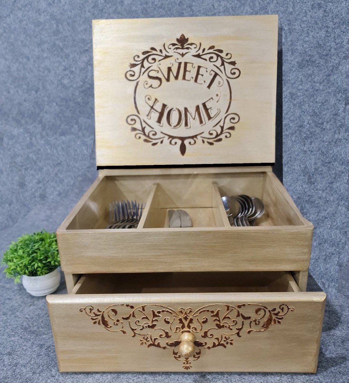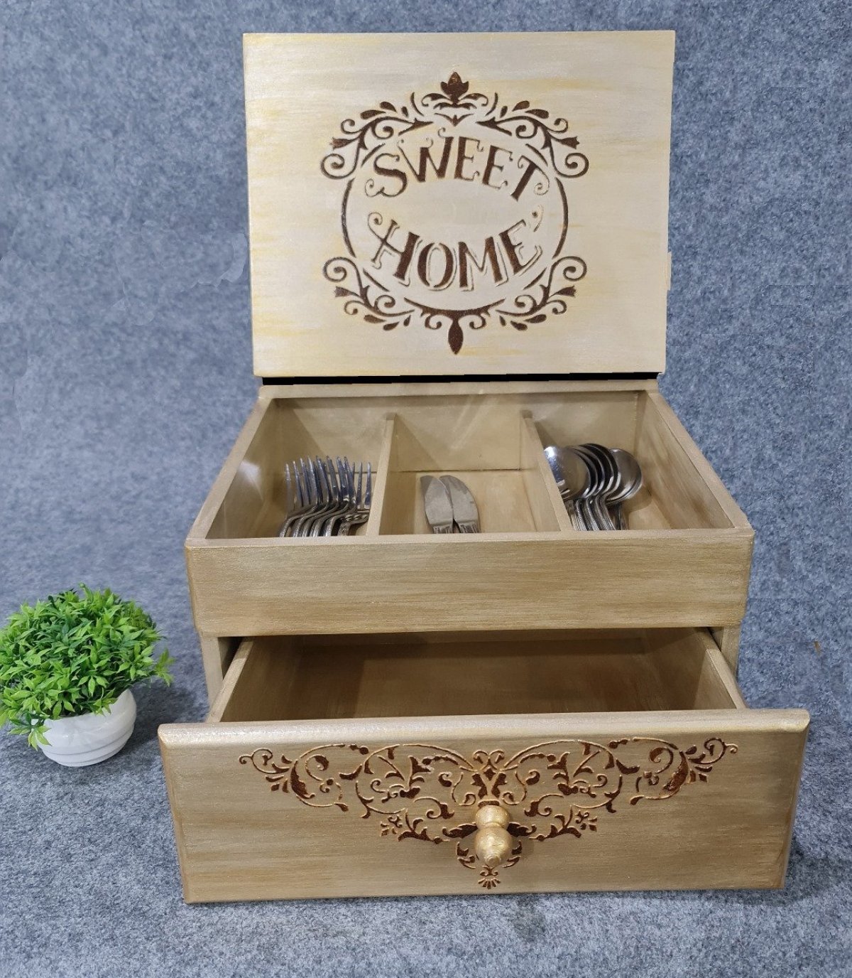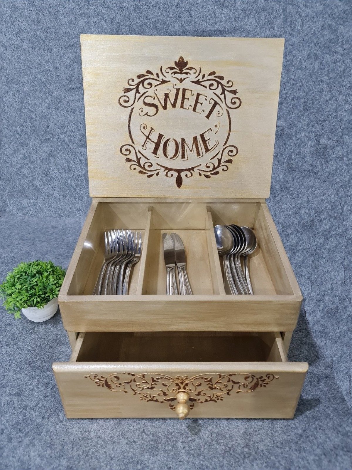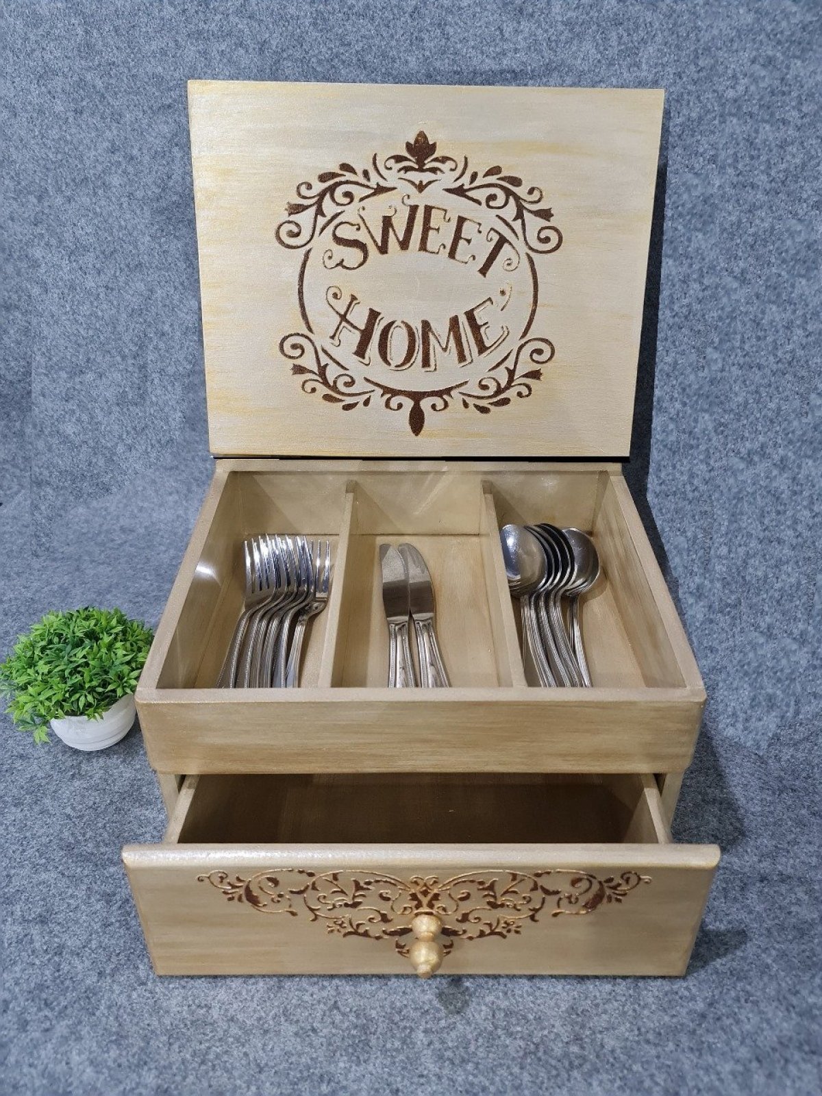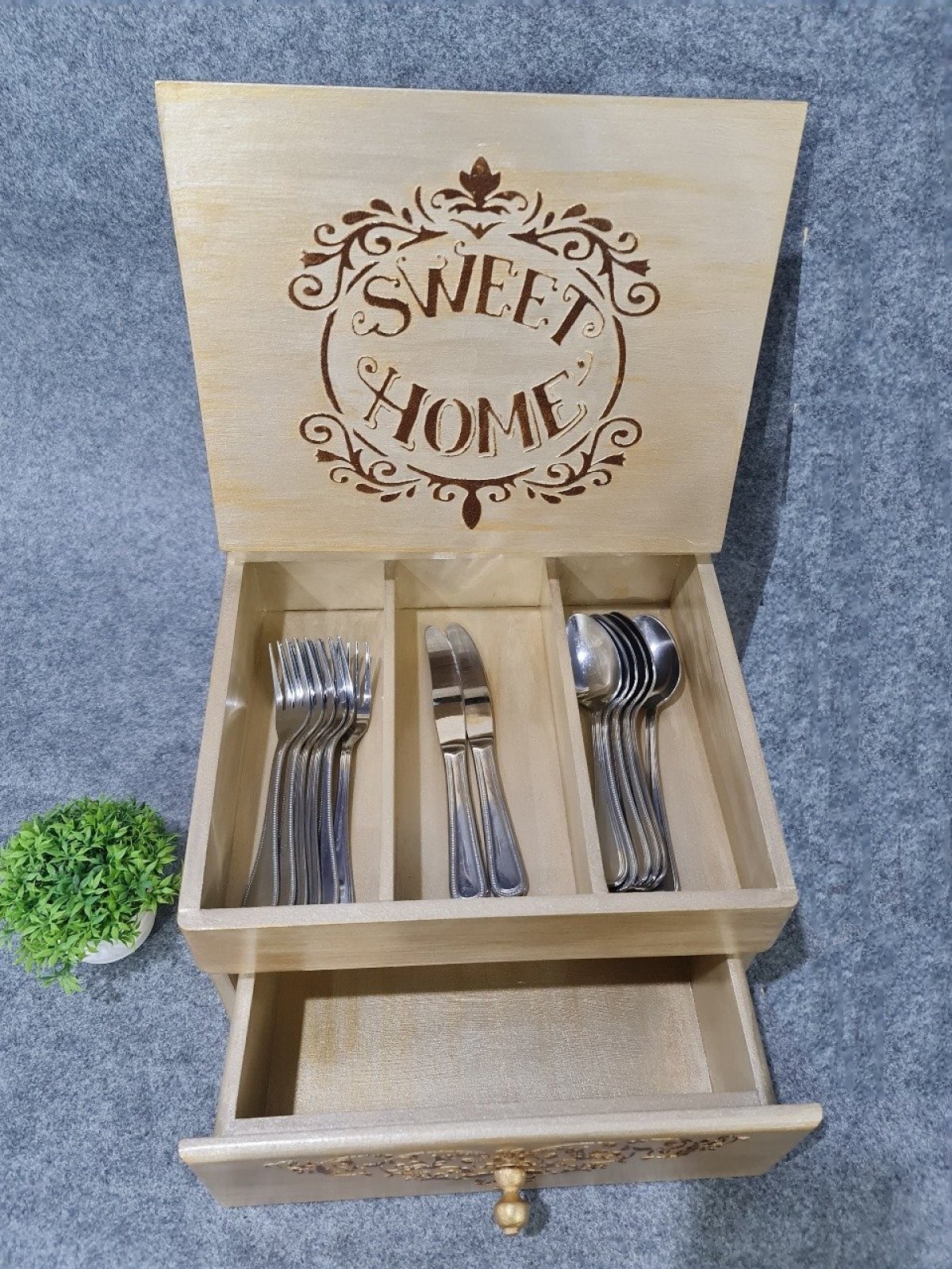 منظم جديد لأدوات الأكل والشوك والسكاكين والملاعق، يمكن استخدام الدرج أيضًا كركن للقهوة
