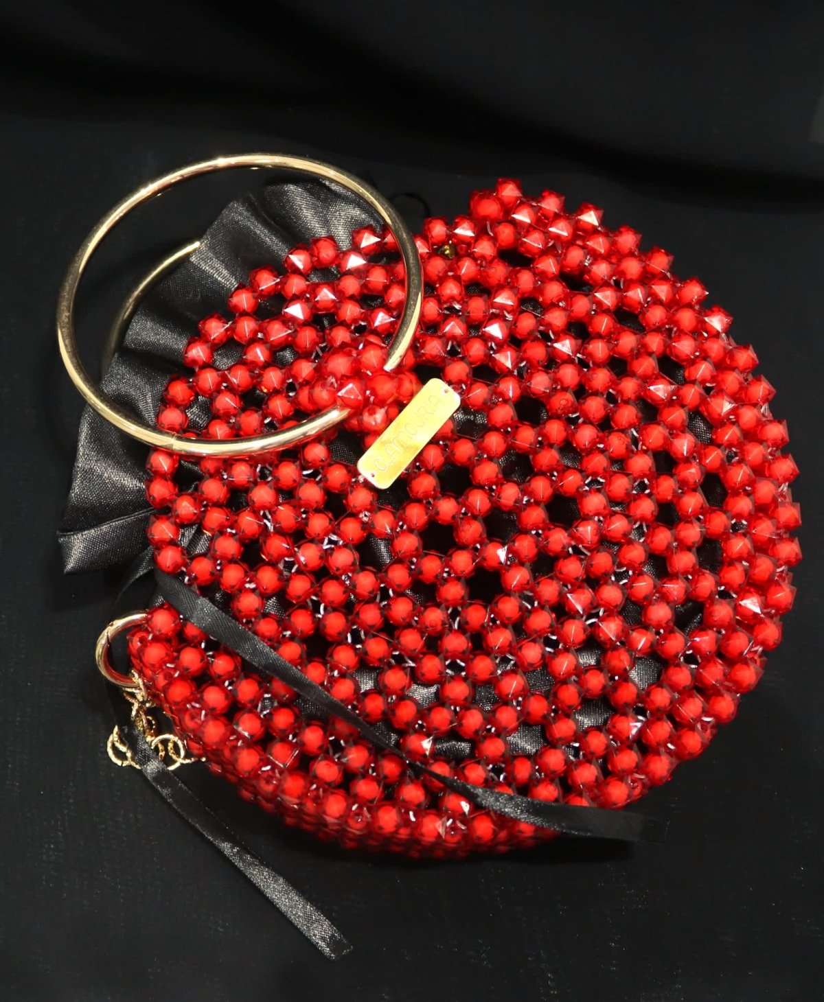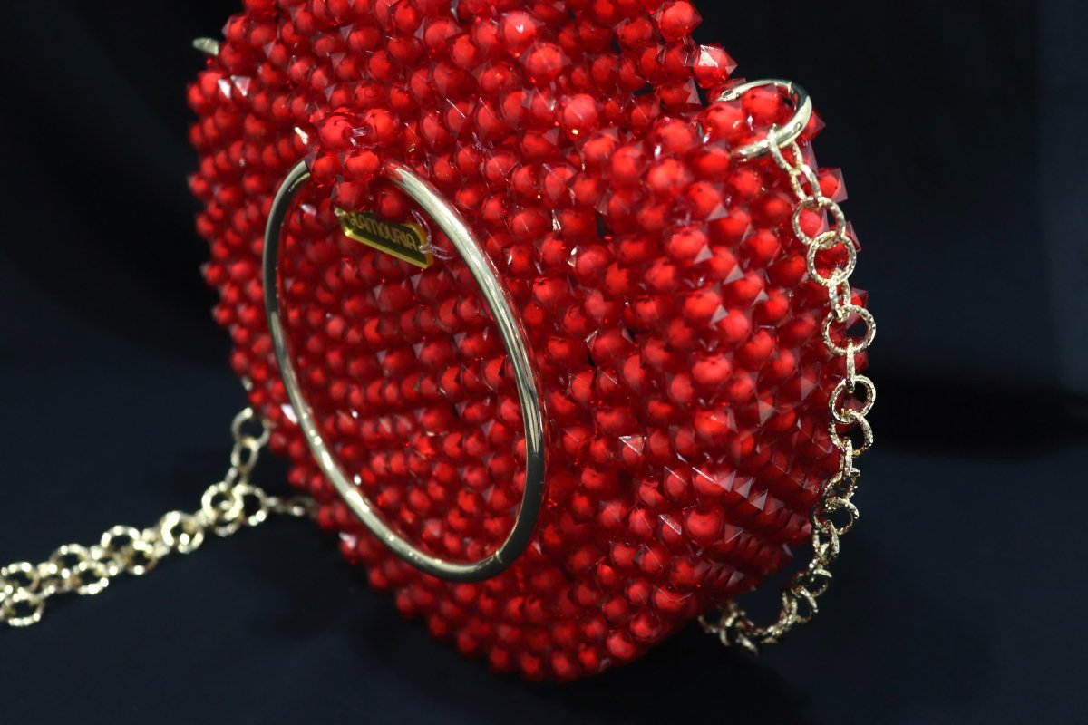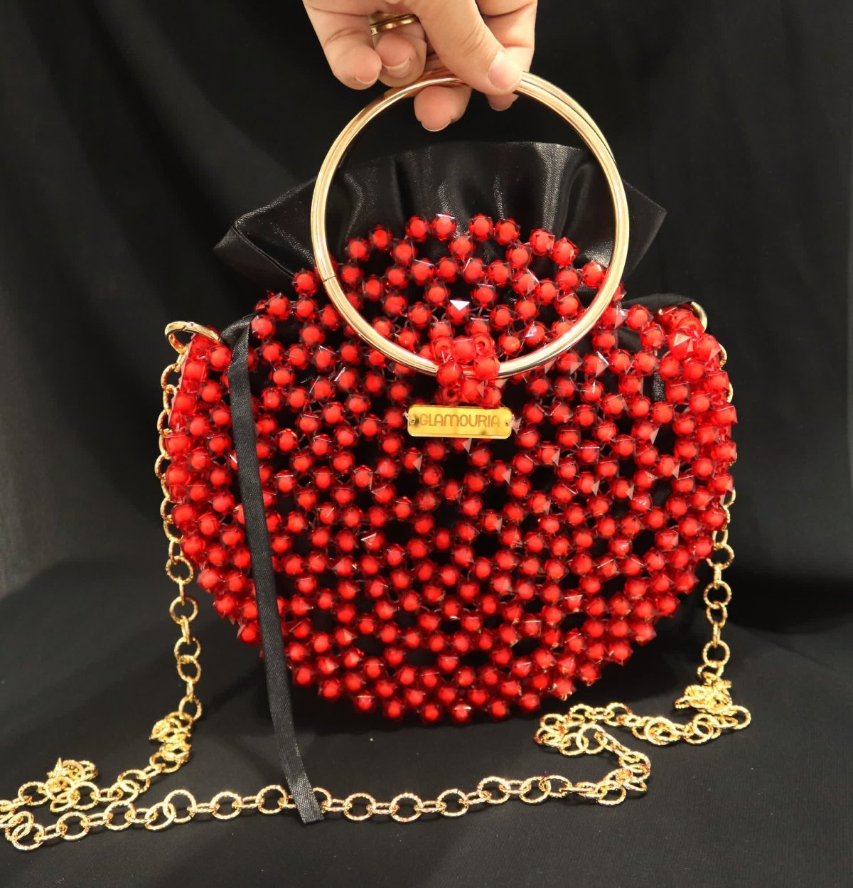 شنطة دائرية بمقبض يد معدني ذهبي ويد طويلة كروس ذهبي مقاس مناسب جداً يدخل فيه الهاتف ومحفظة وعنصر آخر مرفقة ببطانة متحركة سوداء ساتان