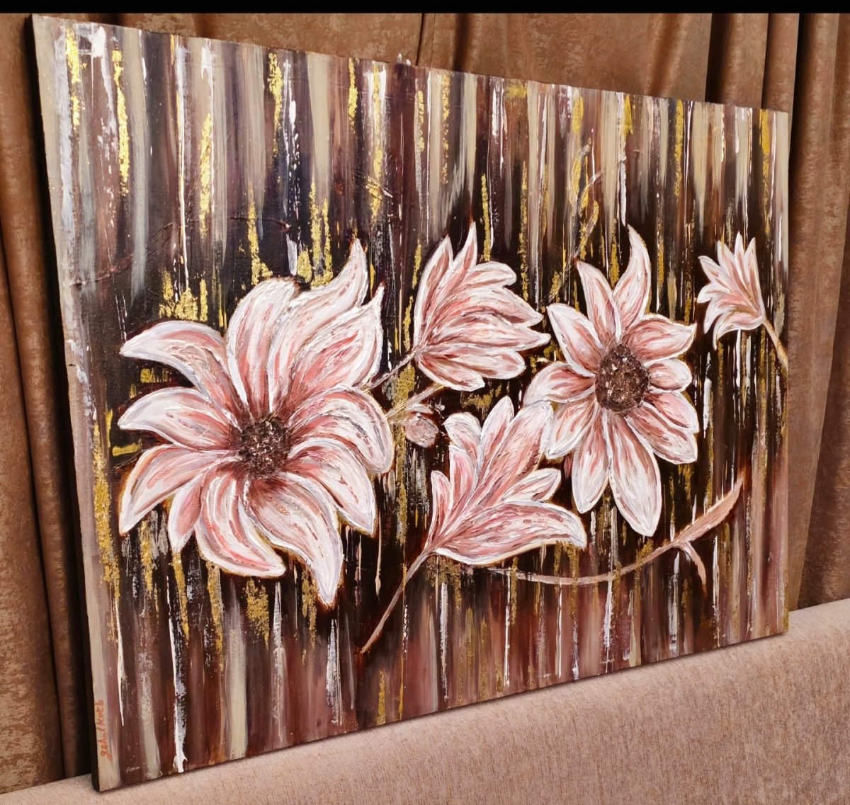 لوحه ب ألوان اكريليك ملمس بارز وورق الدهب