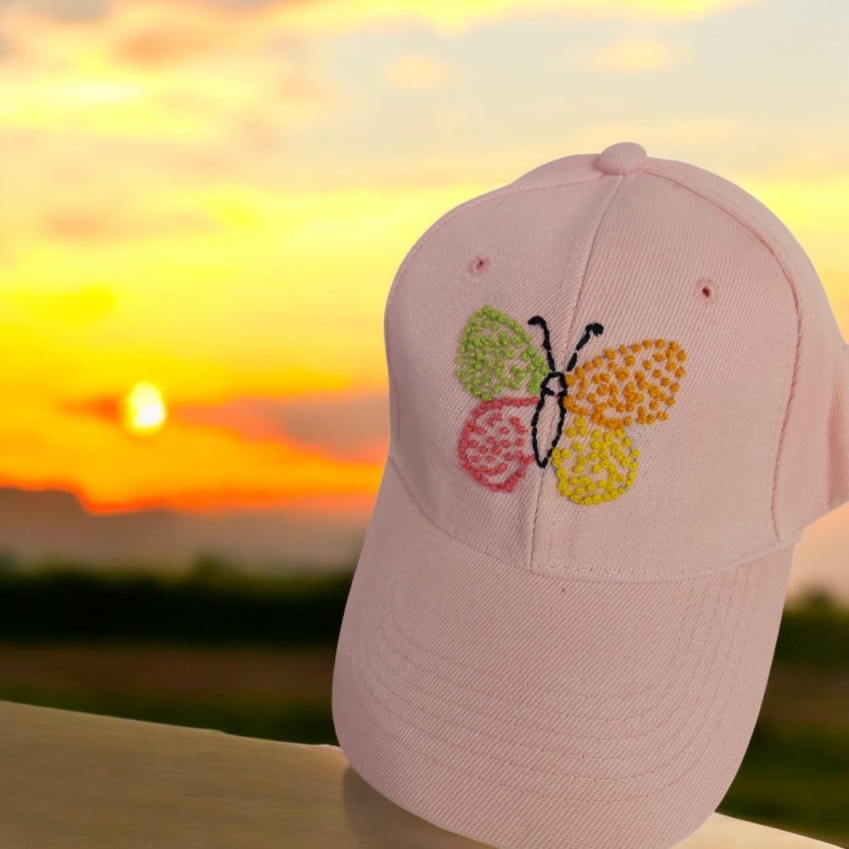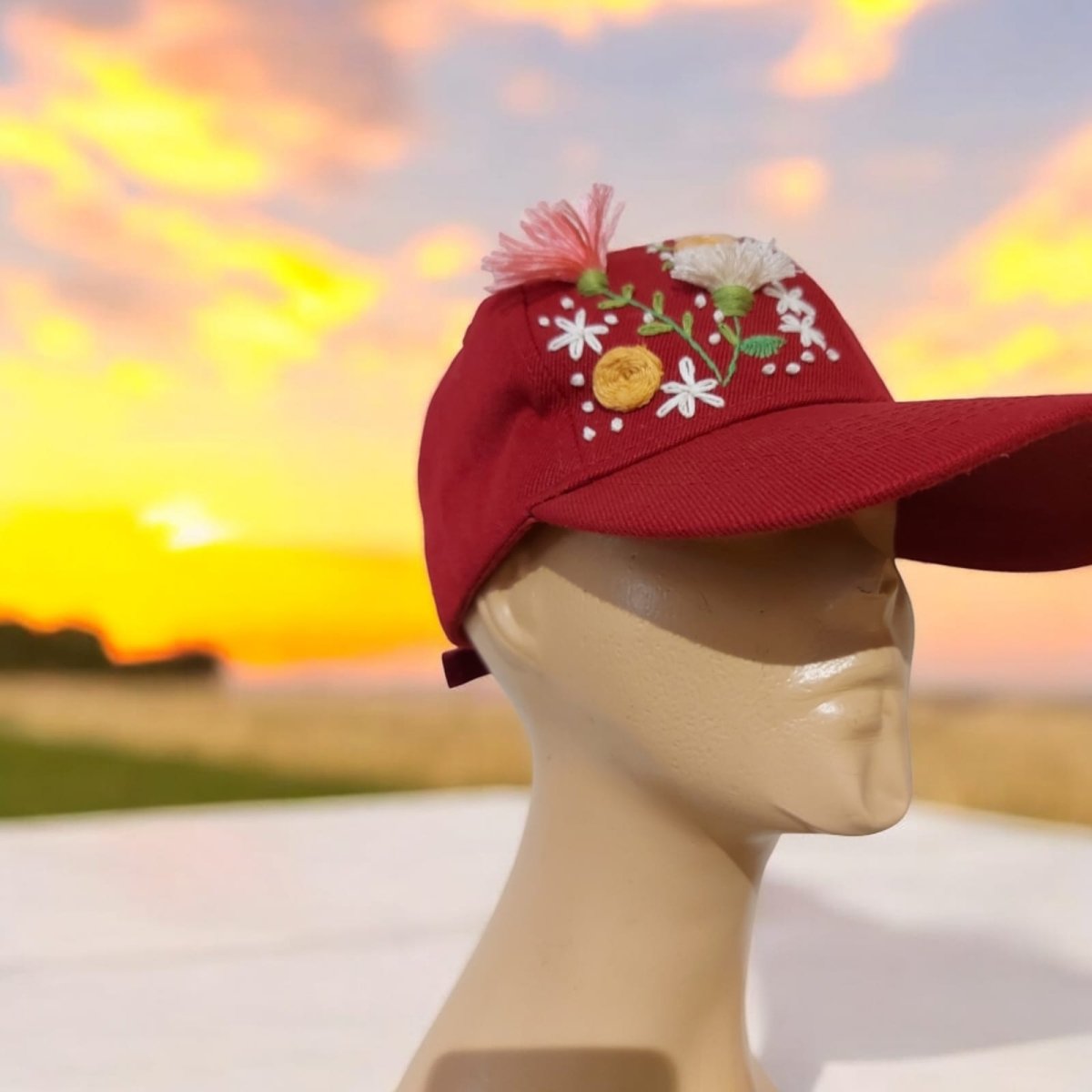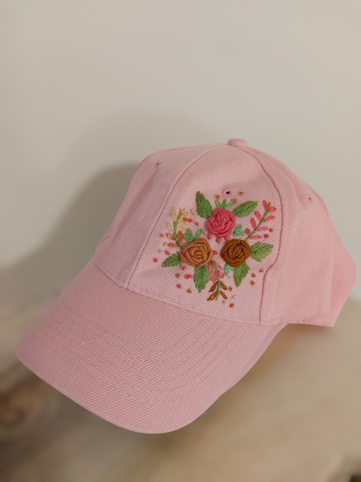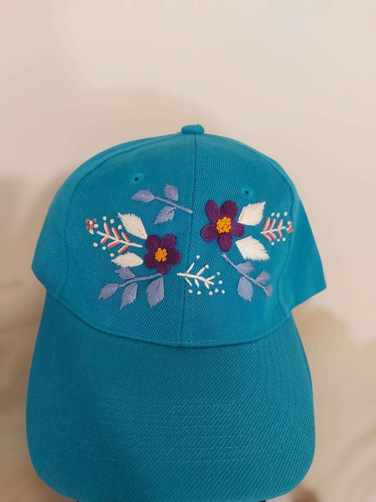 كاب من الخامة القطن مطرز هاند ميد بخيوط قطنيه قابل للغسيل الوان عديدة _ الديزاين قطعه واحدة فقط