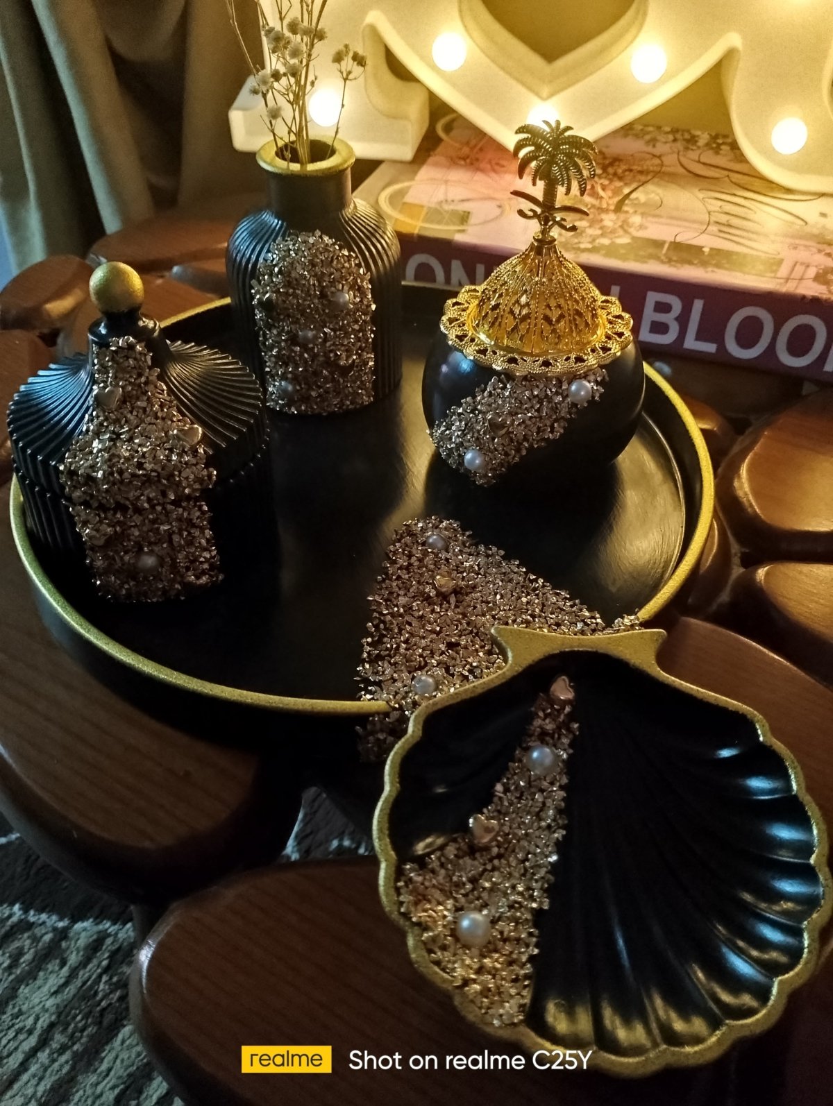 طقم اسود رائع مطعم بالاحجار الدهبي مكون من ٥قطع ومتاح تغيير الالوان