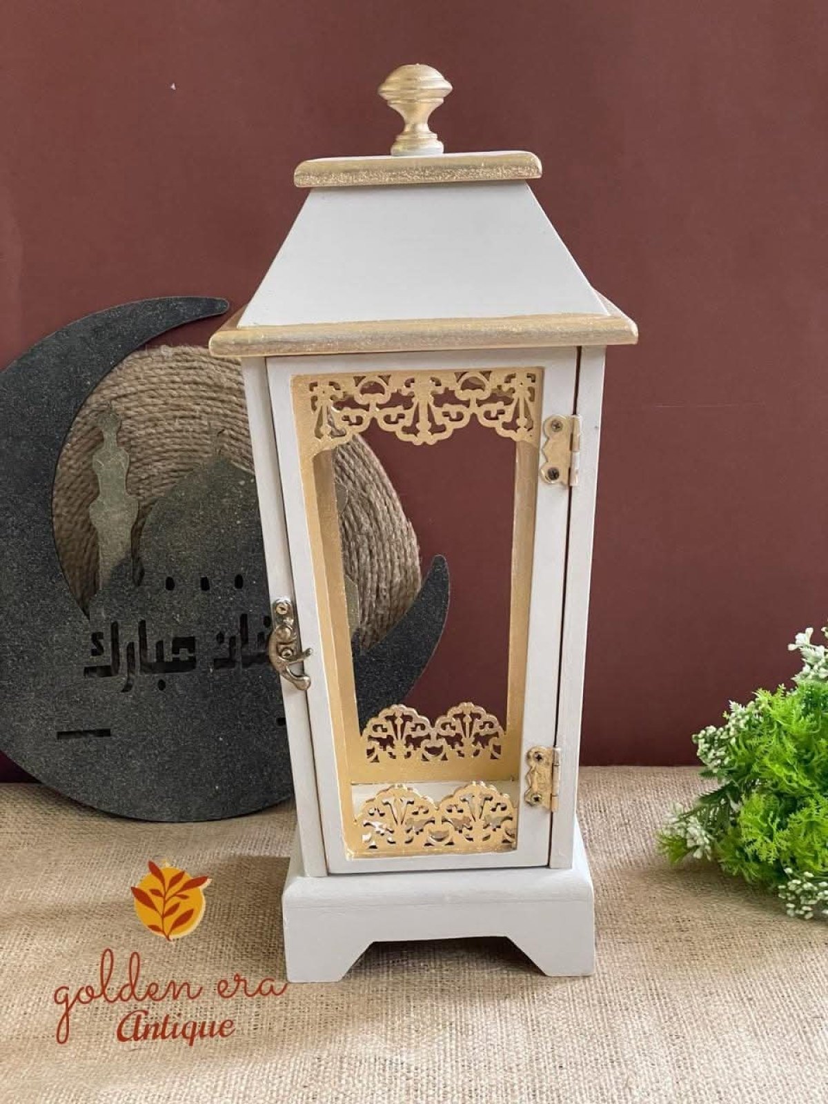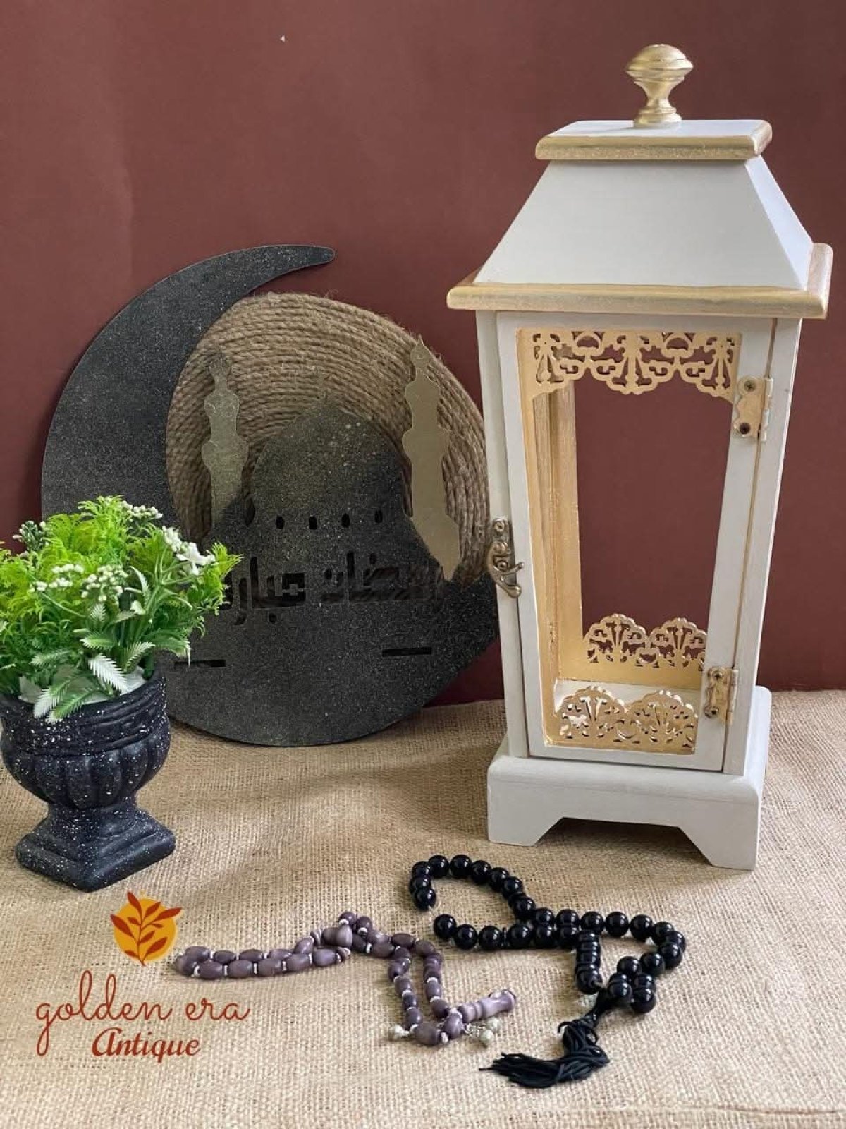 فانوس ديكورى لرمضان من الخشب عالى الجودة ارتفاع ٥٠ سم باللون البيج الفاااتح في الذهبي
