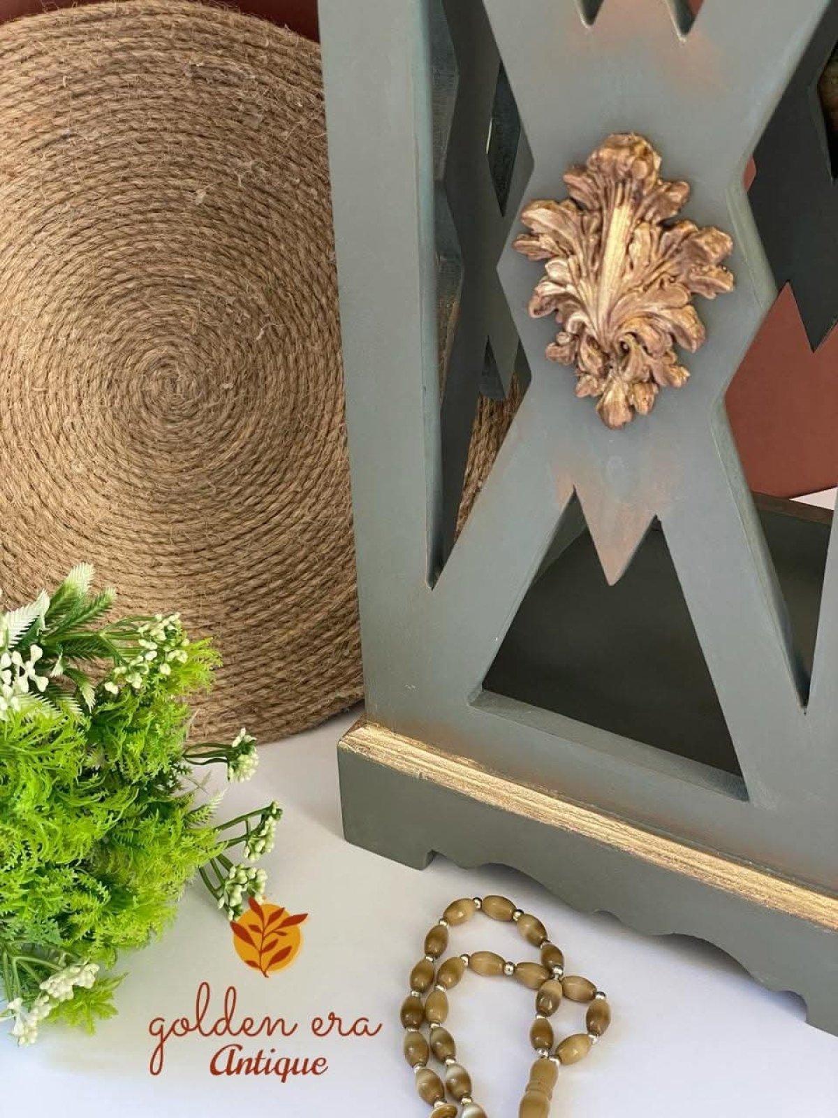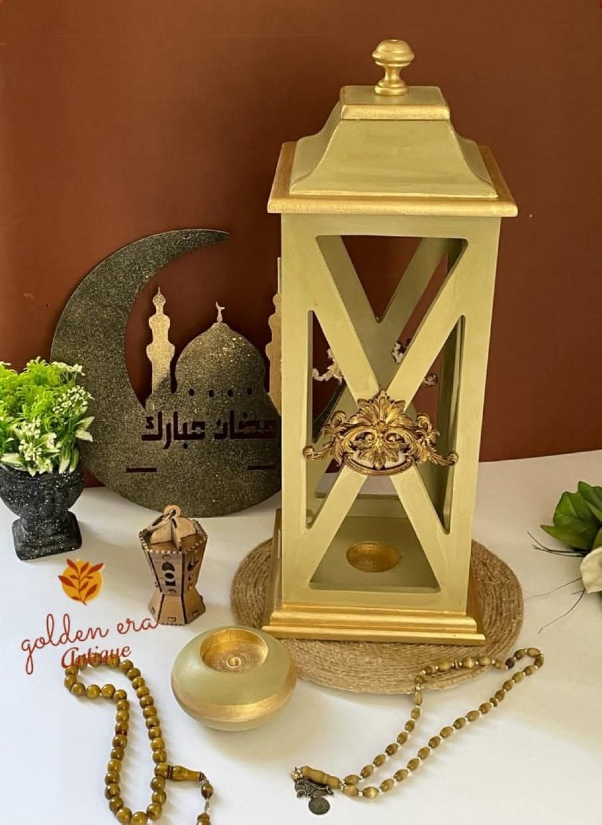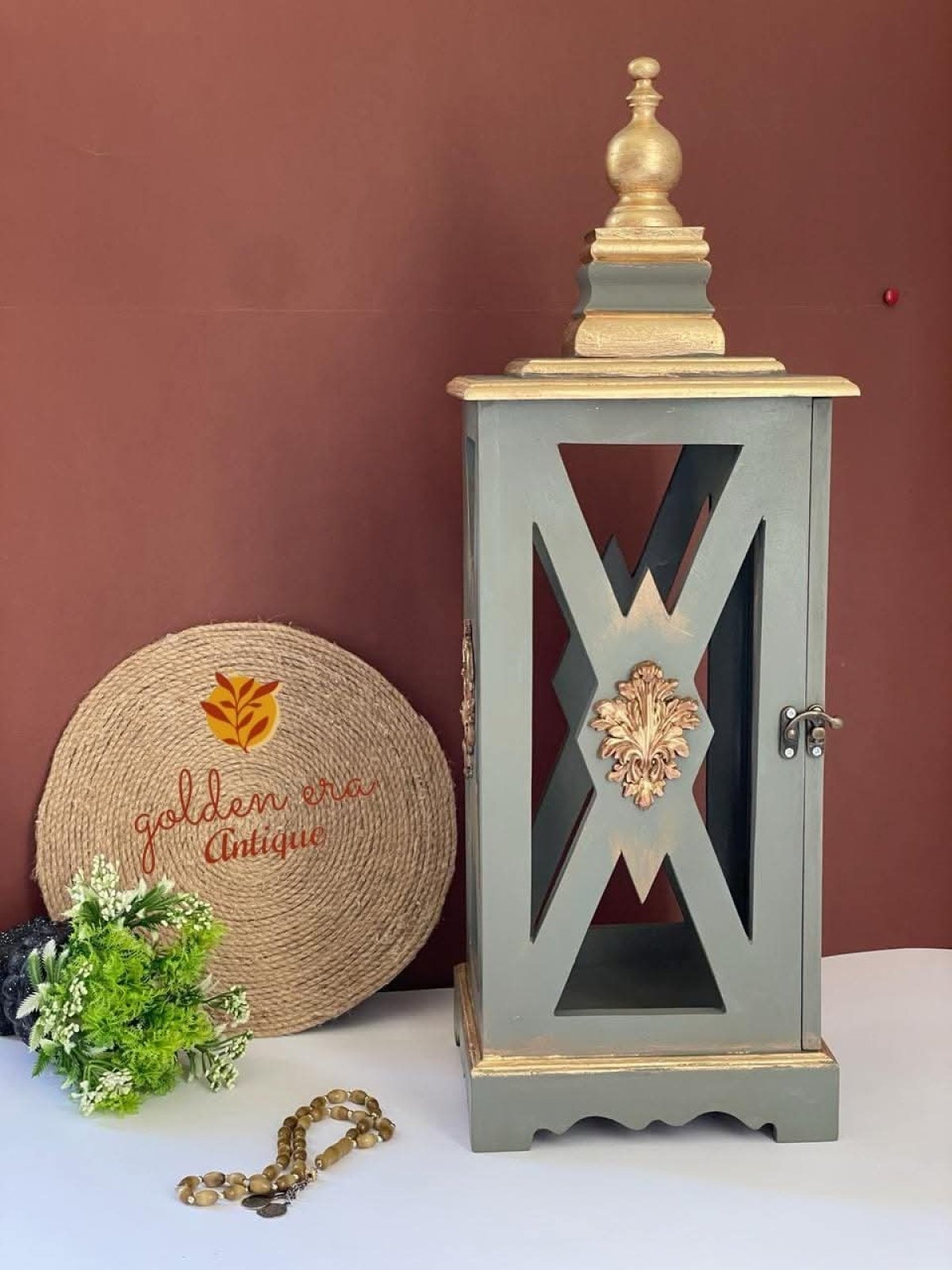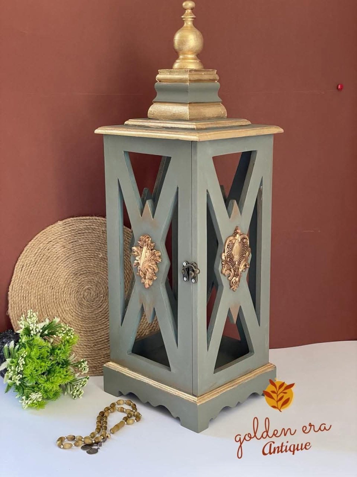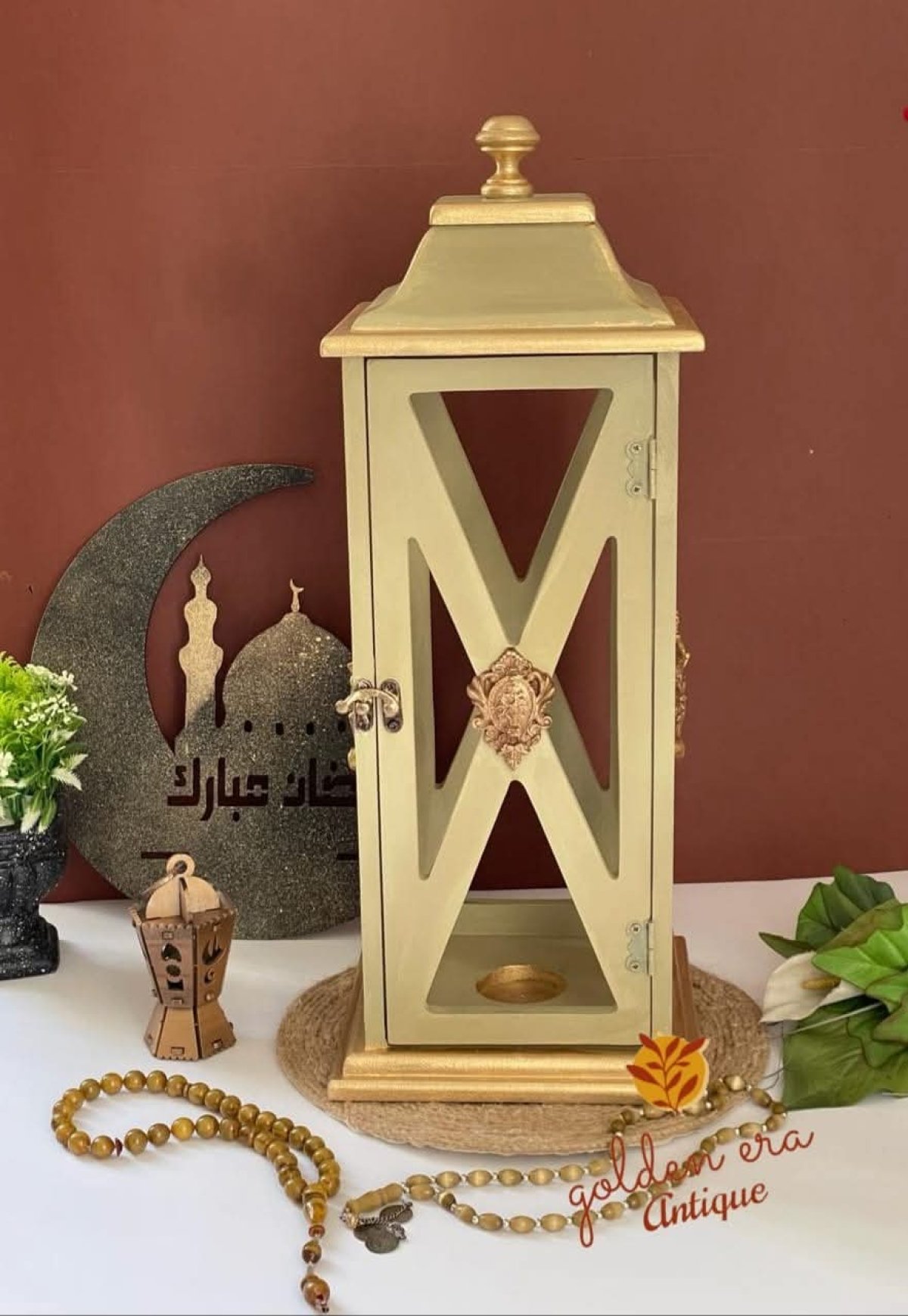 فانوس ديكورى من اجود انواع الخشب مطعم بحليات زخرفيه من البوليستر مقاس ٥٥ سم باللون الفستقي في الذهبي متاح التنفيذ بأى لون