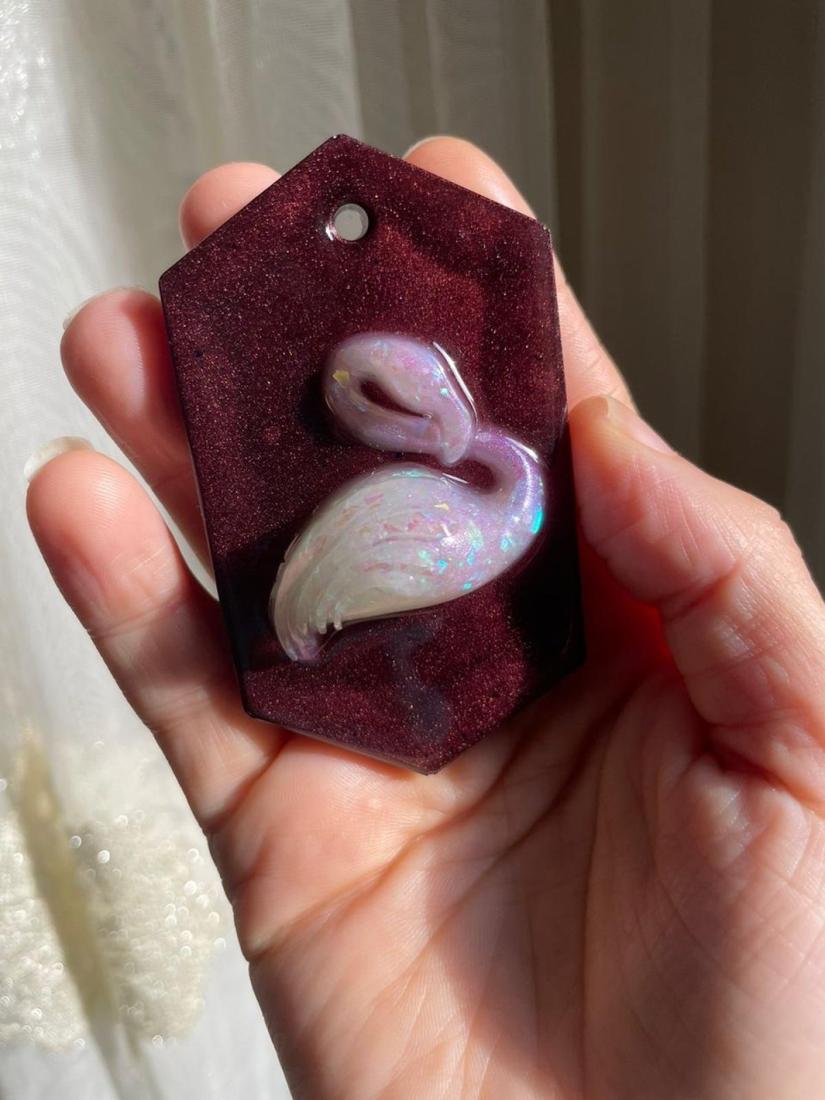 تعليقة سيارة من الريزن مغلفة بشكل انيق فى علبة كرافت مع ورد طبيعى شكل الفلامينجو متاح شكل الصبار بدلًا من الفلامينجو متاح تغيير الالوان