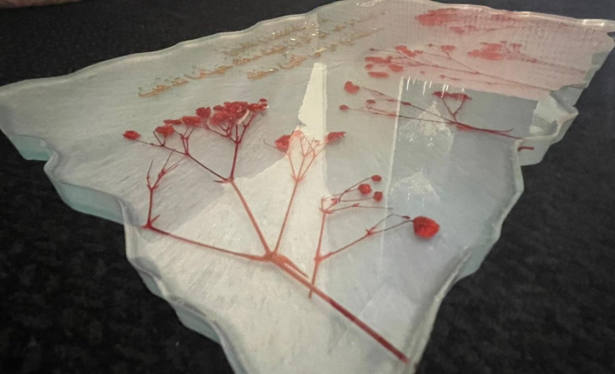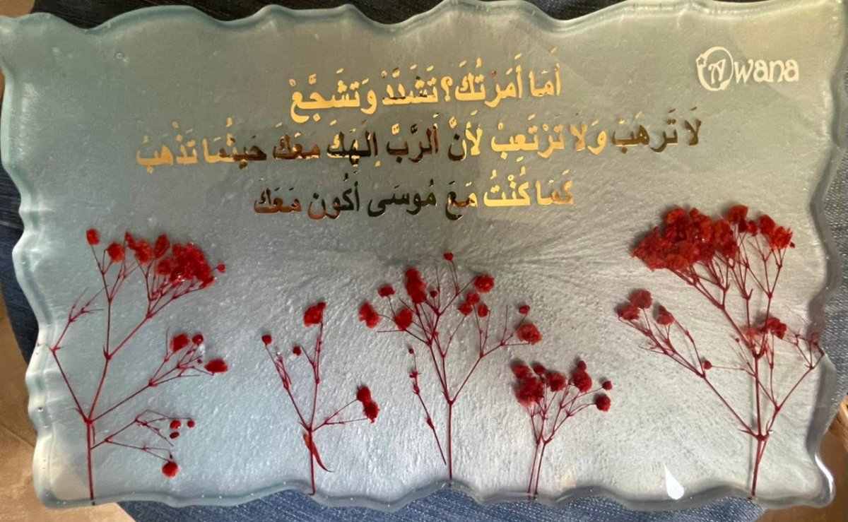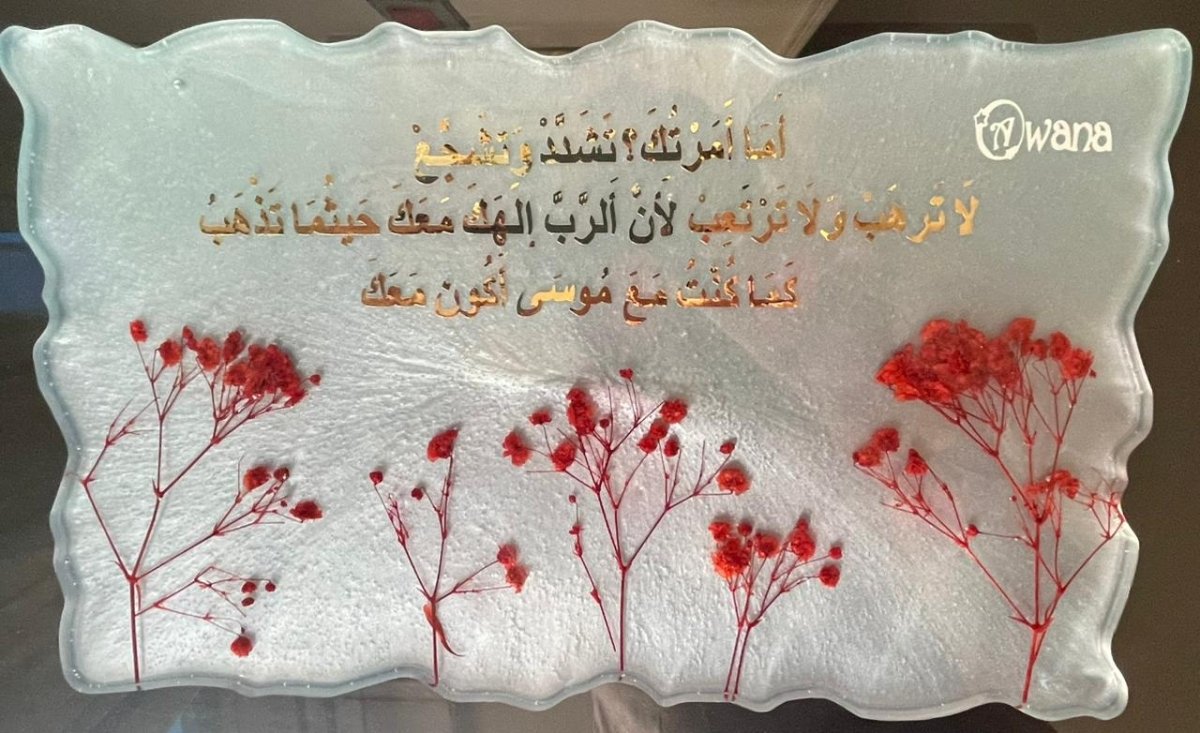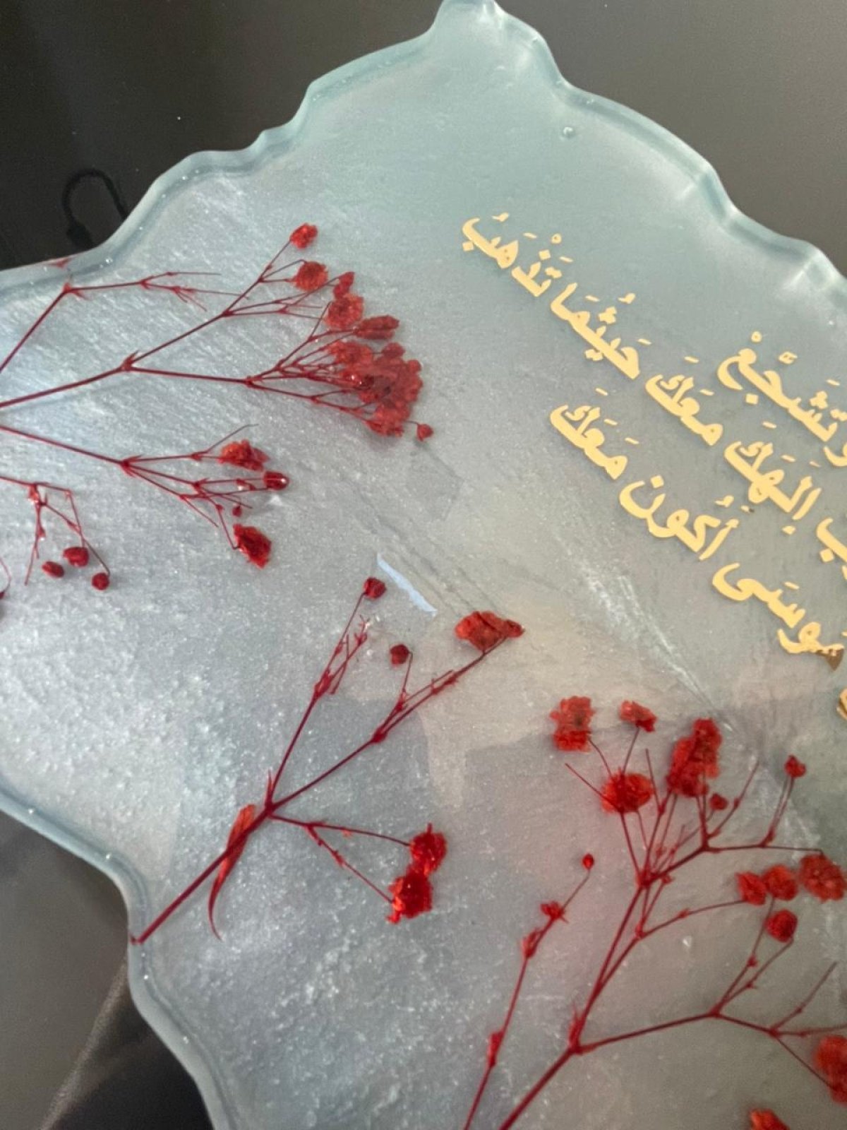 ستاند انيق من الريزن طباعة ذهبى + ورد طبيعى مجفف مستورد تصميم شيك وانيق متاح كل الالوان مقاس ١٩*٣٠