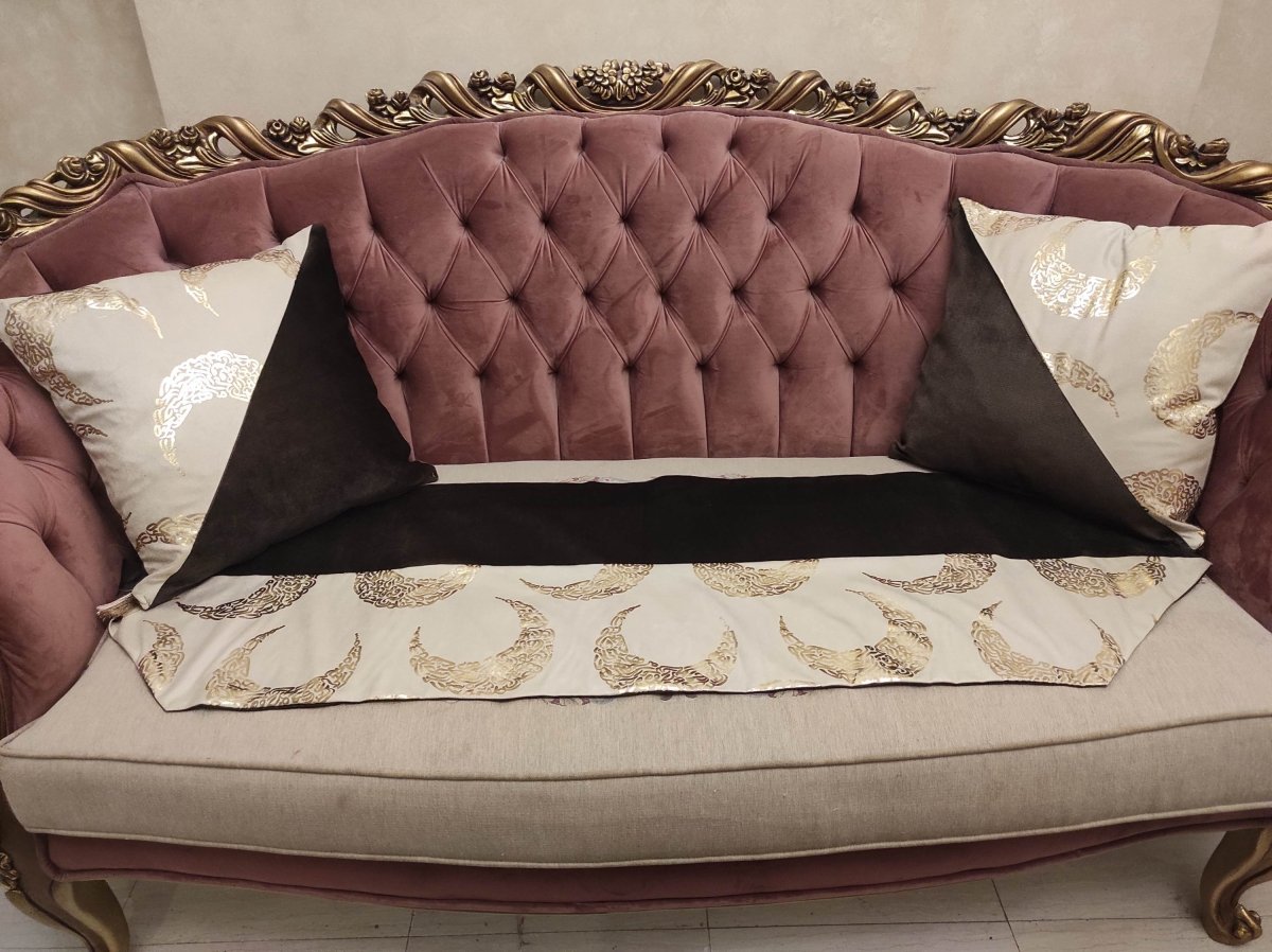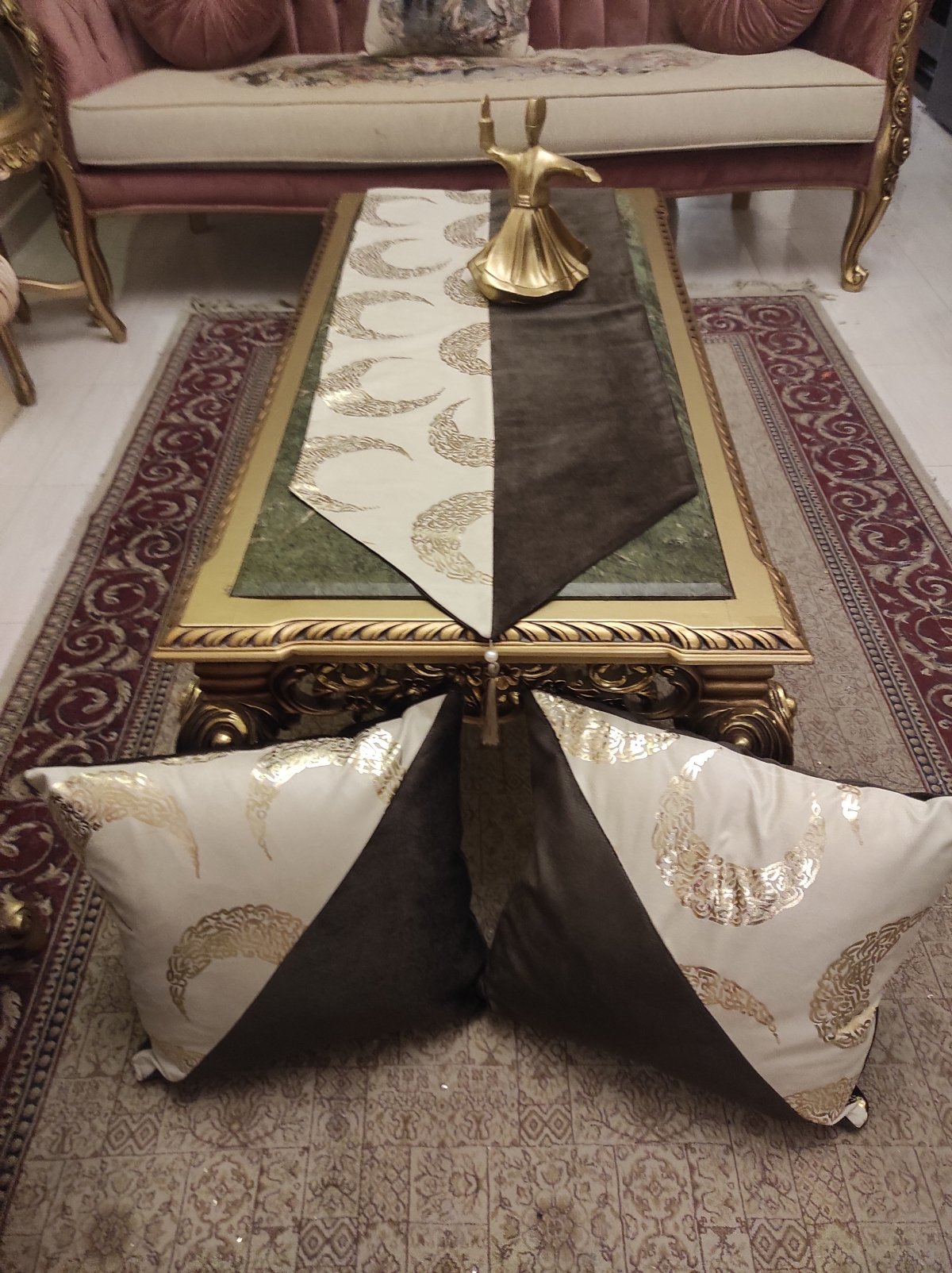طقم قطيفه مبطن بالكامل مكون من رانر 140*45 ٢كاڤر كوشن مقاس 45*45 سم