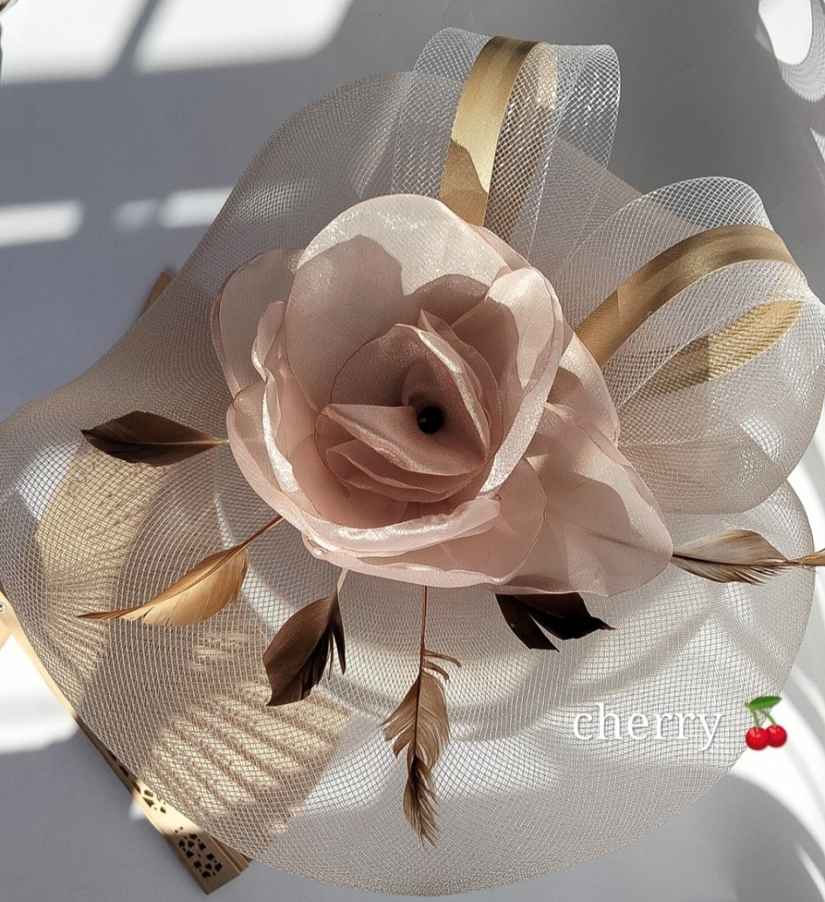 شابوه سواريه مصنوع من الجوميه مع التل وقماش الأورجانزا والريش الطبيعى مصنوع يدويا لطله كالأميرات