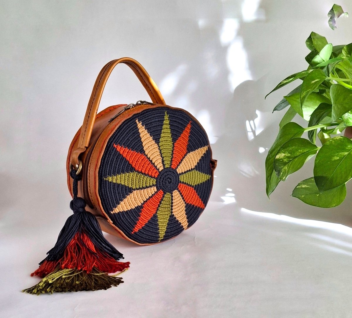 شنطه جديده تابستري مدعمه بالجلد الطبيعي وخيوط تركي ضد الوبره او البهتان قطر الدائره ٢١ ذراع الشنطه قابل للتقصير