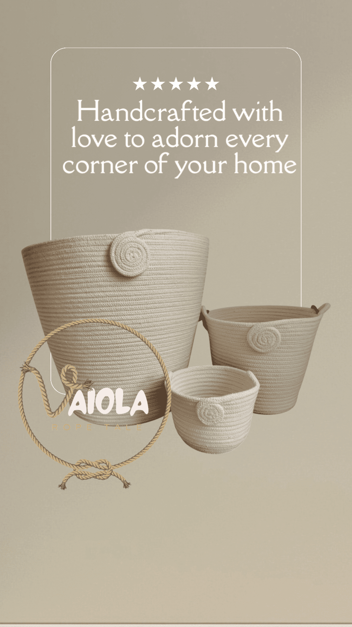 10*13. --13*18. -- 32*32الباسكتس مقاسات مجموعة من الحاويات اليدوية المصنوعة بحب وإتقان من الحبل القطني الطبيعي، تضفي لمسة من الأناقة والبساطة على كل ركن من منزلك. مثالية للتخزين المنظم أو كعنصر ديكور جذاب. تتميز بتصميم عصري مزين بنمط حلزوني يعكس الدفء والطابع البوهيمي. متوفرة بأحجام متعددة لتلائم احتياجاتك اليومية.
