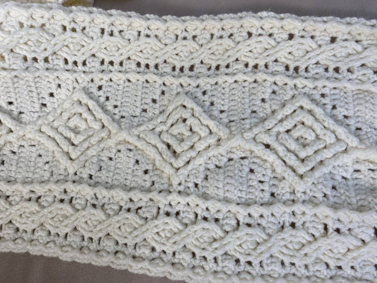 كوفيه من الصوف اوف وايت مقاسها 2 متر في 23 سم و متاح تنفيذها باكتر من لون و مقاس محتلف حسب احتياج العميل
