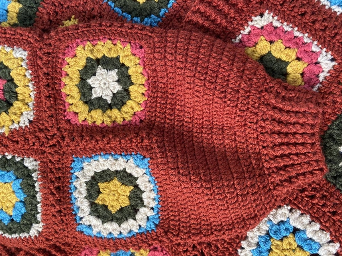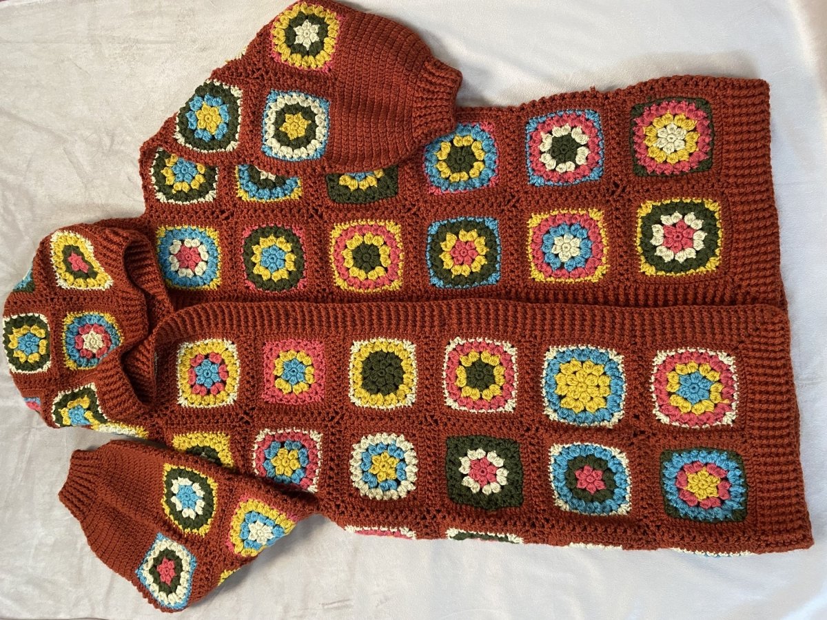جاكت صوف كروشيه مربعات جراني متاح تنفيذه علي حسب المقاس و متاح تغيير الالوان