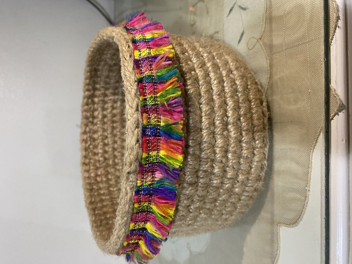 علبه من الكروشيه الخيش و ارضيتها من الخشب و متاح تنفيذها بالوان و مقاسات و اشكال مختلفه