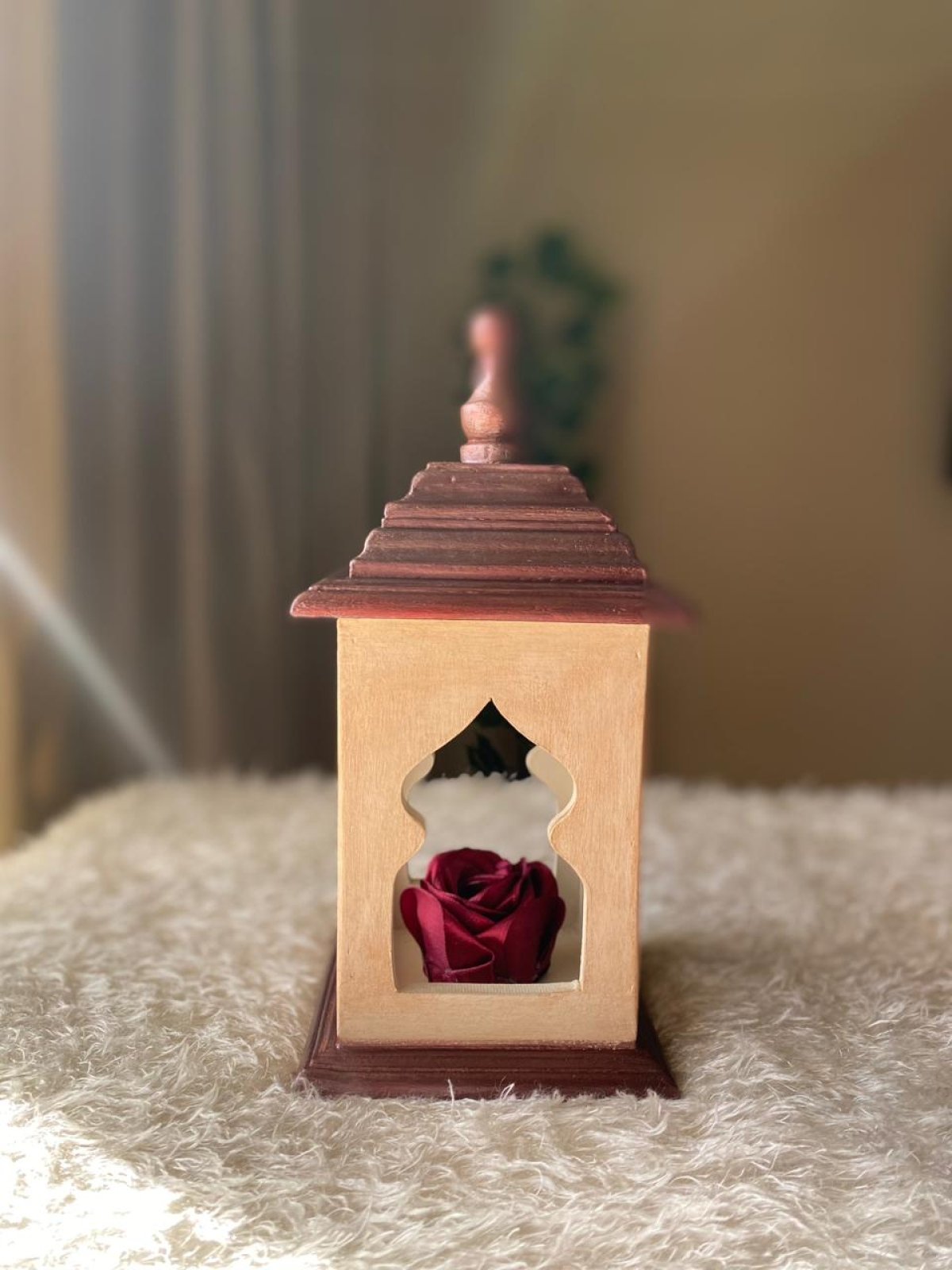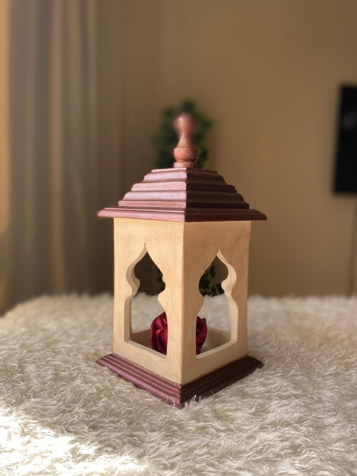 الفانوس المبخرة هو قطعه فريدة من الخشب مصنوعه لتكون لها اكتر من استخدام ممكن استخدامها كوحدة إضاءة جانبيه صغيرة بجانب السرير أو على المكتب من خلال الشمع الالكترونى أو يمكن استخدامها كمبخرة من خلال وضع البخور ذاتى الاشتعال داخلها