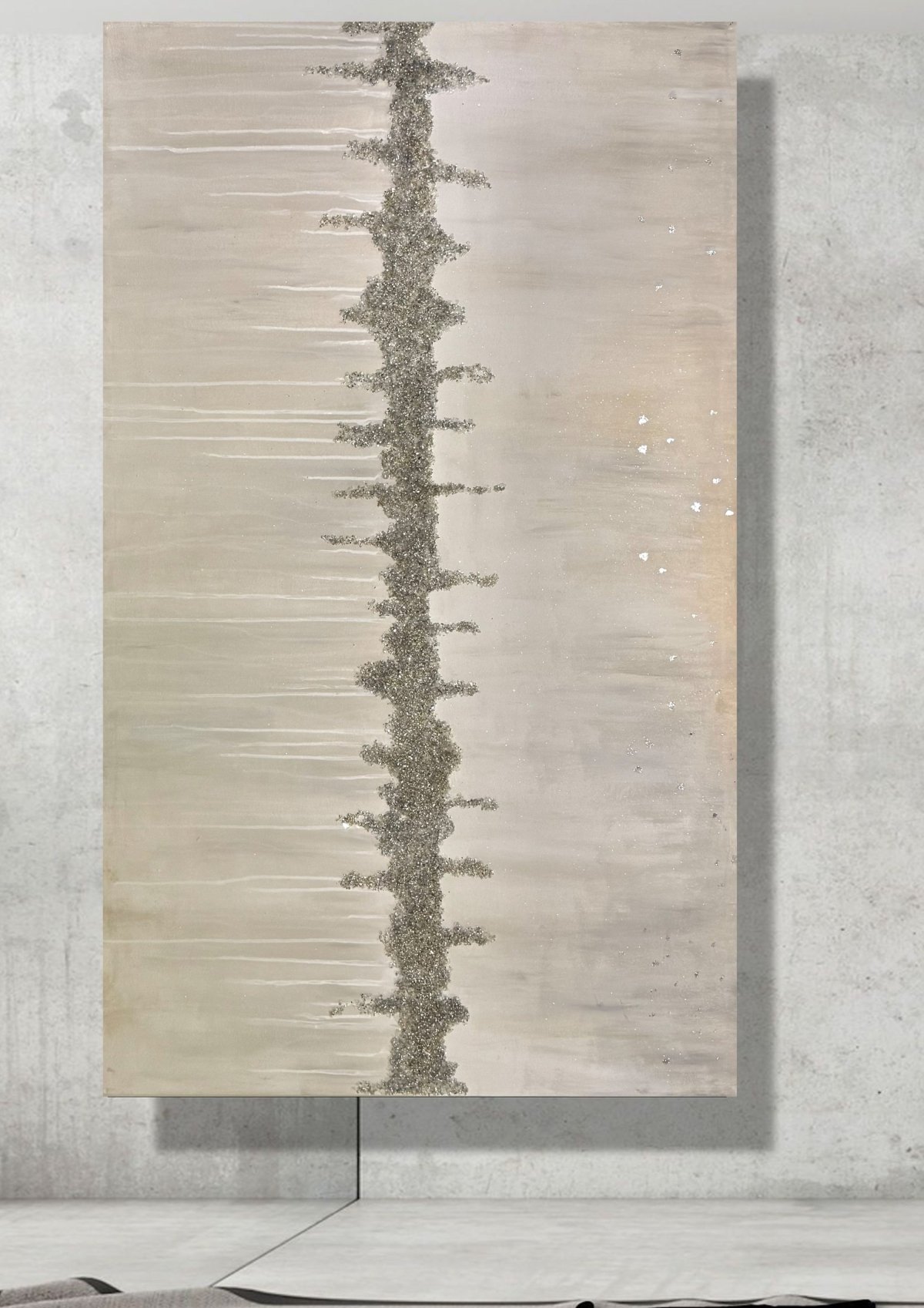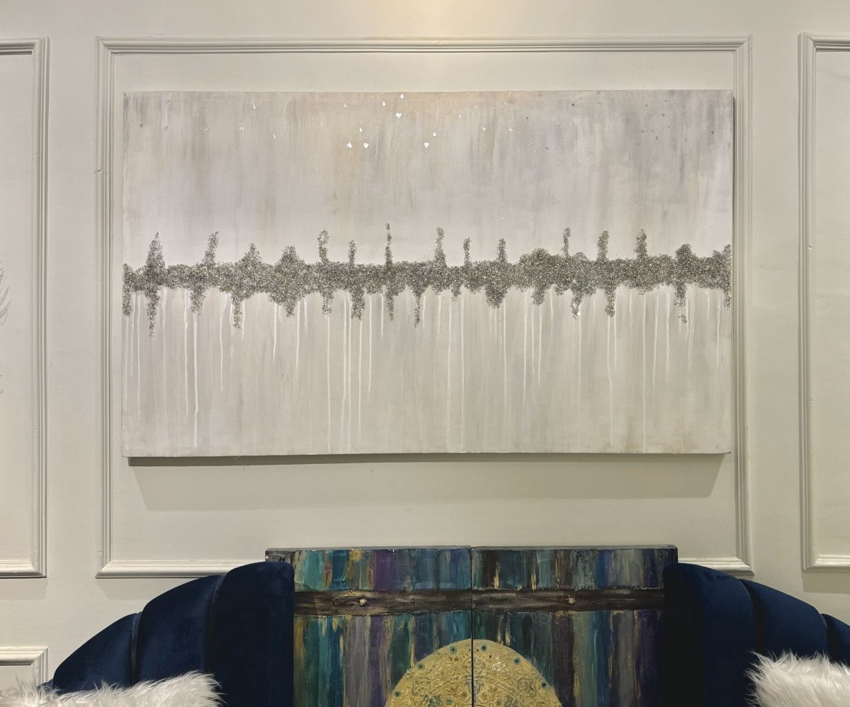 مقاس ١٥٠*٩٠ سم بيچ و اوف وايت و احجار في المنتصف الاحجار متنوعة الالوان دهبي و زجاجي و فضي و ريزن شفاف