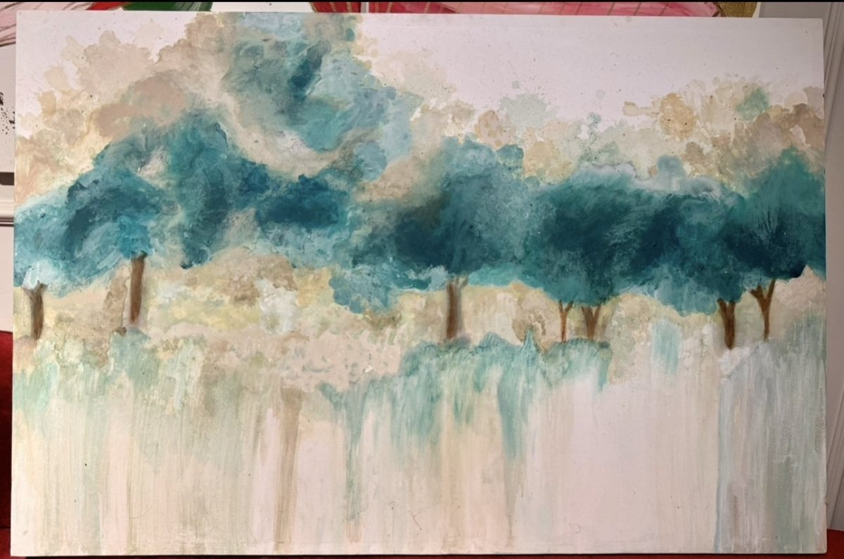تابلوة رسم أشجار جنزاري بألوان اكريليك علي كانفاس.