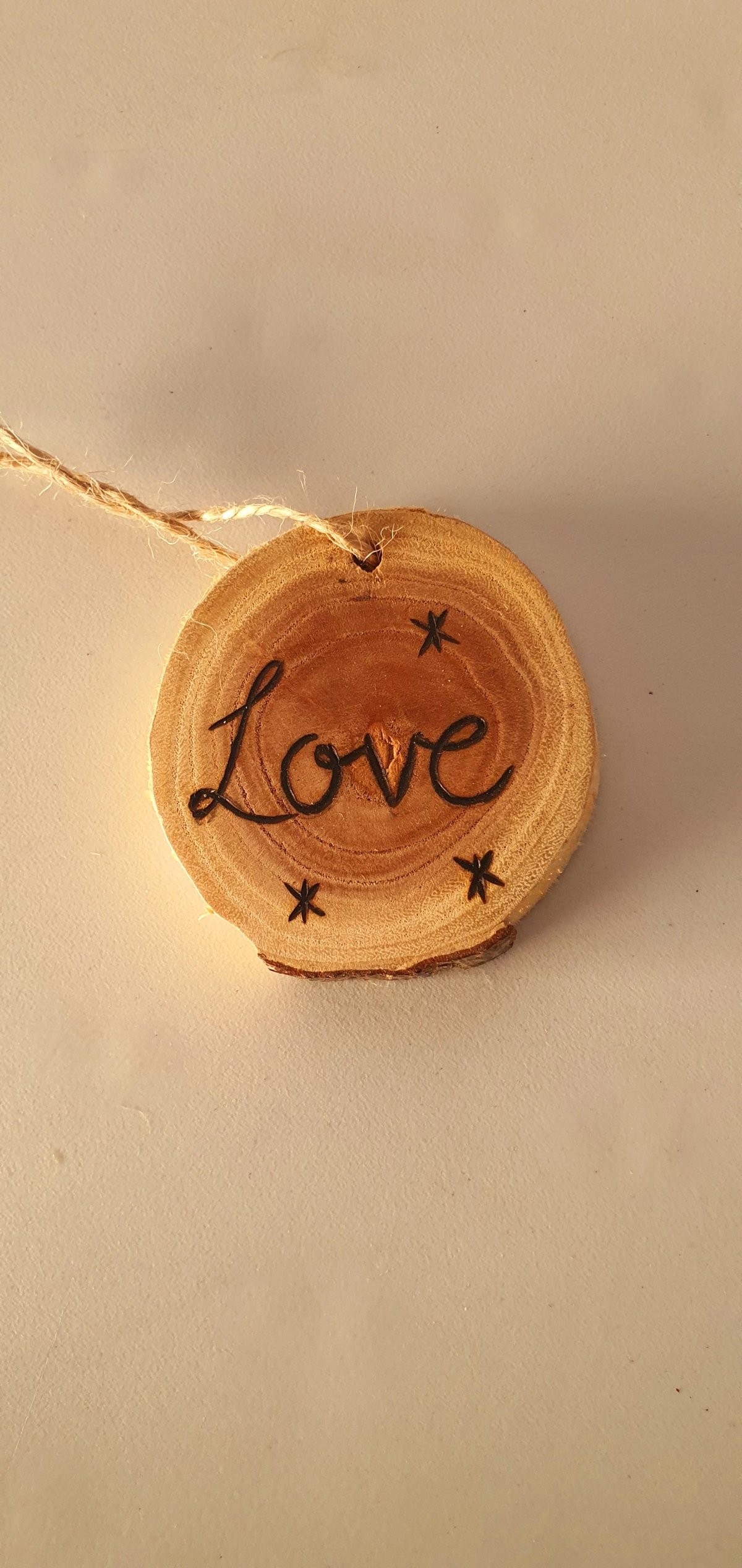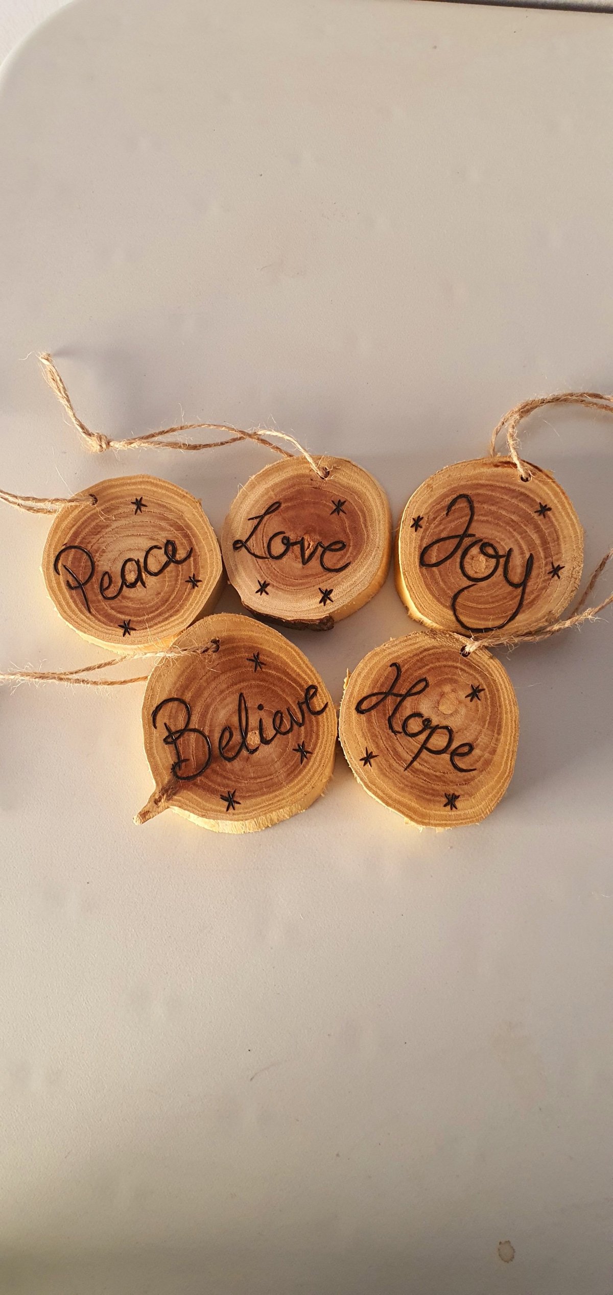 عليقات/كوسترات خشب جذوع شجر، بتصميم فريد نفذناه بفن الحرق اليدوي مجموعة مكونة من ٥ قطع قطر الكوستر الواحد ٨ سم