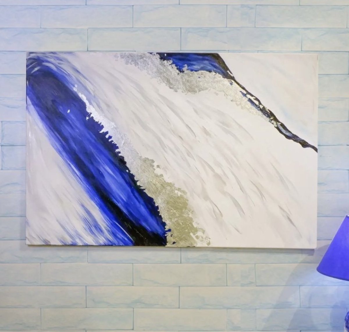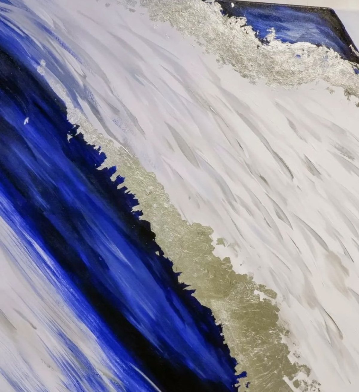 120 x 80 لوحة مرسومة بألوان اكريليك وورق الفضة على شاسيه كانفي