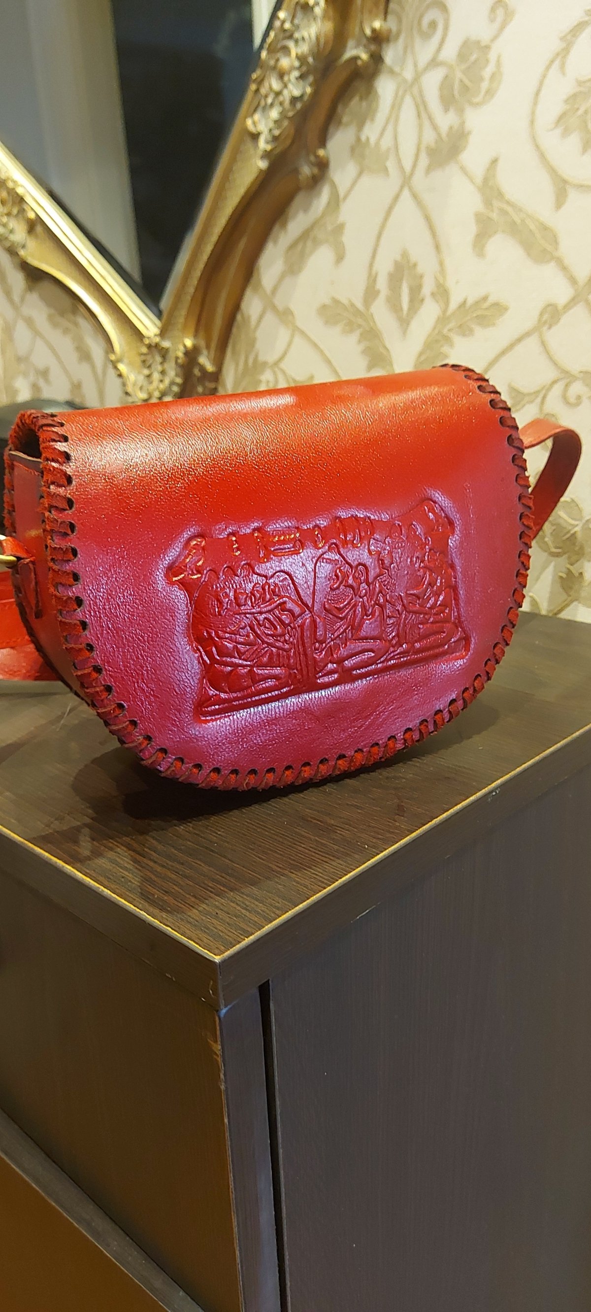 شنطة جلد طبيعي مقاس 20*15...متاح بألوان مختلفة برسوم فرعونيه أو بدون.