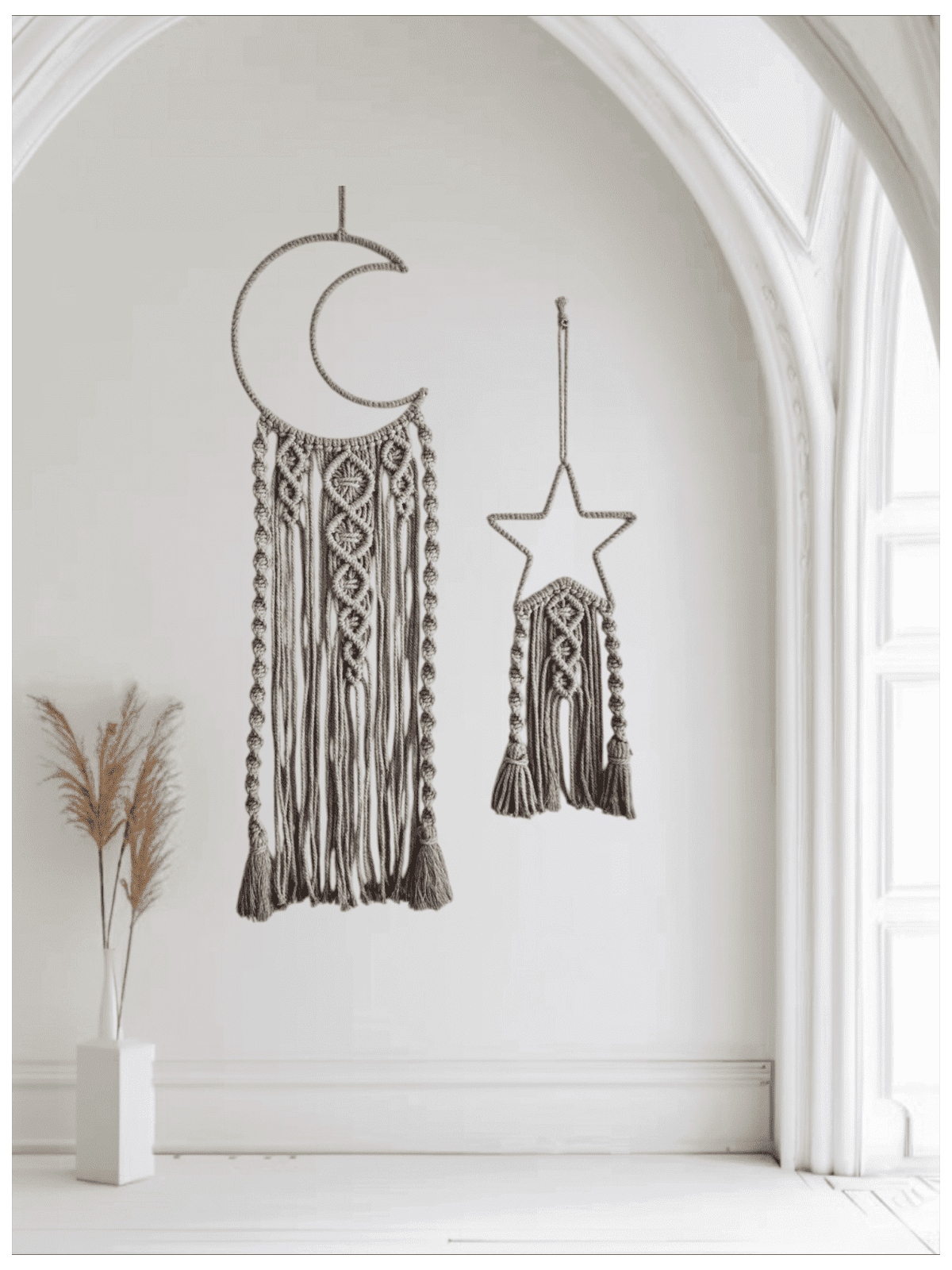 هلال رمضان يضيء دياركم بلمسة فنية من المكرميه! استقبلي الشهر الفضيل بزينة رمضان الأنيقة من المكرميه هلال رمضان يدخل بيتكِ فرحة وسعادة مع ديكورنا الفريد وصف المنتج: هلال رمضان مصنوع يدويًا من خيوط قطنية عالية الجودة. تصميم أنيق وعصري يناسب جميع الديكورات. قطعة فنية فريدة من نوعها تضيف لمسة دافئة إلى منزلكِ.