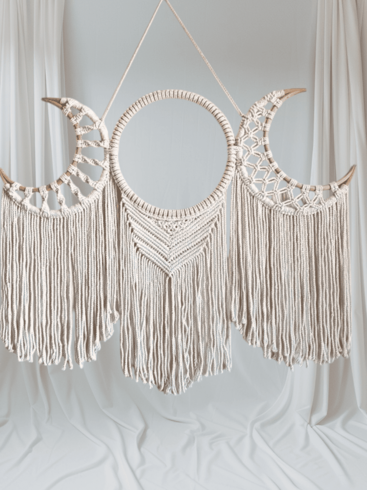 "استقبل شهر رمضان المبارك بأجواء دينية ساحرة مع قطعتنا الجدارية الفريدة. مستوحاة من الهلال، رمز شهر رمضان، هذه القطعة اليدوية المصنوعة من الخشب والخيوط الطبيعية تجلب معها روحانية الشهر الكريم إلى منزلك. تعتبر قطعة مثالية لغرف النوم، الصالات، أو أي ركن ترغبين في إضفاء لمسة دينية عليه."