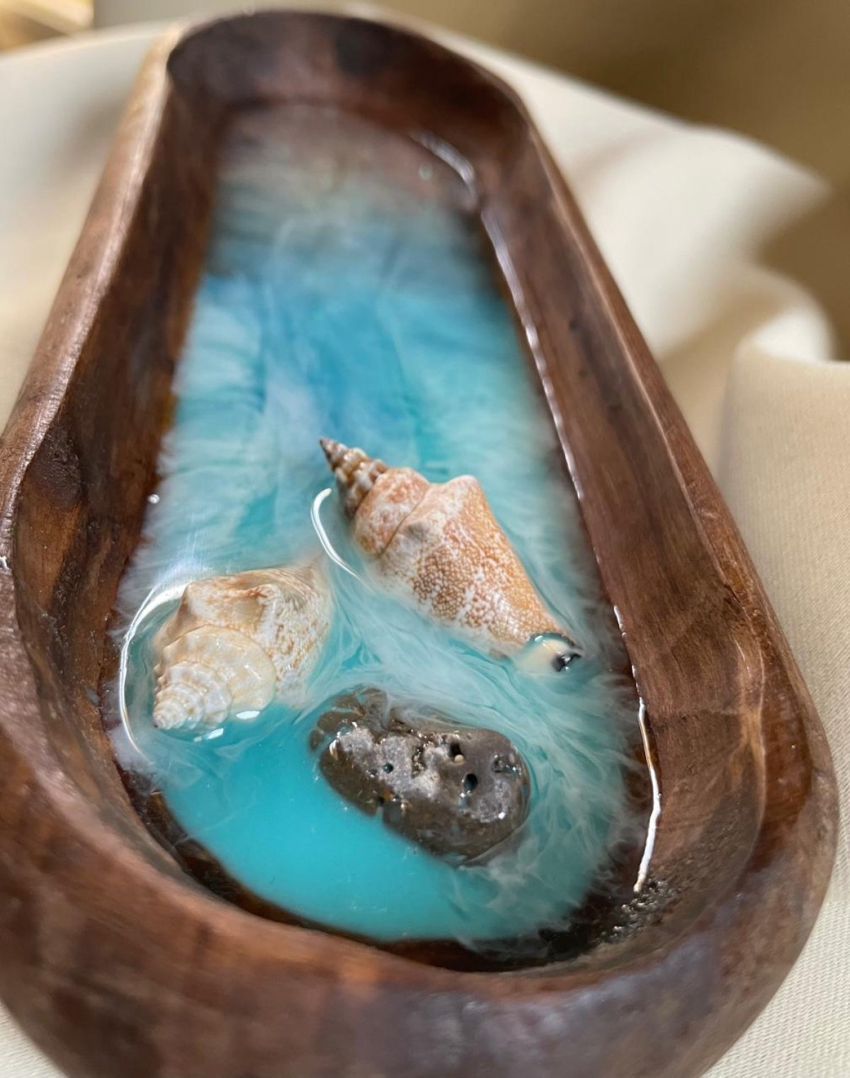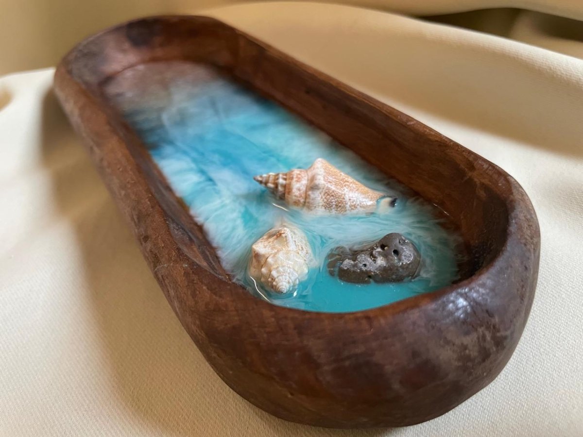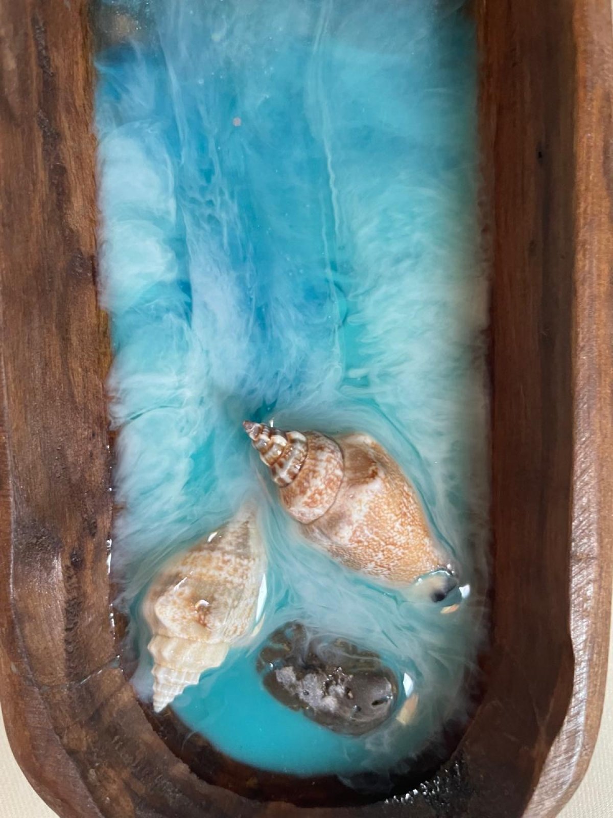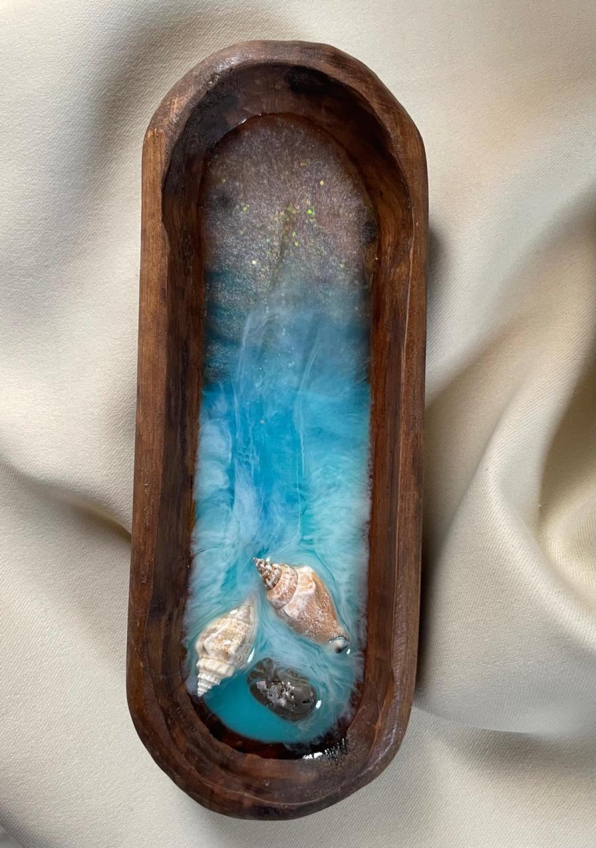 ريزن تراى خشب ⭐️ دمج الامواج وتصميم البحر مع القواقع الطبيعية ⭐️ مناسب جدًا لوضعه كقطعة ديكورية أنيقة فى المنزل ⭐️ المقاس: ٢٢ * ١٠ سم