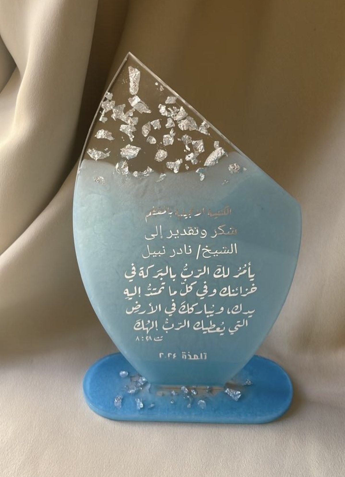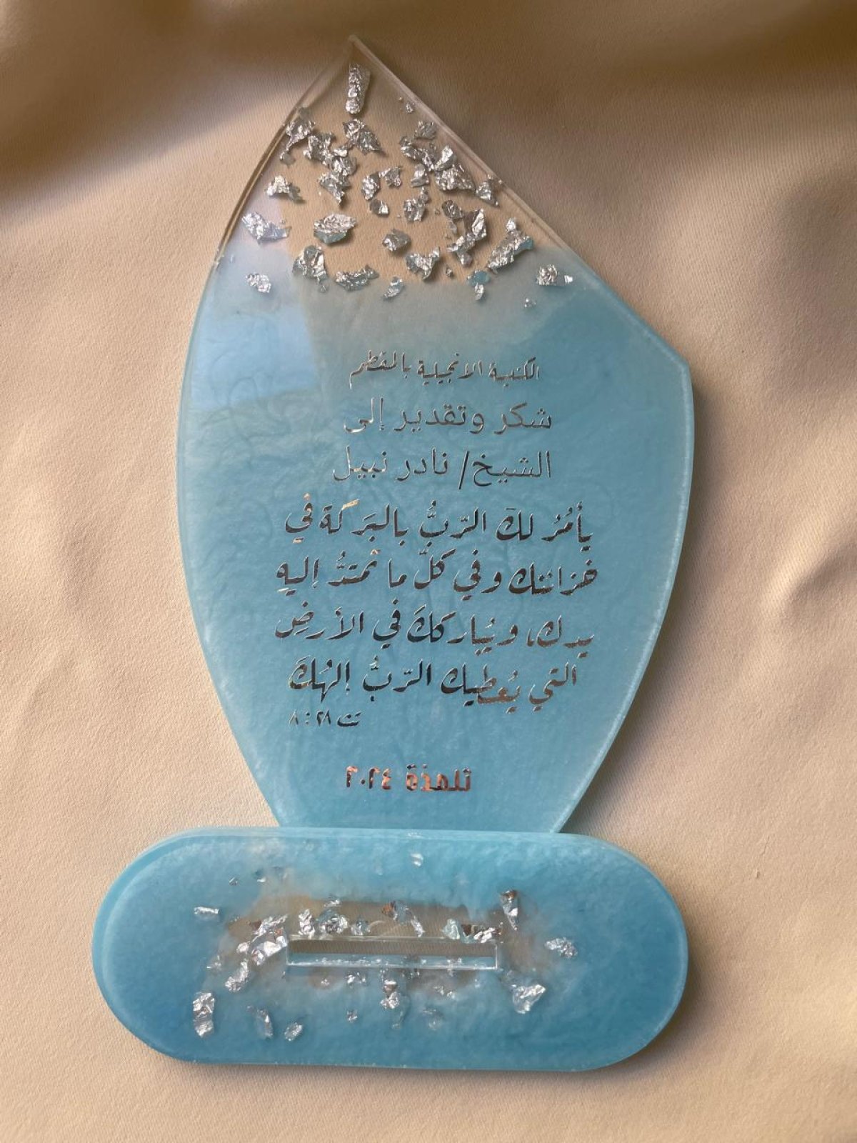 درع تكريم من الريزن ⭐️ تصميم مميز بأستخدام ورق الدهب السيلڤر + طباعة ڤينيل سيلڤر ⭐️ المقاس: ٢٢ * ١٣.٥٠