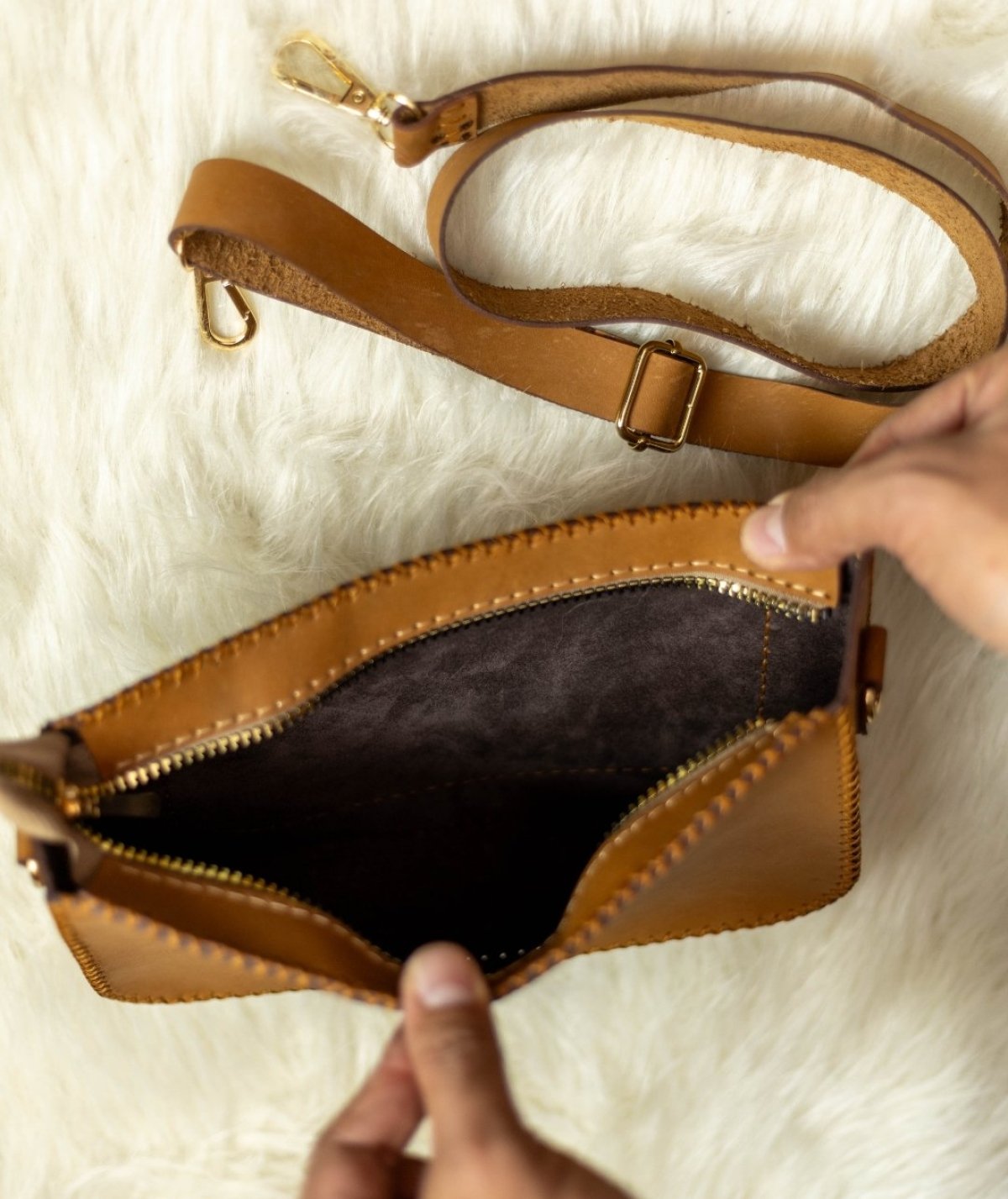 شنطه عصريه جلد طبيعي بقرى خياطه هاند ميد مقاس 26عرض ارتفاع 15