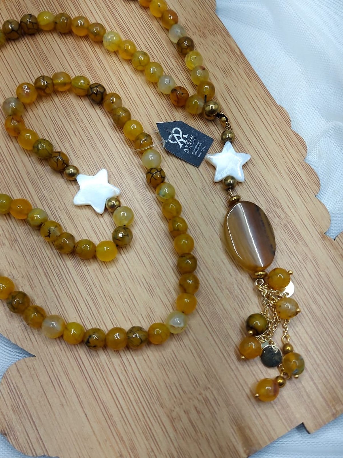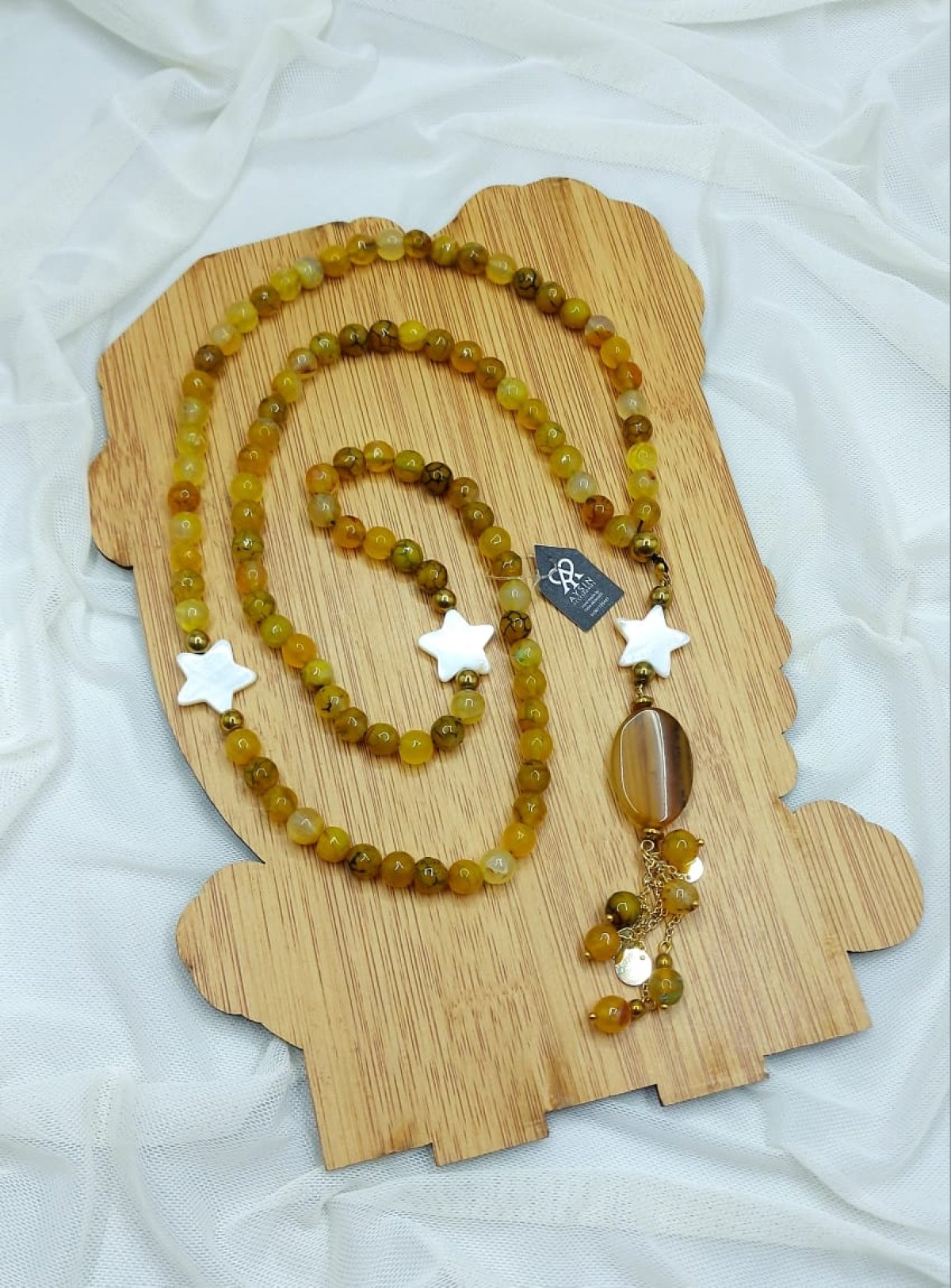مسبحه ٩٩ والديزاين عقد طويل من احجار العقيق وفواصل هيماتيت وسلاسل دهب صينى جولد