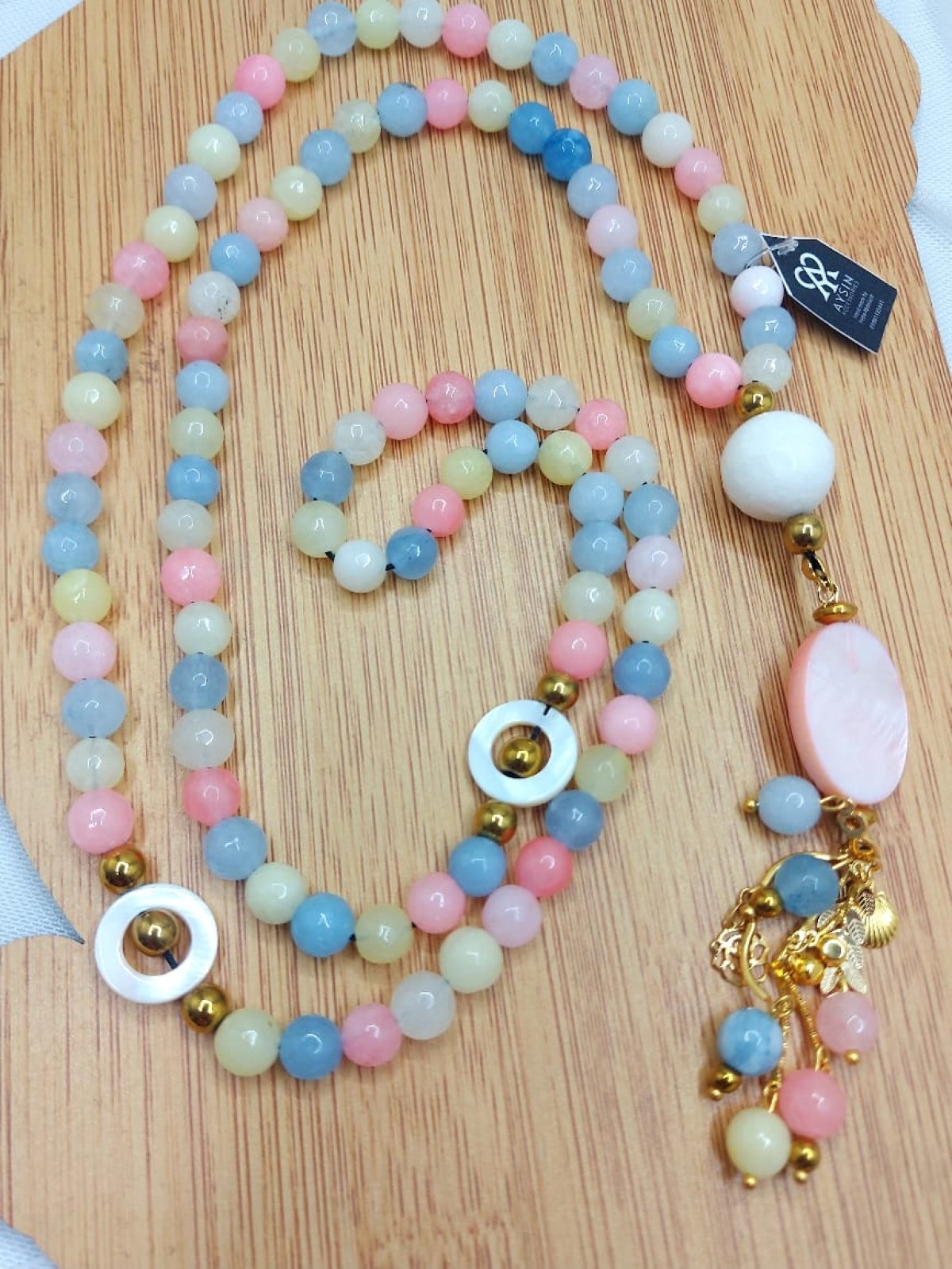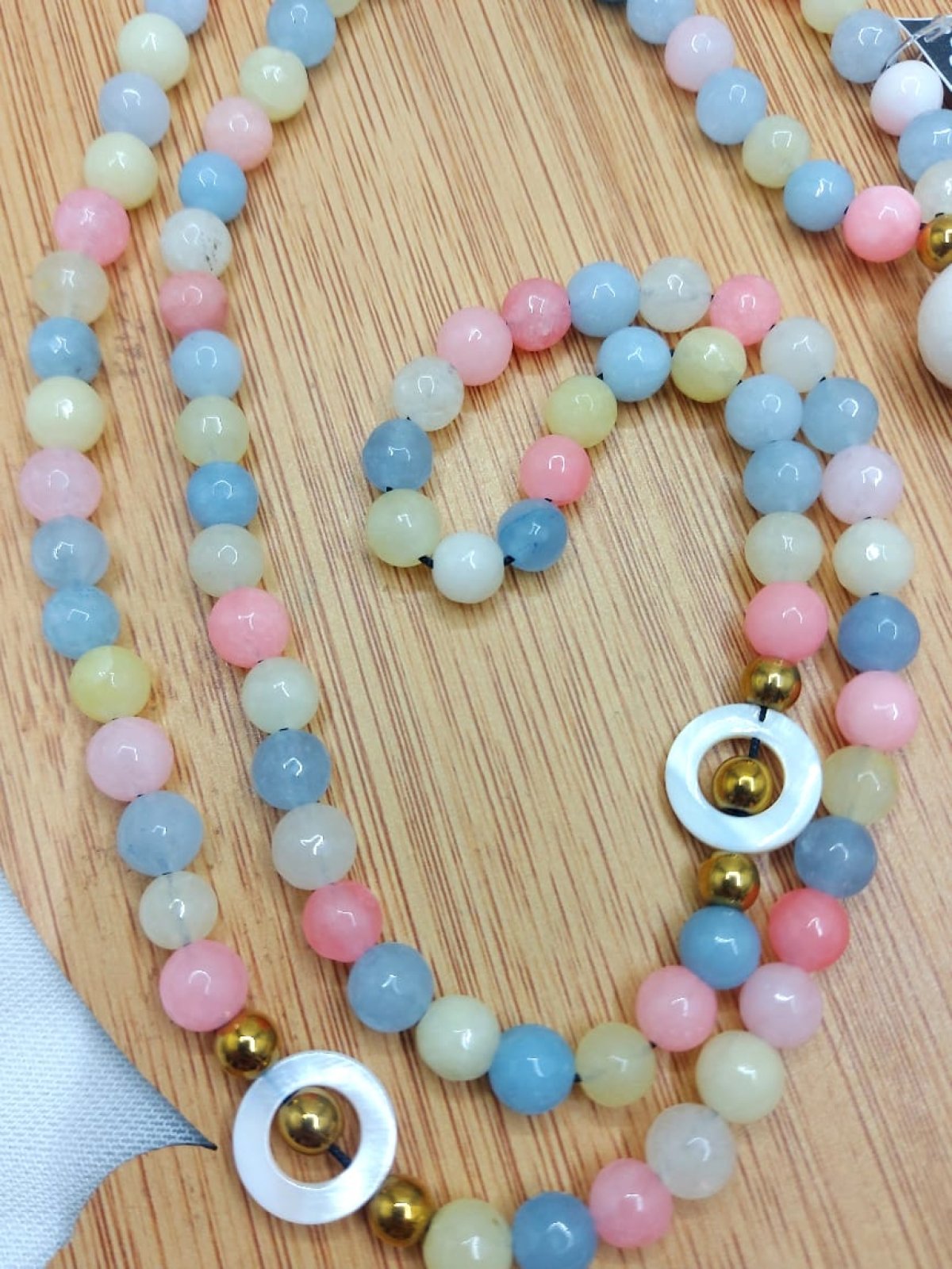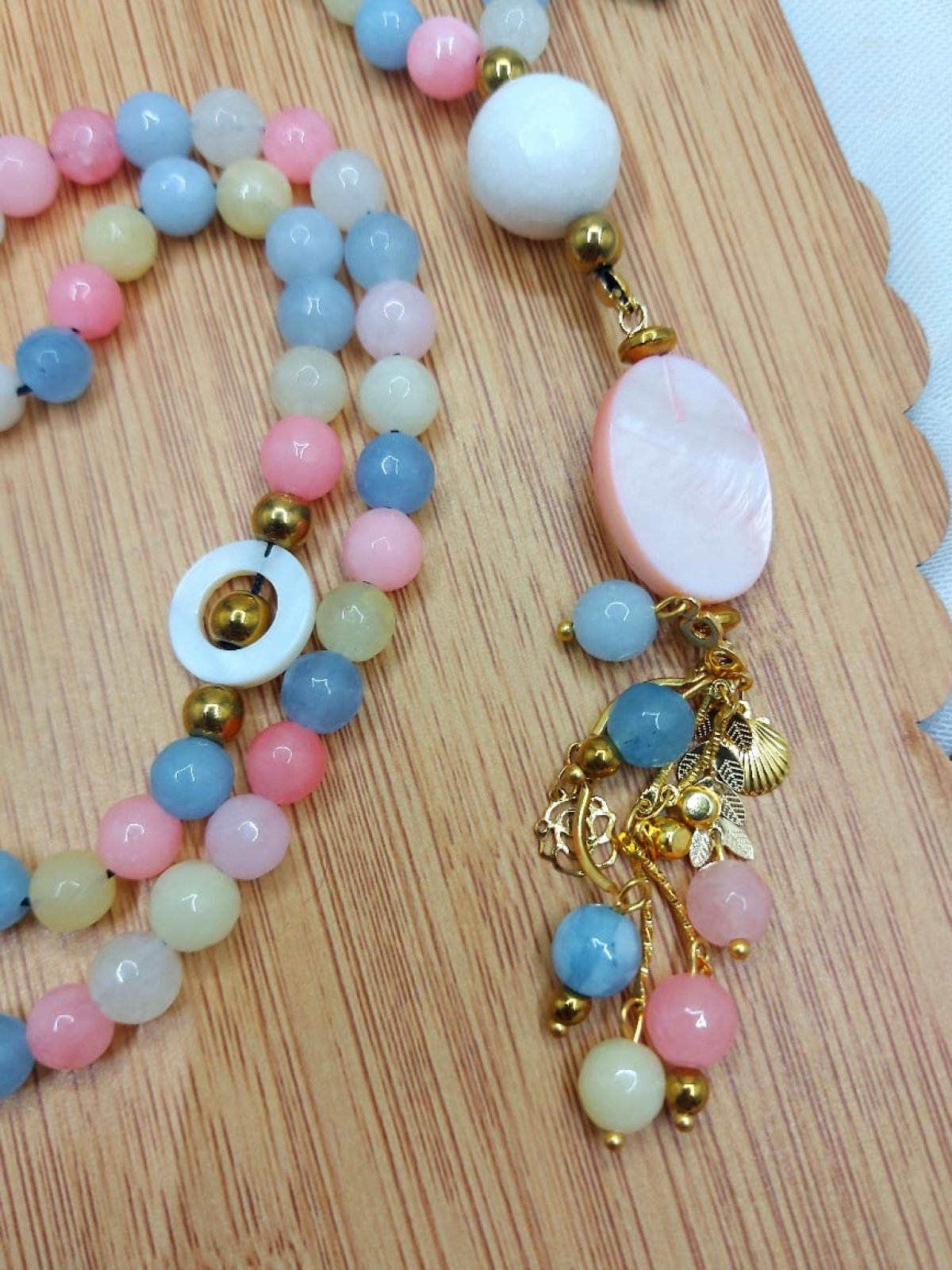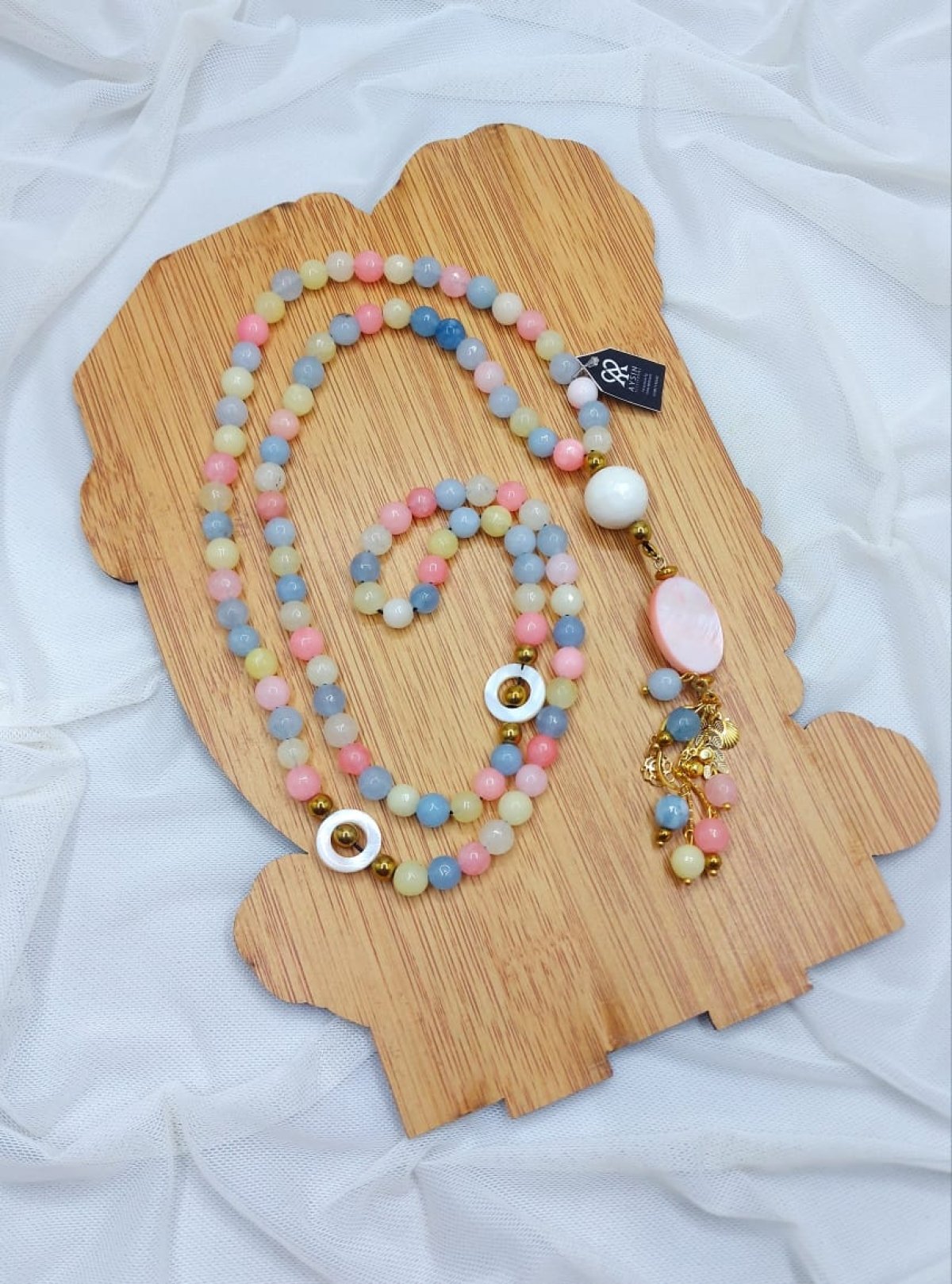 مسبحه ٩٩ والديزاين عقد طويل من احجار العقيق وفواصل هيماتيت وسلاسل دهب صينى جولد